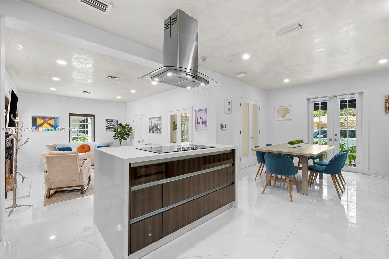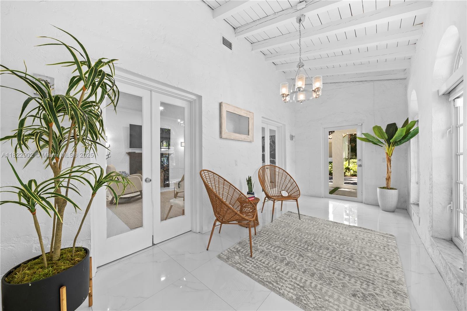 Bienvenido a Casa Granada — a fully renovated Spanish-style home in the sought-after Granada neighborhood of Coral Gables, minutes from the Country Club, Miracle Mile, and Giralda Row. Bright interiors feature an Italian kitchen with island, Silestone countertops, and premium appliances, plus dining room, enclosed porch, office, and den. The primary suite offers a walk-in closet and spa bath with oversized shower and dual sinks. Finishes include Carrara marble tile, hardwood floors, impact windows, new roof, and custom closets. Two private patios allow for both lively family gatherings and peaceful retreats under the Coral Gables sky.