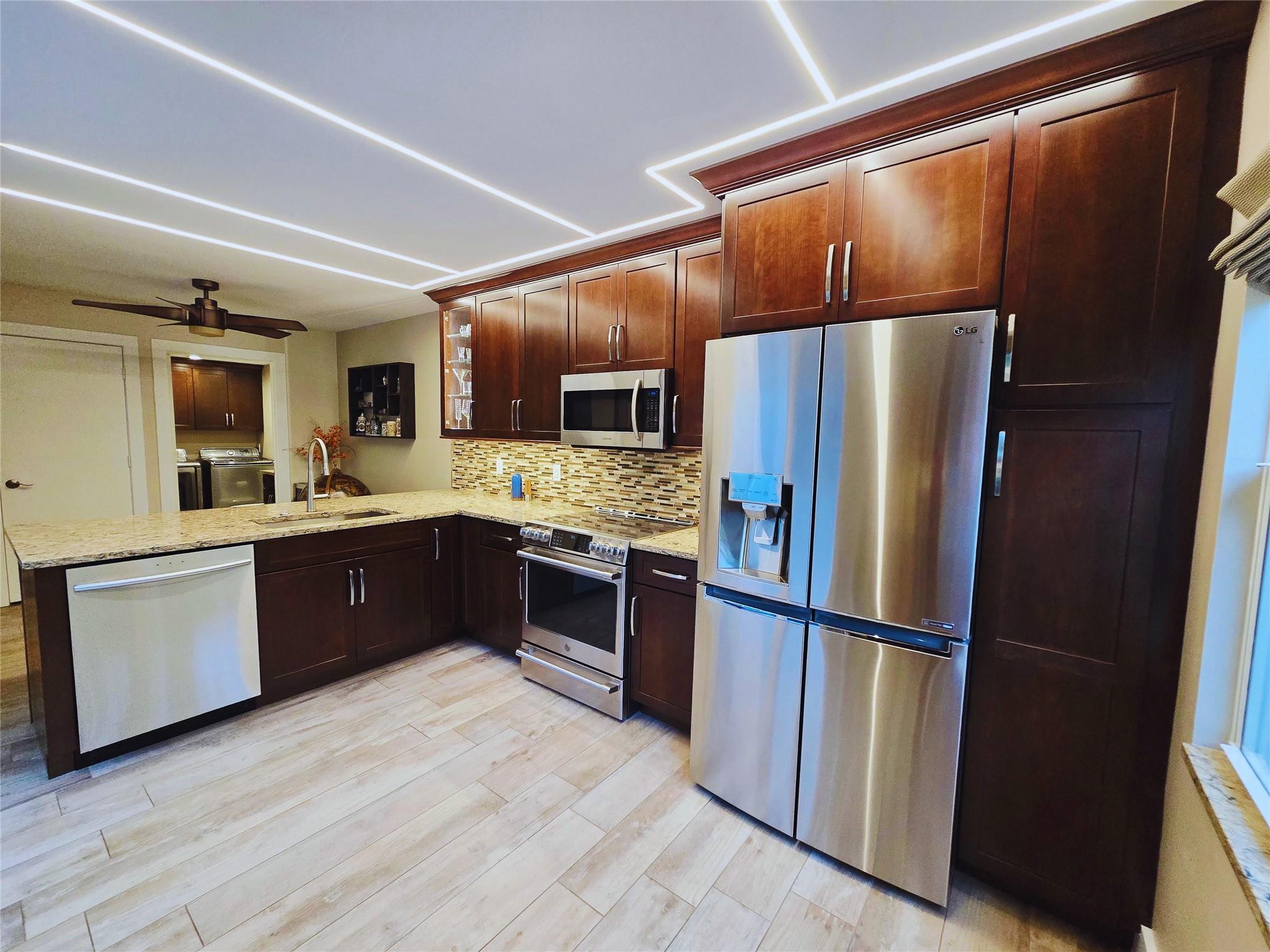 Welcome to the beautiful STAMFORD AT ROYAL PALM BEACH! Gorgeous 2 bedroom 2 1/2 bathroom complete turn key home with upgrades you will see in a million dollar home! Walking in, you will be greeted by a fairly new screened in patio area perfect for barbecuing and comfortable patio seating. First floor tiled throughout resembling wood flooring. Living room flowing into the custom kitchen with beautiful back splash, crown molding, soft closing doors and quartz counter tops. Ceiling has custom installed flush LED lighting on dimmers with lighting under the cabinets as well. Half bath shares its space with the laundry room with Samsung washer/dryer that stays! Custom closets and bathrooms upstairs you will want to see in person. A/C only 2 yrs old. Roof replaced 2024.