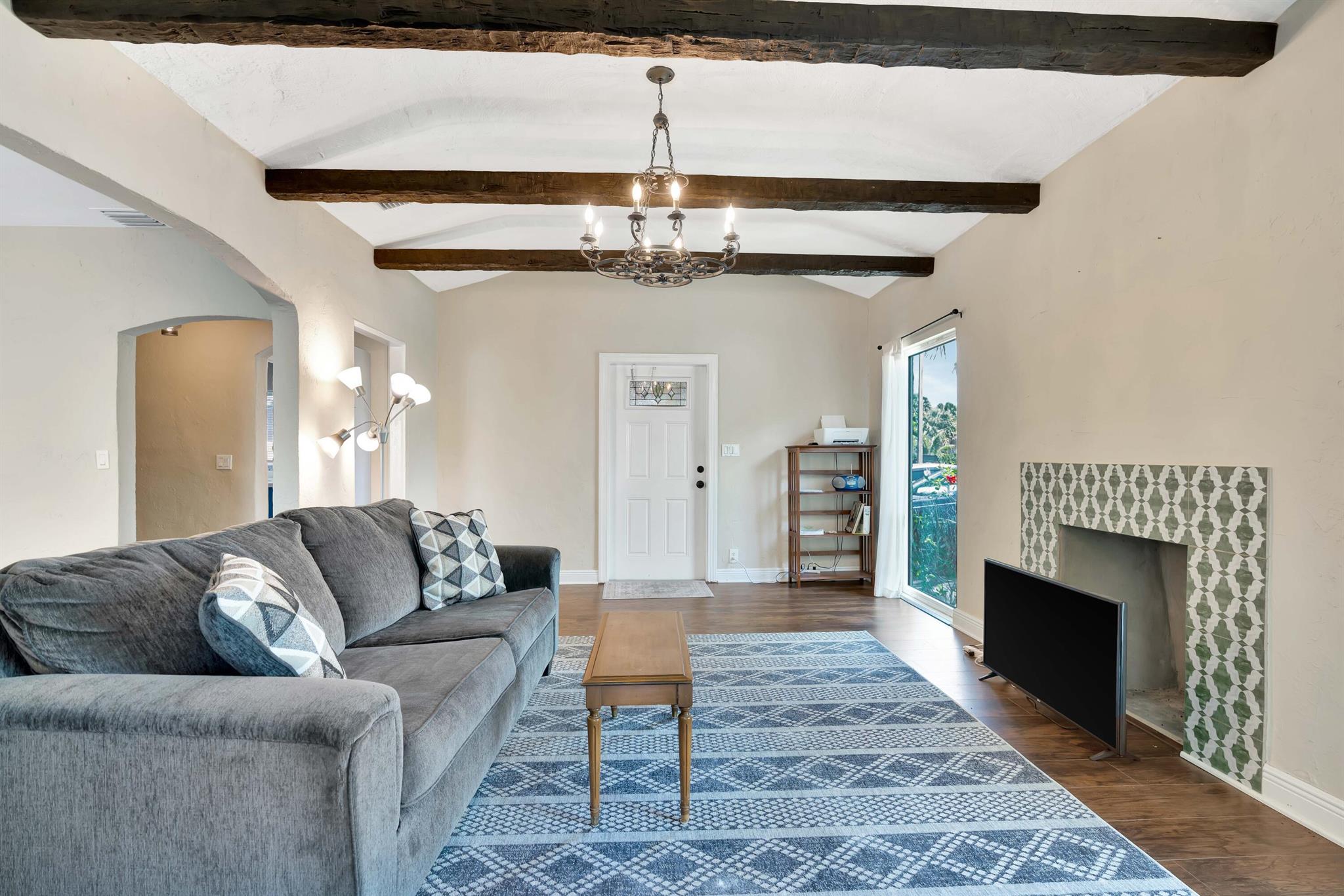 Charming Spanish-Style Home in the Heart of Historic Northwood. Don't miss this beautifully updated 3-bedroom, 1-bath Spanish-style gem located in the sought-after Historic Northwood District. Overflowing with character and charm, this home features dark laminate floors, a spacious kitchen with generous counter space, and signature arched doorways accented by exposed wooden beams that create a warm, rustic feel.Currently configured as a 2-bedroom with a den/office, the layout offers flexibility and can easily be converted back to a true 3-bedroom home. Recent upgrades include a brand-new sewer line, full-impact windows, and a large utility room that enhances everyday convenience. Step outside to enjoy a large, fenced backyard; ideal for relaxing, gardening, or entertaining guests.