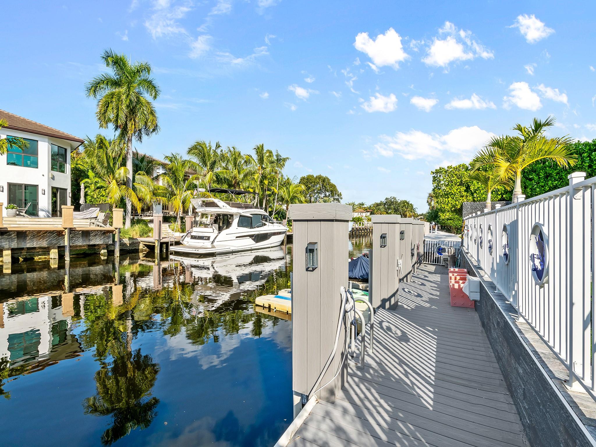 Ideal for the avid boater with deep water dockage & no fixed bridges to the Intracoastal & ocean. This exquisitely updated home is situated among mature trees that canopy on one of the most desirable streets in the coveted subdivision of Rio Vista. The luminous open floor plan is conducive to today's modern lifestyle offering multiple doorways blending indoor & outdoor living spaces. Enjoy S. Florida living by the waterside pool or exterior courtyard complete with a summer kitchen & outdoor fire wall. The culinary kitchen will inspire the those who enjoy cooking with upgraded appliances. The lavish primary suite offers a fireplace, 2 custom walk-in closets & spa inspired bathroom. $1Million gut renovation in 2014. Mins. to LYC, shopping, restaurants, gyms & more. Sq ft from IMAPP.