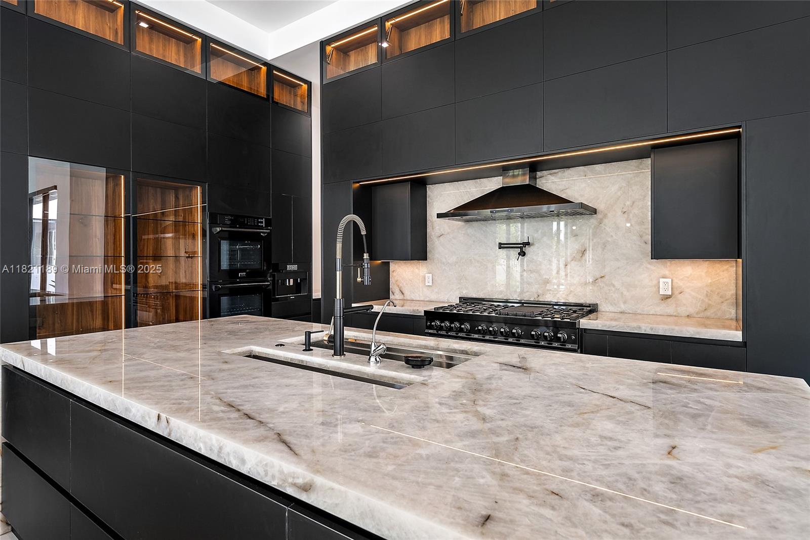 Built in 2022 on over 4 acres, this exceptional property is a dream for car collectors and boaters alike, offering 8 garages (with room for lifts) and direct Intracoastal access. Sleek lines and floor-to-ceiling windows showcase the estate's expansive grounds and resort-style pool. The main house features, eye catching design, a media room/theater, office/exercise room, and other amenities making it perfect for hosting or working from home. The detached guest house offers a full bath, kitchen, and laundry. The vacant lot is potentially available for purchase upon inquiry. The luxurious owner's retreat includes wood floors, a cozy fireplace, a marble bath with dual sinks and water closets, and a walk-in boutique-style closet. The state-of-the-art kitchen is equipped with dual wall ovens, a