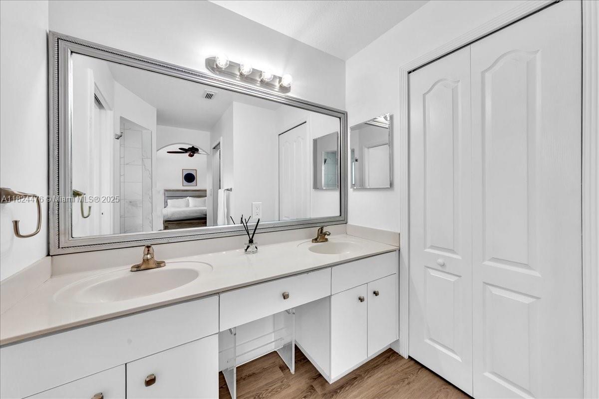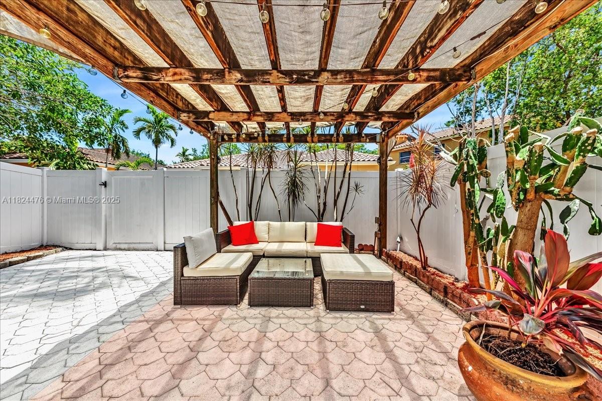Welcome to this beautiful 3-bedroom, 3-bathroom home in the desirable Somerset Cove community. Two of the bedrooms feature their own private bathrooms for added convenience and privacy. The upgraded kitchen boasts elegant granite countertops and soft-closing cabinets. This home also offers a spacious walk-in closet, high ceilings, and neutral-toned walls, creating a modern, open feel. The new bathrooms, floors, AC, and roof enhance the home’s appeal. Enjoy the convenience of central air conditioning with WiFi control and partial accordion shutters for added security. A charming pergola in the backyard provides a perfect space for outdoor relaxation. Located near major highways, shopping, and dining, this home blends comfort and convenience.