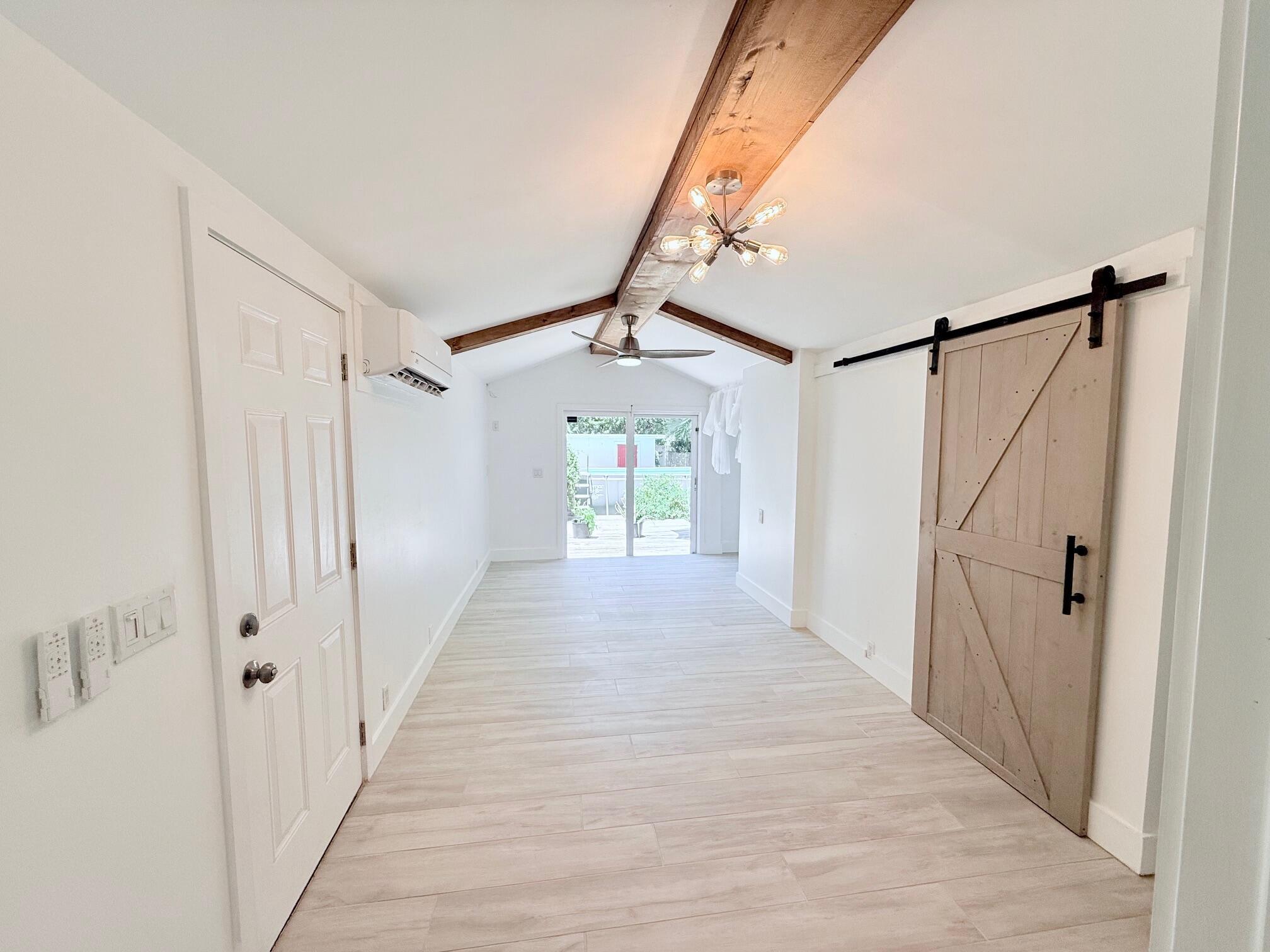 NO HOA AND ZONED R-2. Welcome to this East Boca 2-bedroom, 2-bath cottage with its beautifully wood plank tiled floors and vaulted ceilings featuring exposed beams. Enjoy year-round comfort with three mini-split AC systems. Both bathrooms are completely updated, and the open kitchen is a chef's dream with white shaker cabinets, stainless steel appliances, stunning counters, and a chic backsplash, all illuminated by updated lighting. Step outside to your private backyard retreat! It boasts a deck, an above-ground pool, and a large, fenced yard--perfect for entertaining or simply relaxing. Live the East Boca lifestyle! You're just moments from the Brightline, downtown Boca, fantastic restaurants, and endless shopping. This historic home is an absolute gem!