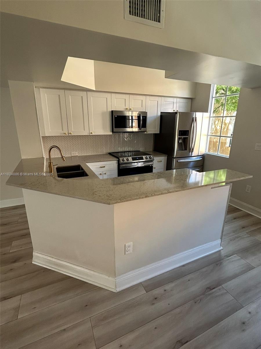Spacious & Modern 2-Bedroom Townhome in the Heart of Aventura. Welcome to this beautifully updated 2-bedroom, 2-bath tri-level townhome located in the prestigious city of Aventura! This bright and cozy residence offers a perfect blend of comfort and style. The first level features a private 2-car garage and a convenient laundry area. On the second floor, enjoy an open-concept living and dining space, complete with a modern kitchen boasting quartz countertops and brand-new stainless steel appliances. Luxury wood laminate flooring runs throughout the unit. Upstairs, you’ll find two generously sized bedrooms and two well-appointed bathrooms, offering ample space and privacy. A brand-new AC unit ensures year-round comfort. This unit is located by the pool and in a gated waterfront community.