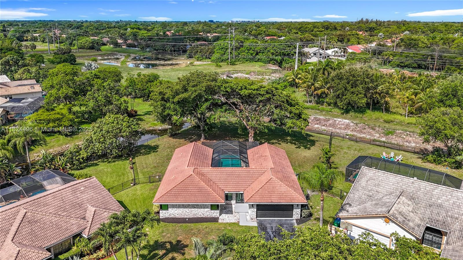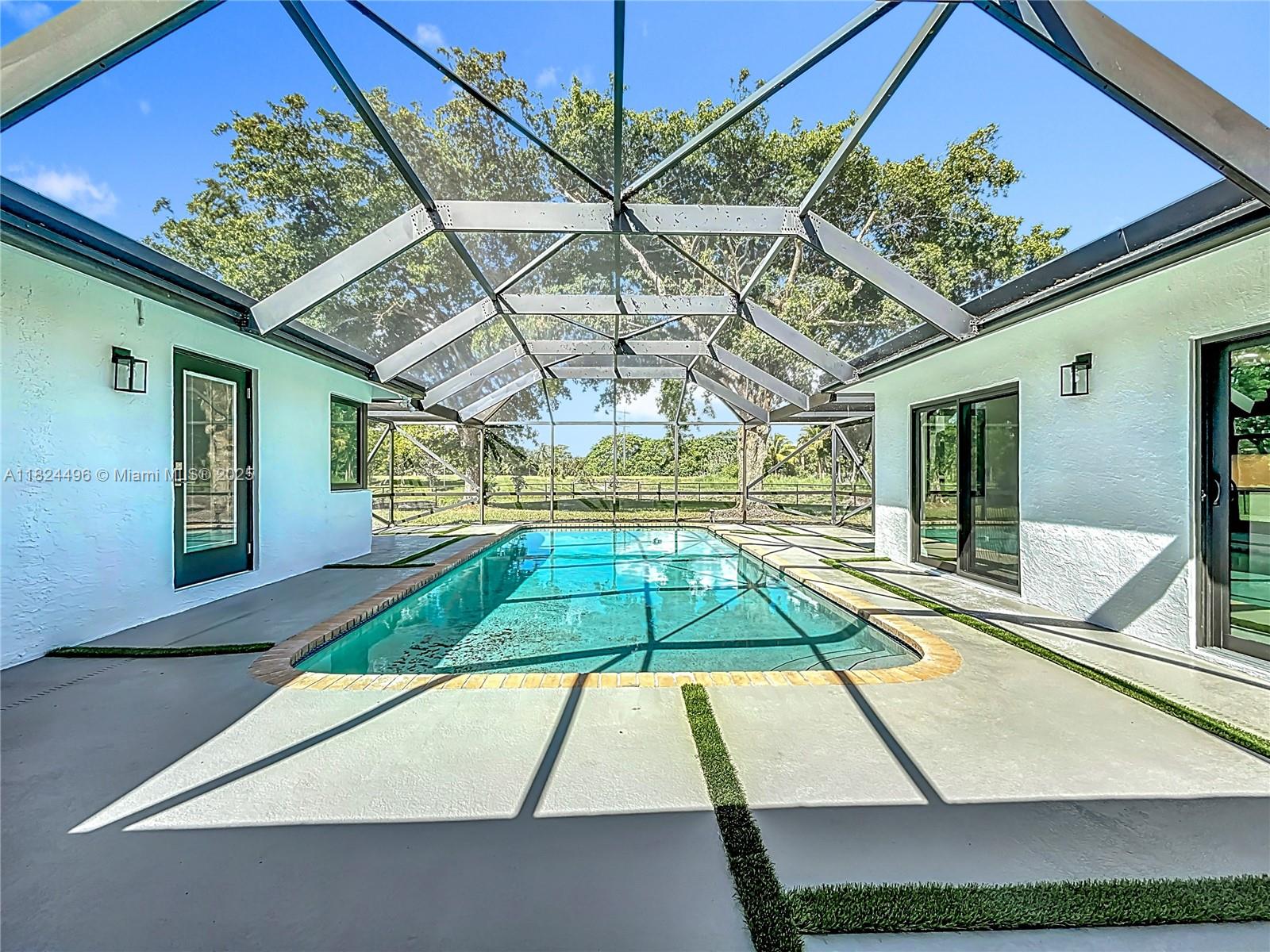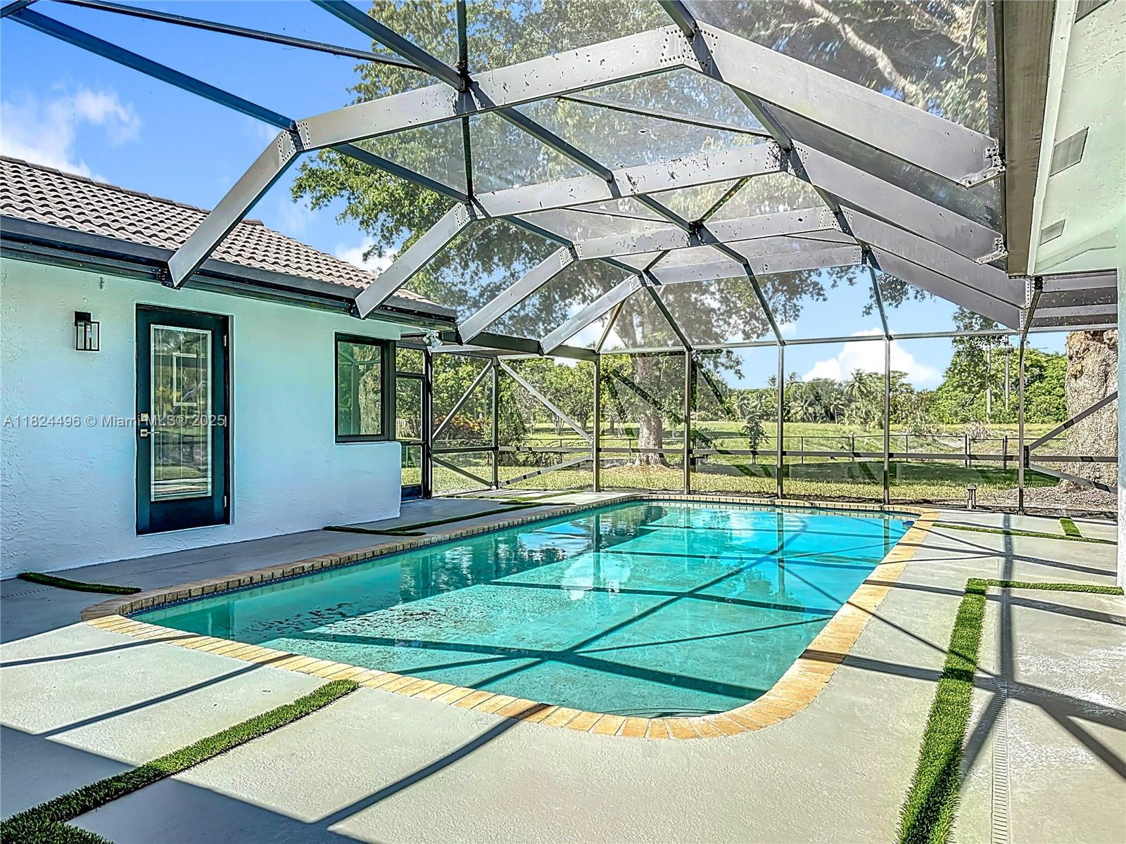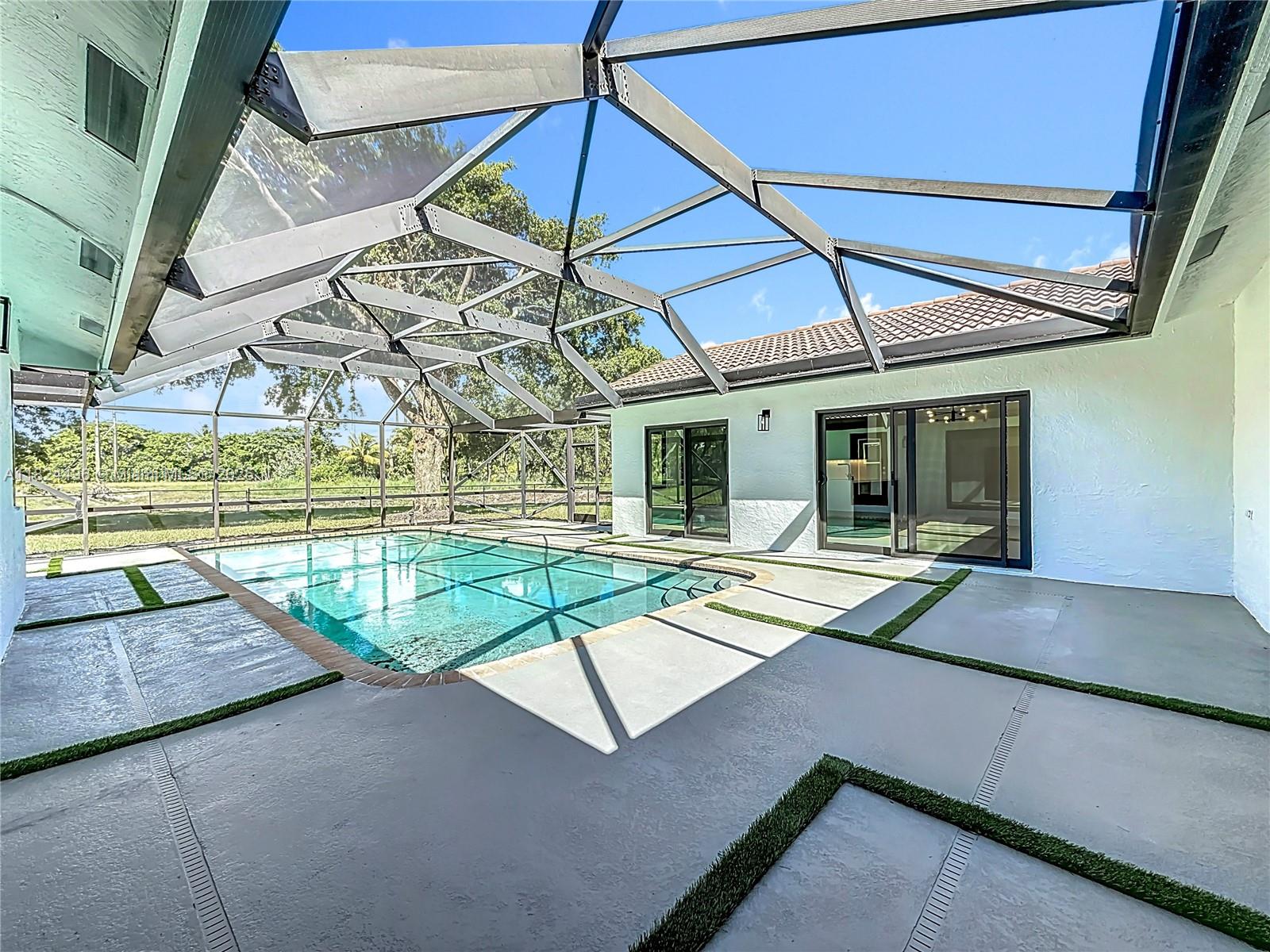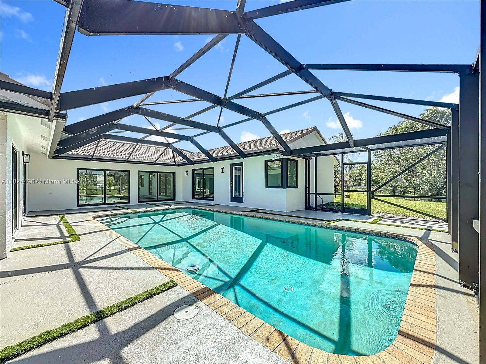 Stunning 4 bed, 2 bath home in sought-after Butler Farms, Coral Springs. This modern gem features sleek laminate floors, hurricane impact windows/doors, and a stylish waterfall countertop. Enjoy the oversized 17,560 sq ft corner lot with a paved backyard, turf accents, and screened pool area with direct bath access. Master suite boasts his & hers sinks, walk-in closet with built-in safe. Perfect for entertaining and family living!