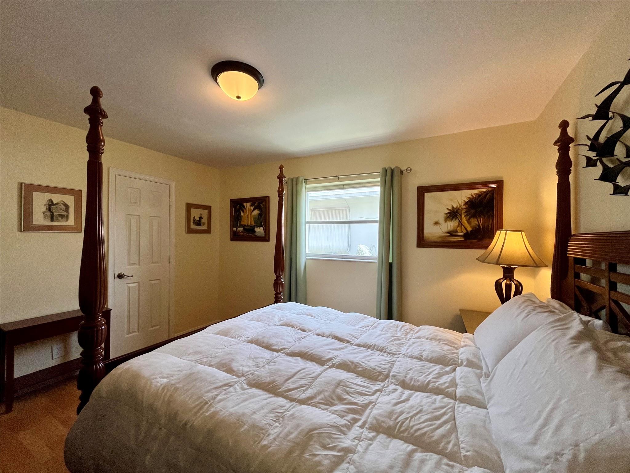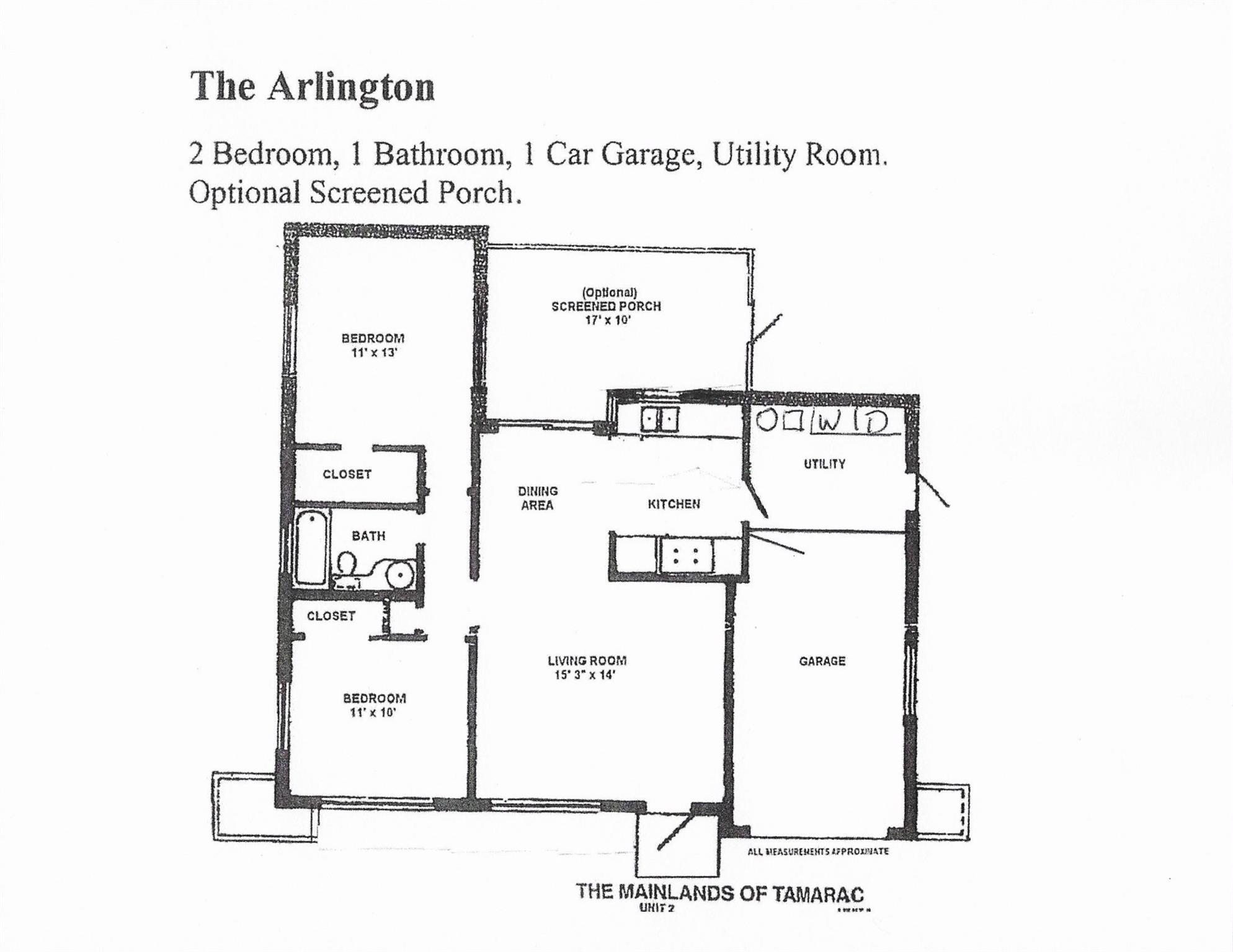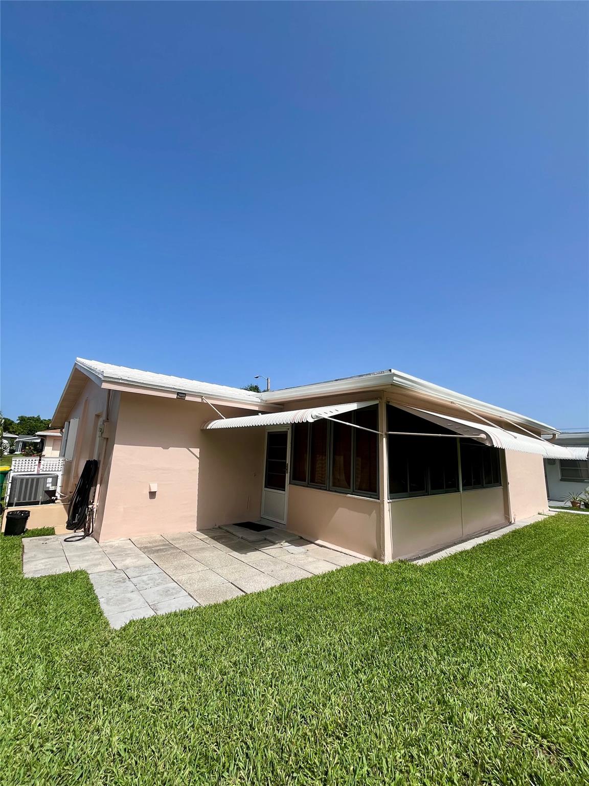 Two bedroom one bath concrete block home with bonus room that can be used as a bedroom. Total of 1382 sq. ft. under roof, including 1-car garage with hurricane rated automatic door. This home has a concrete tile roof and double wide driveway. Recent updates include a new high energy-efficient HVAC system w/ UV light (2022), electric service panel (2022), and appliances including dishwasher (2024), stove (2024) and microwave (2024). Newer exterior and interior doors and windows with tinted security laminate and accordion hurricane shutters. Located in a quiet, well-kept 55+ community with a clubhouse and pool. FHA and VA programs are being accepted. At least one occupant must be 55+. Make this house your home - call today to schedule a viewing!
