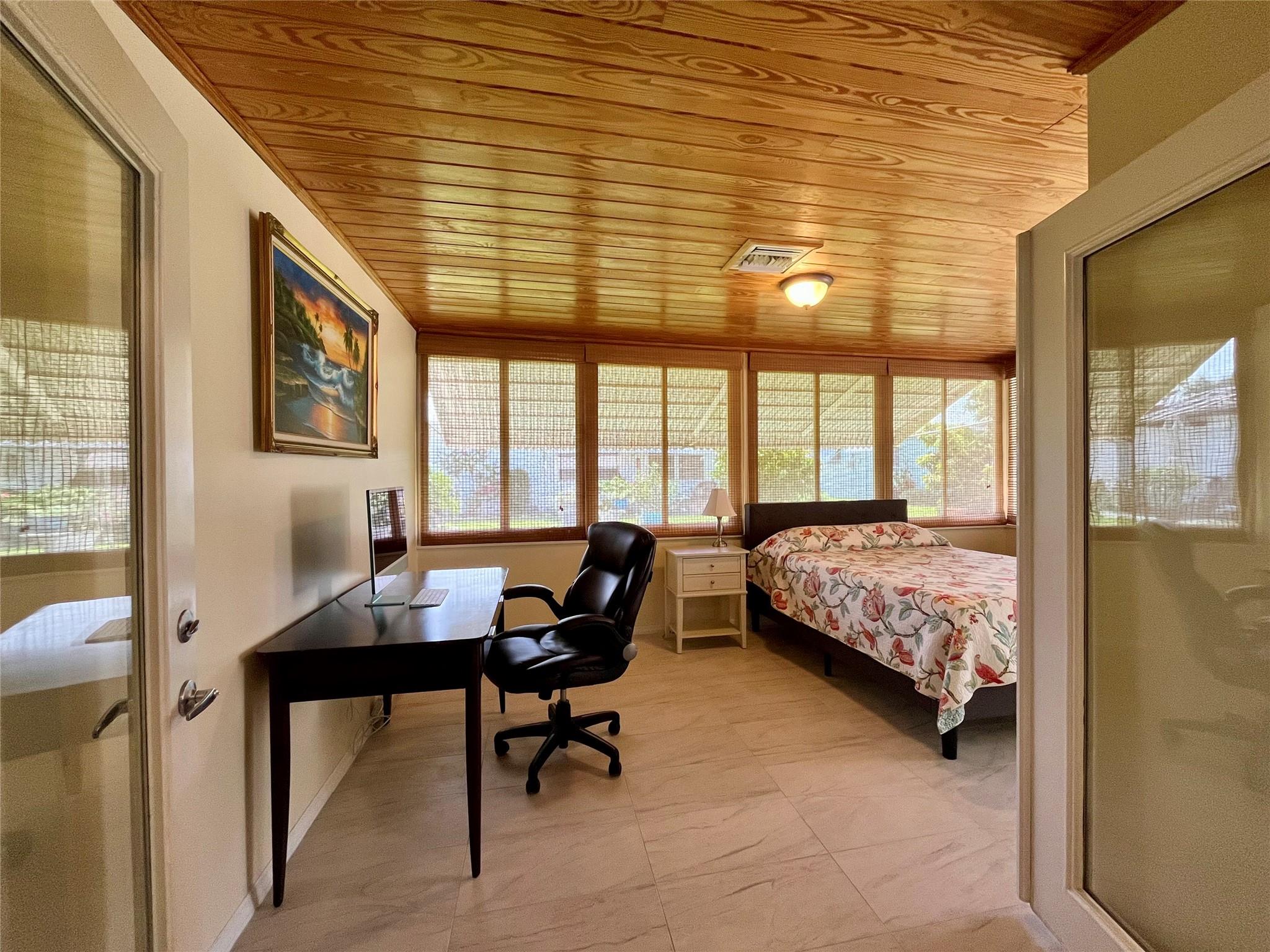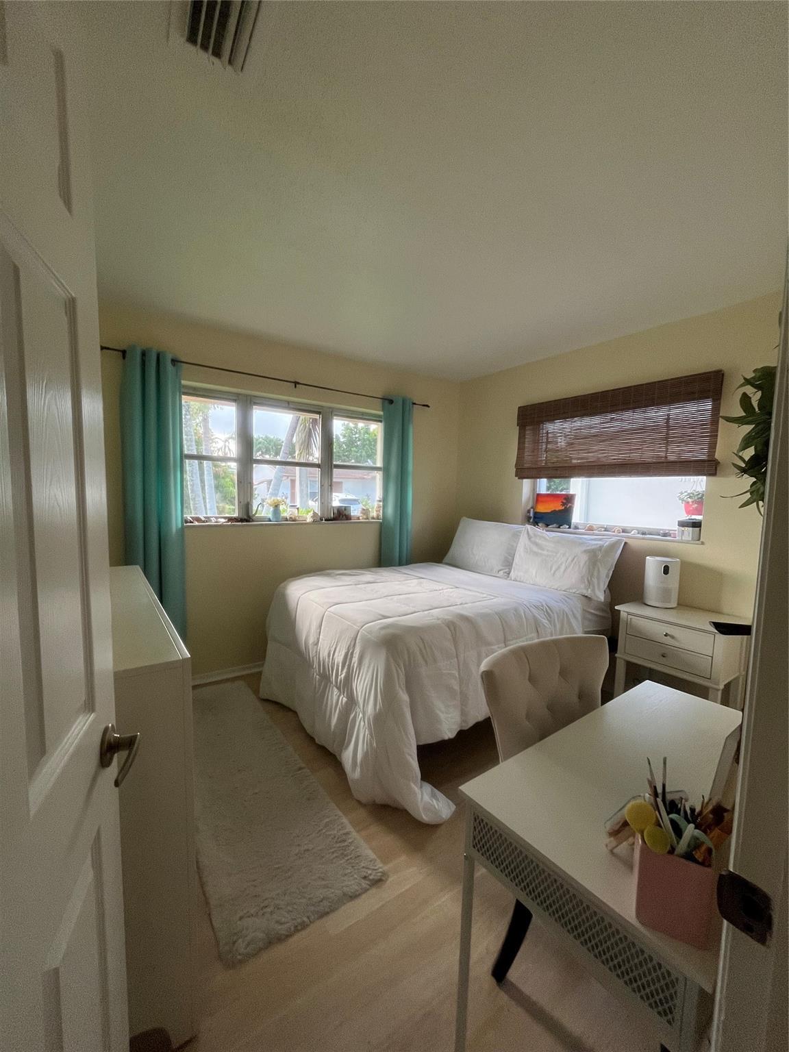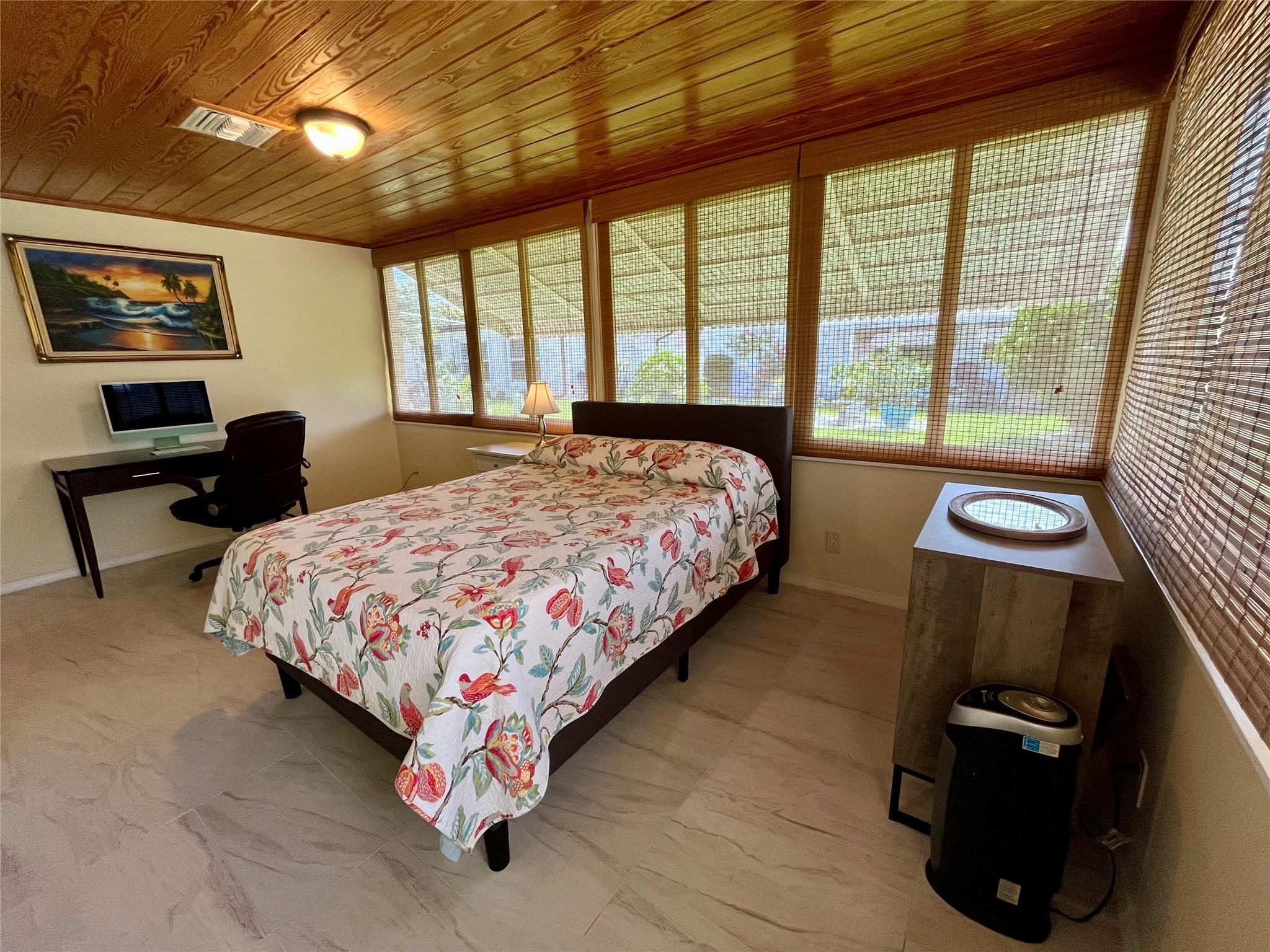 Two bedroom one bath concrete block home with bonus room that can be used as a bedroom. Total of 1382 sq. ft. under roof, including 1-car garage with hurricane rated automatic door. This home has a concrete tile roof and double wide driveway. Recent updates include a new high energy-efficient HVAC system w/ UV light (2022), electric service panel (2022), and appliances including dishwasher (2024), stove (2024) and microwave (2024). Newer exterior and interior doors and windows with tinted security laminate and accordion hurricane shutters. Located in a quiet, well-kept 55+ community with a clubhouse and pool. FHA and VA programs are being accepted. At least one occupant must be 55+. Make this house your home - call today to schedule a viewing!