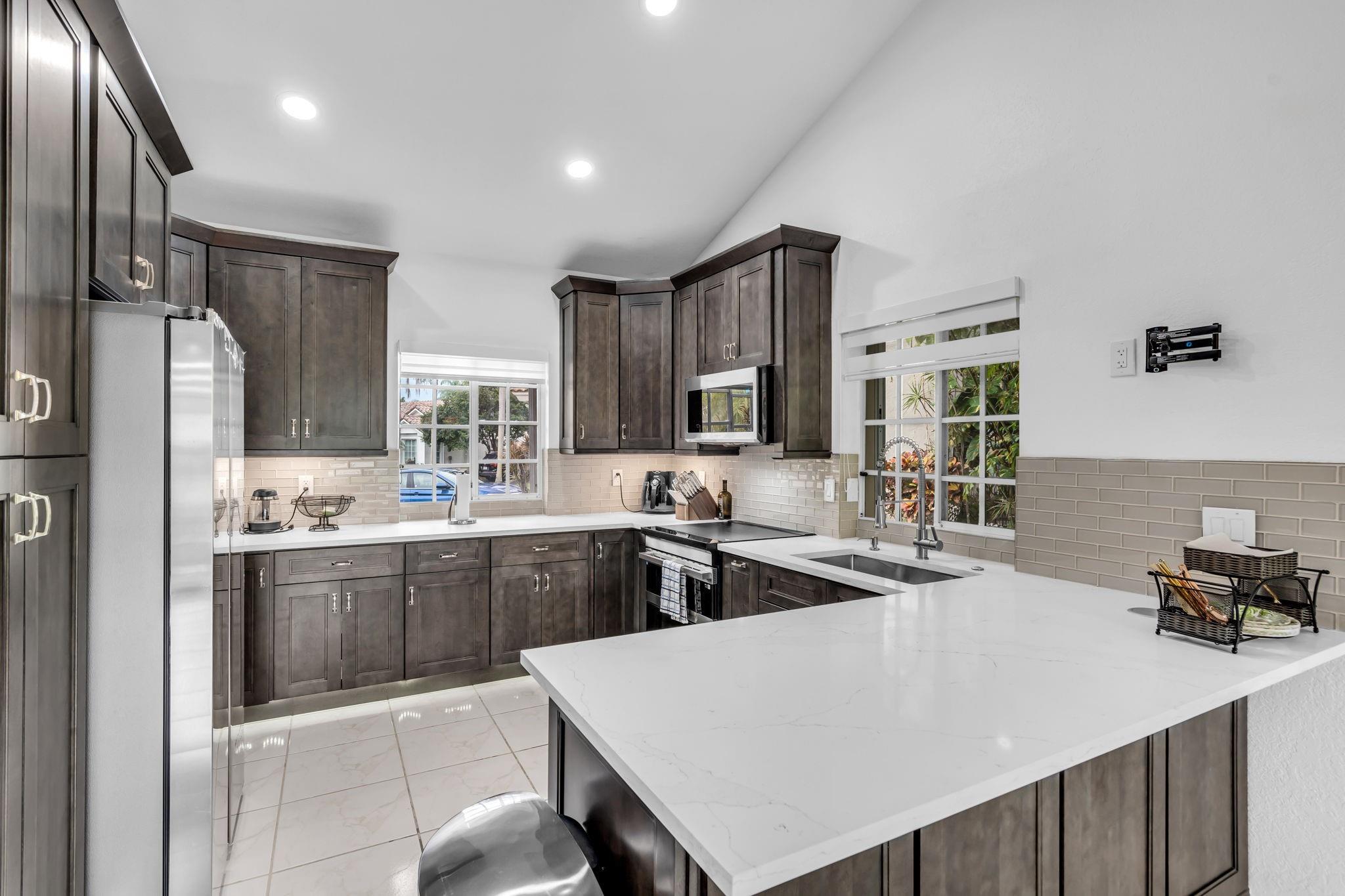 **Just reduced to 905k** Welcome to your new home in Laguna Springs II in Weston. This is an Estancia model on an oversized 12,000 SF Lot, on a quiet cul-de-sac. Property located in a gated close knit community of under 100 homes. Interior has been recently updated, including all the bathrooms and the kitchen with newer appliances. House has hurricane protection including accordian shutters. There is an additional room that can used as a den, library, office or converted into a bedroom. House has a serene lake view with 150 feet of water frontage, as well as an assortment of fruit trees. Newer roof (2019) House within walking distance (<1 mile) of Chabad, churches, parks, schools and shopping centers.