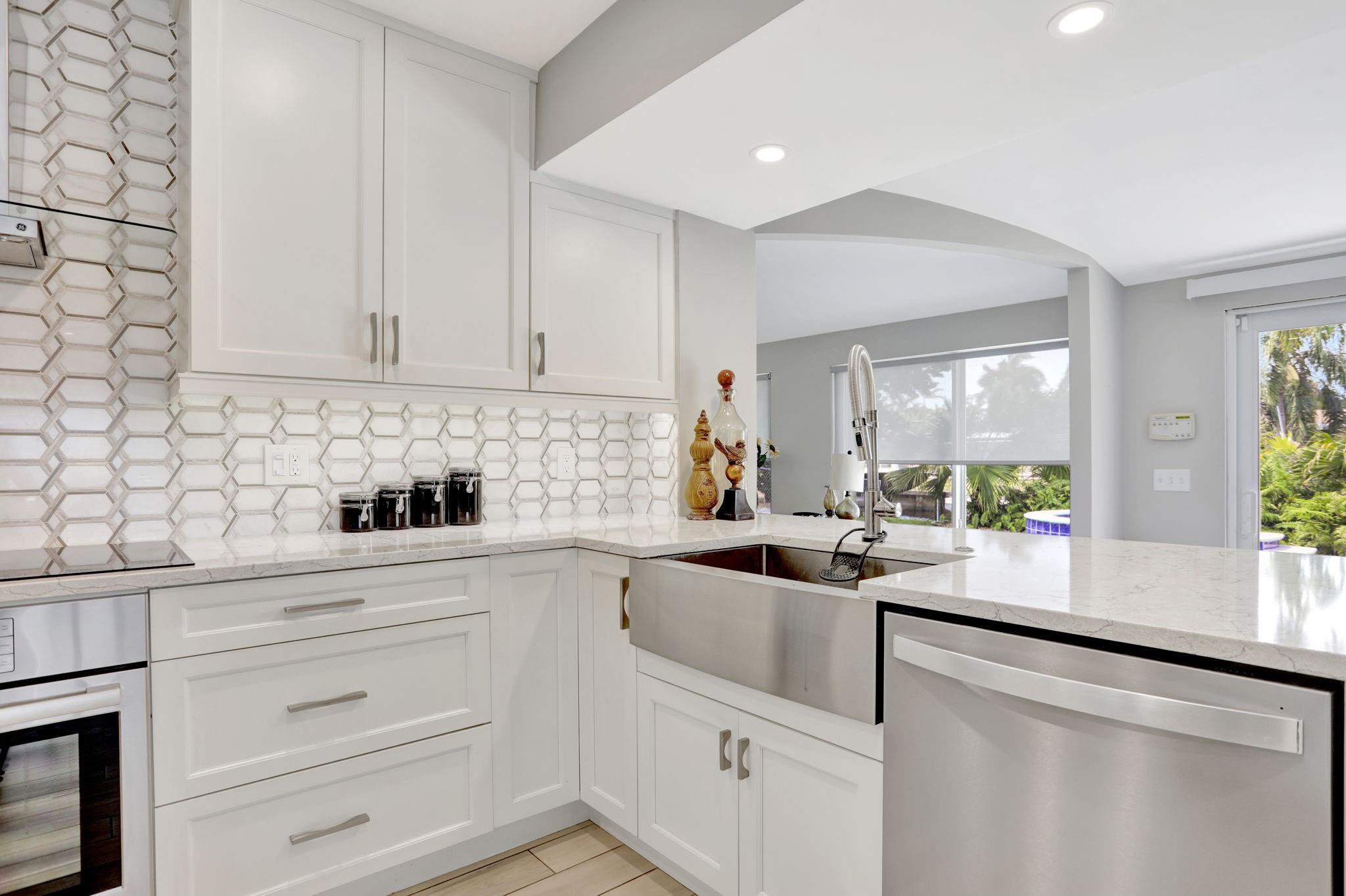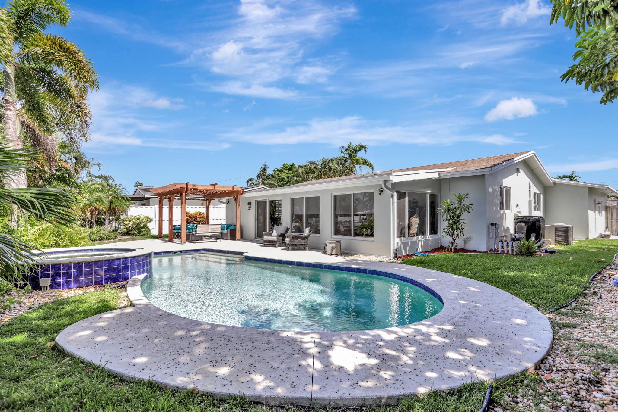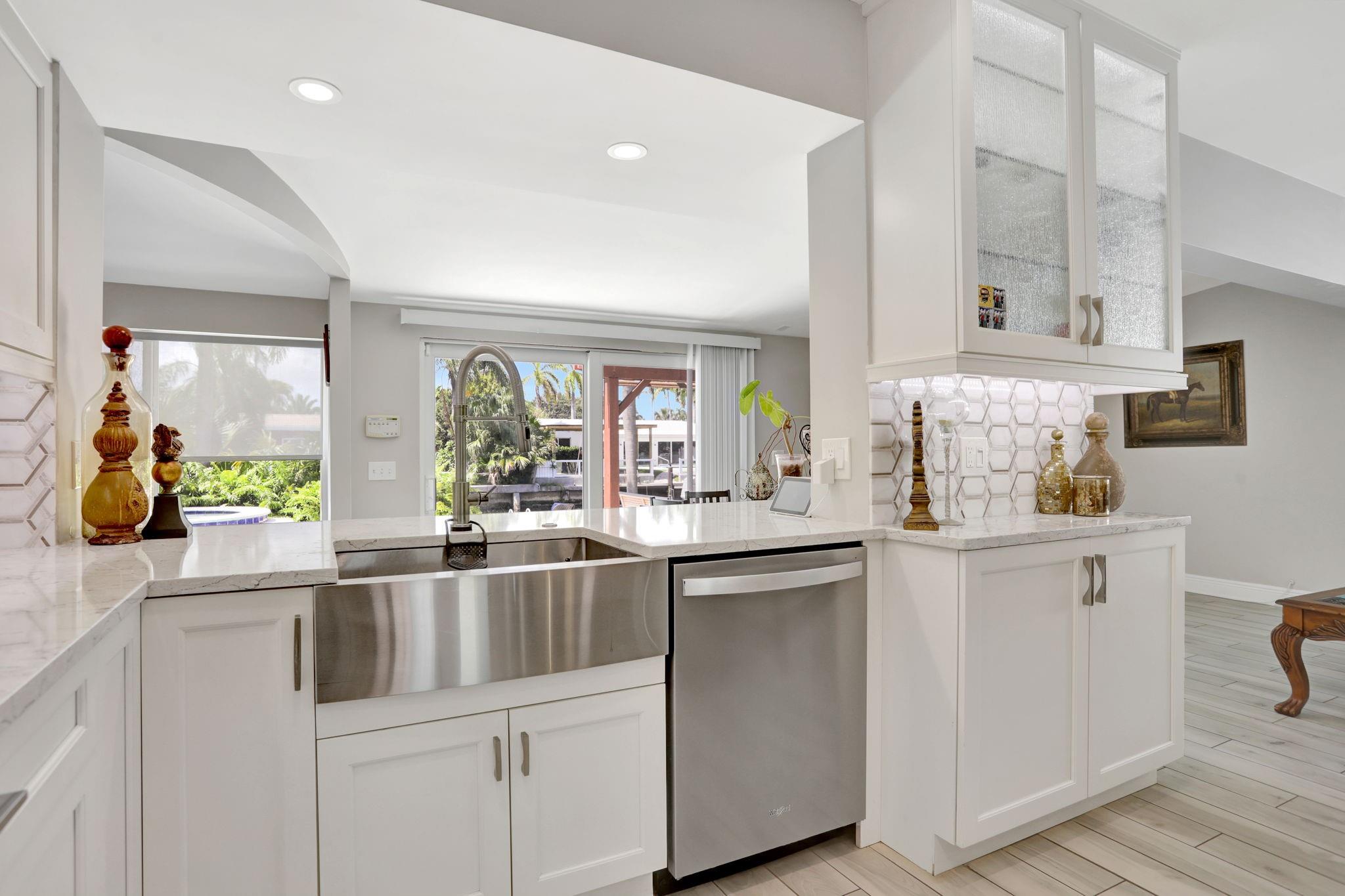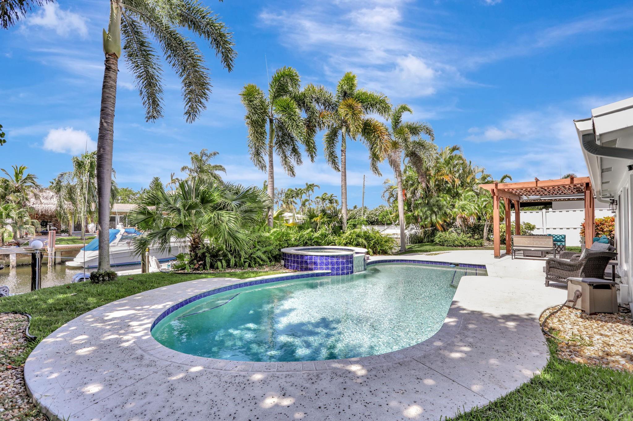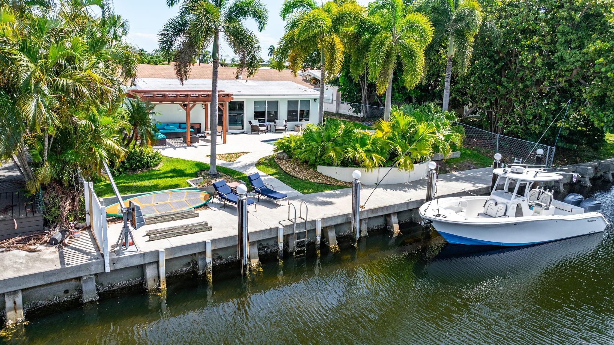 RARE NO-HOA waterfront home with a 2-car garage on private cul-de-sac island in amazing neighborhood. You'll love the 70' x 8' concrete seawall/dock with boat whips & jet ski hoist. Direct ocean access at Hillsboro Inlet is 15 minutes away. The gourmet kitchen sits at the heart of this open, light-filled floor plan with quartz countertops, custom cabinets, and SS appliances. Impact windows and doors provide added convenience and draw the eye to your own tropical oasis, backyard, and Florida Room. 2 HVAC (zoned), tankless water heater, upgraded electrical panel. Ext Paint in 2024. This home offers the best of coastal living whether you enjoy entertaining pool/spa side, hoping on the boat, or just relaxing! 5-10 minutes from schools, hospitals, shopping, dining, and the beach! You're HOME!