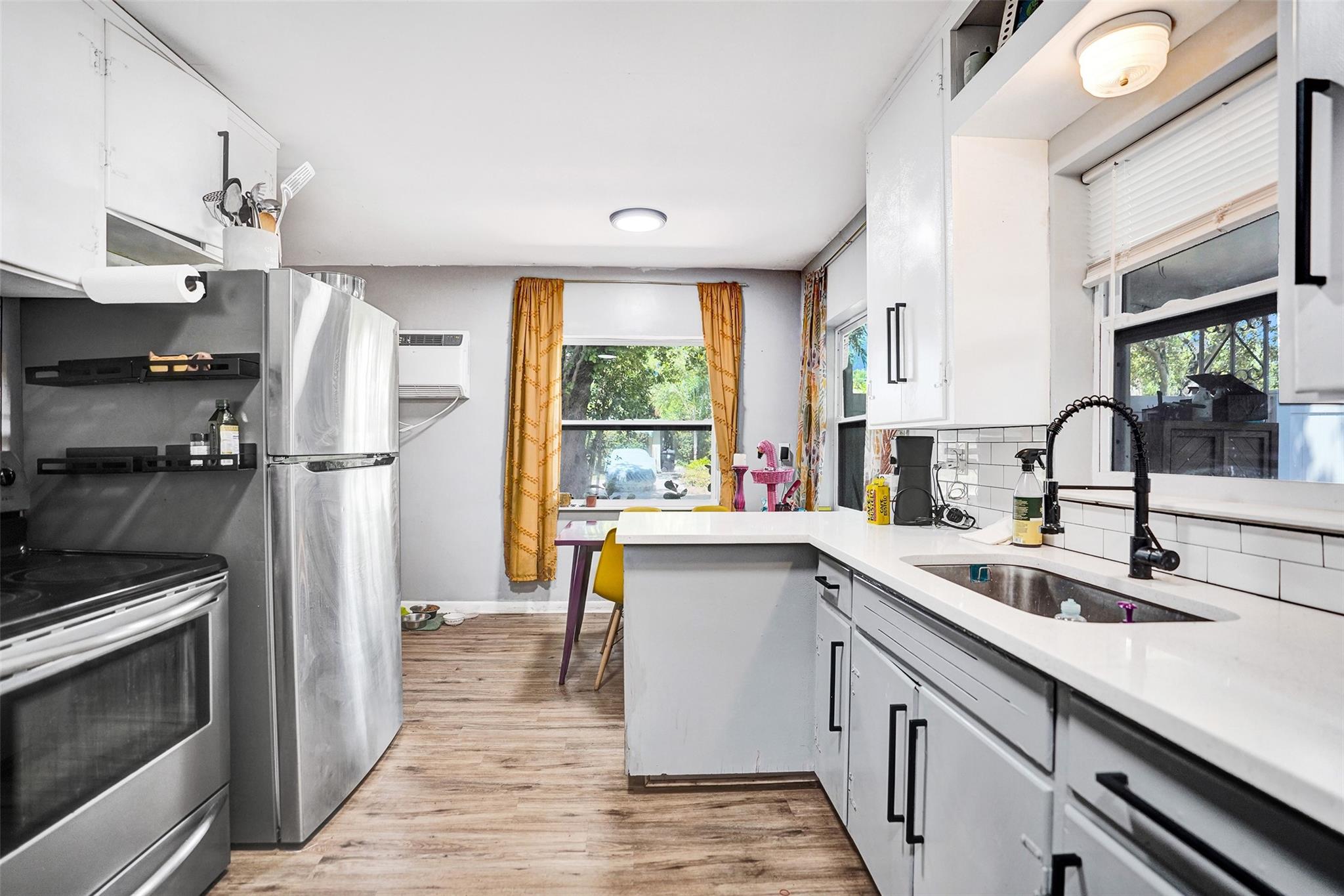 Welcome to this beautiful single home with stunning views of Lake Osborne with NO HOA, 2 bedrooms + an office & 2 bathrooms. Featuring all impact windows, new wall a/c unit, newer electrical panel, newer water heater, newer refrigerator, washer & dryer. Enjoy this newly all fenced-in big backyard with lots of space for a boat/RV/jet ski or a pool. Plumbing is all copper & PVC. Excellent Location, a bike ride away from the vibrant downtown, 2 miles away from the beach, restaurants, parks, easy access to highways & more.