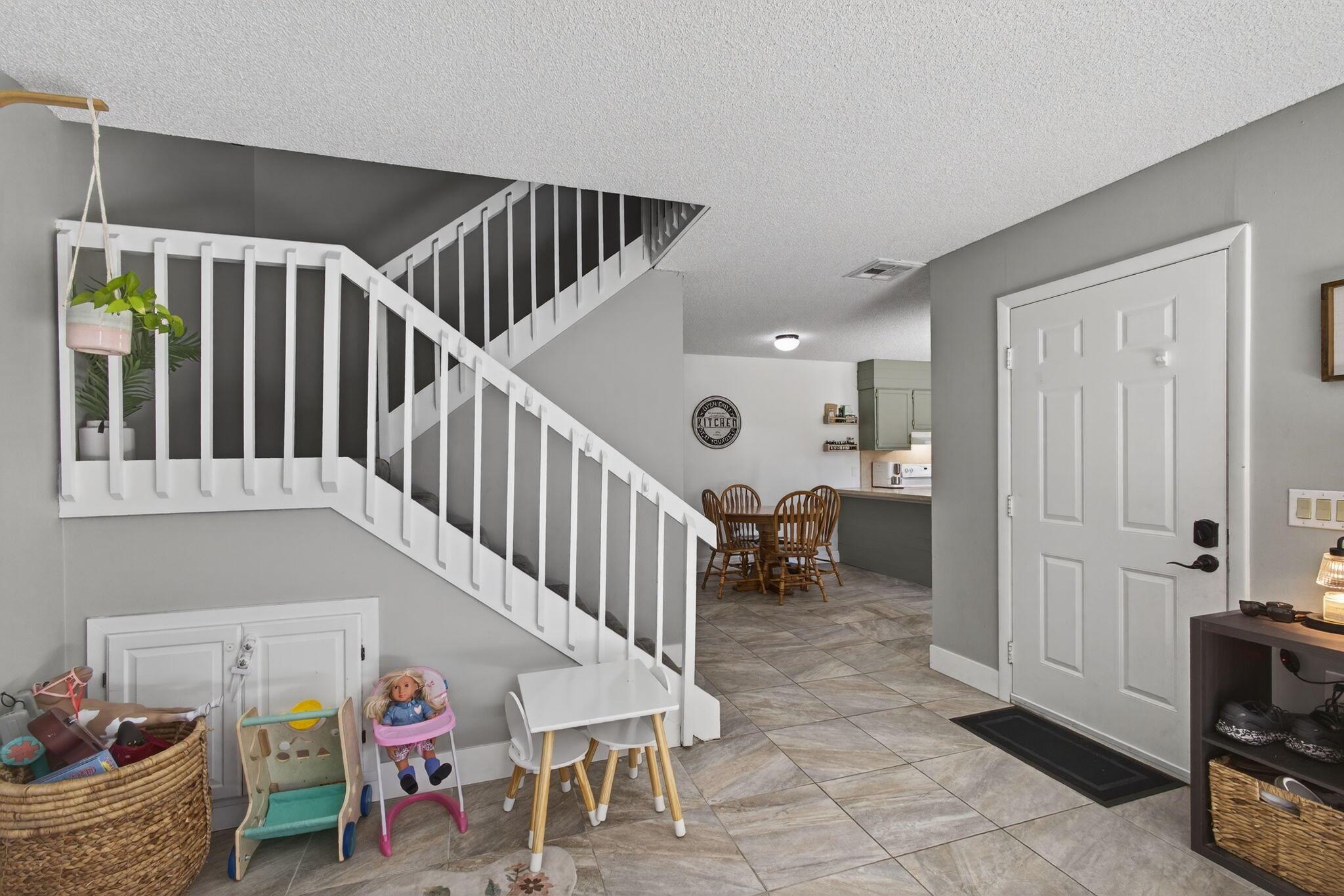 Welcome to 5680 SE Windsong Ln #345, a beautifully maintained 2-bedroom, 2-bath townhome offering 1,288 sq ft of stylish living space in the gated community of Emerald Lakes. This home features a private fenced courtyard, perfect for outdoor dining, entertaining, or play.Step inside to find a light and bright open-concept living and dining area with neutral tile flooring, fresh paint, and sliding glass doors that fill the home with natural light. The kitchen offers ample cabinet space, a breakfast nook, and a pass-through to the living area. A convenient indoor laundry room is located off the downstairs half bath.Upstairs, both spacious bedrooms feature sliding doors to private balconies, offering peaceful views and fresh air. The primary suite includes dual closets and access