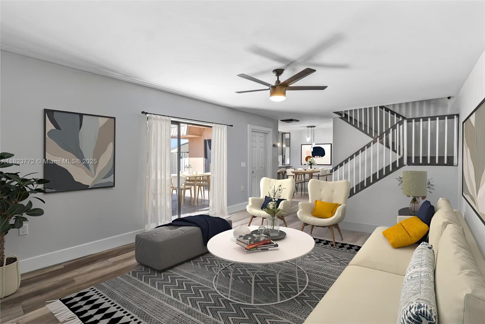 Virtually Staged. Motivated seller offering $10K credit to buyer. Spectacular Fully remodeled 2BD/2.5BA townhome with custom kitchen, quartz countertops, and stainless-steel appliances. Upstairs, primary suite includes a custom walk-in closet, remodeled bathroom, and private balcony. Guest bedroom features custom closet, private bath, and its own balcony. Downstairs boasts a spacious open concept living room with new vinyl flooring and fresh paint throughout, plus a modern guest half bath and a convenient laundry room. Large fenced, covered patio with a charming pergola—perfect for entertaining and privacy. Includes two assigned parking spots. Resort-style community with low HOA fees and amenities: pools, playgrounds, sports courts, trails, dog parks, and more. Schedule your showing today!