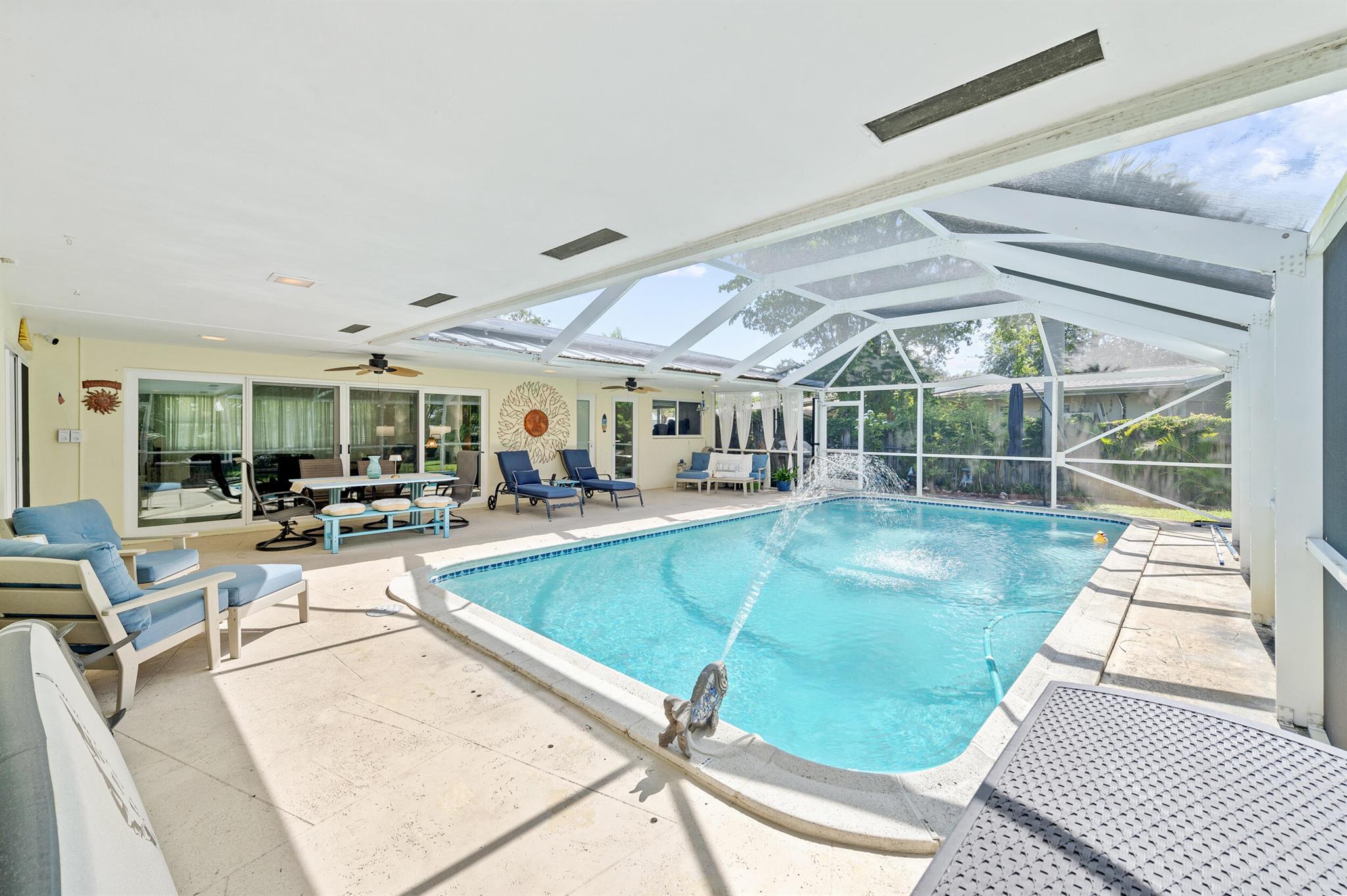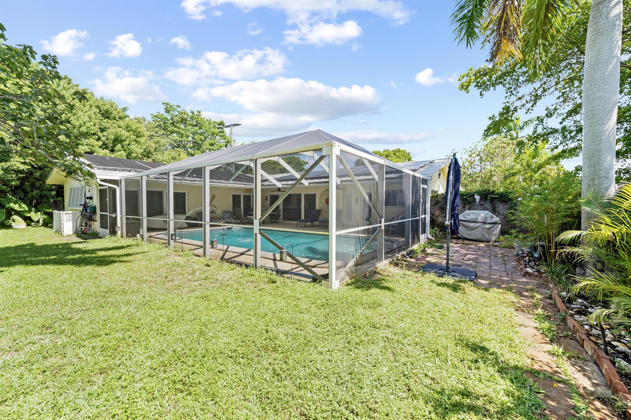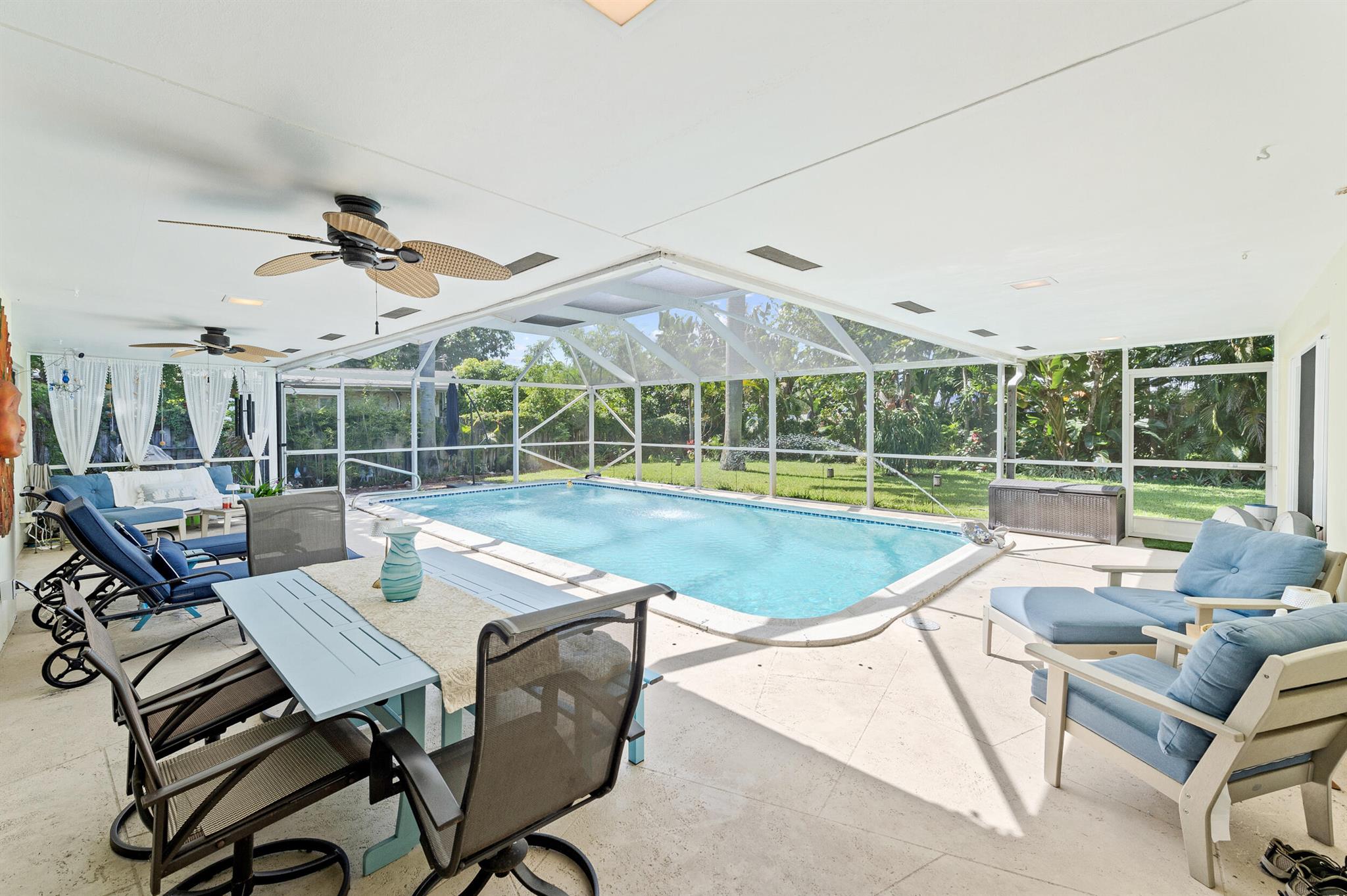 Discover this gem in the heart of Old Pompano, nestled in a beautiful neighborhood with no HOA! This Home features a new standing seam metal roof, impact windows and doors, and solar electric for energy efficiency. Enjoy year-round fun in the saltwater pool, complete with a solar pool heater and a new screened enclosure (2021).The spacious driveway and large backyard are ideal for entertaining, and you'll love the mature avocado and mango trees. Additional upgrades include attic insulation (30''), front and rear landscape lighting (2022), a whole-house water filtration system, and a reverse osmosis system --both with a 25-year lifespan. The home is also freshly painted and located in a no flood zone for added peace of mind.Perfectly situated near beach