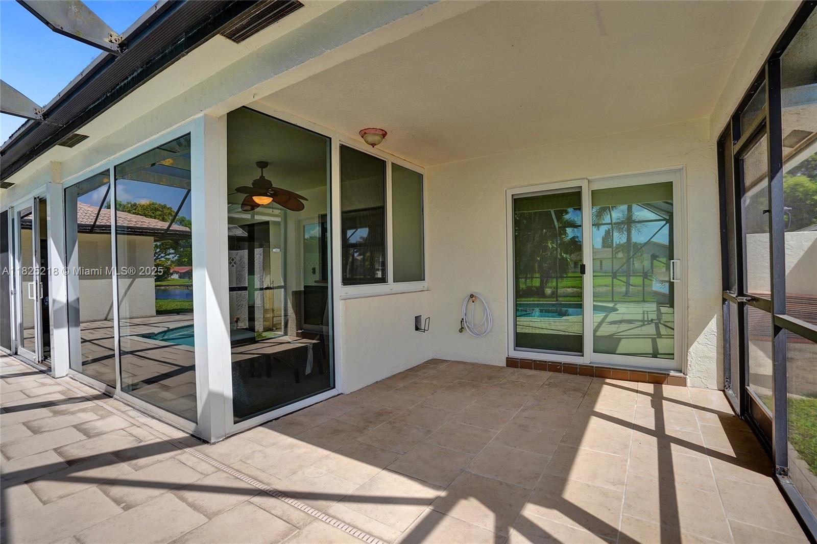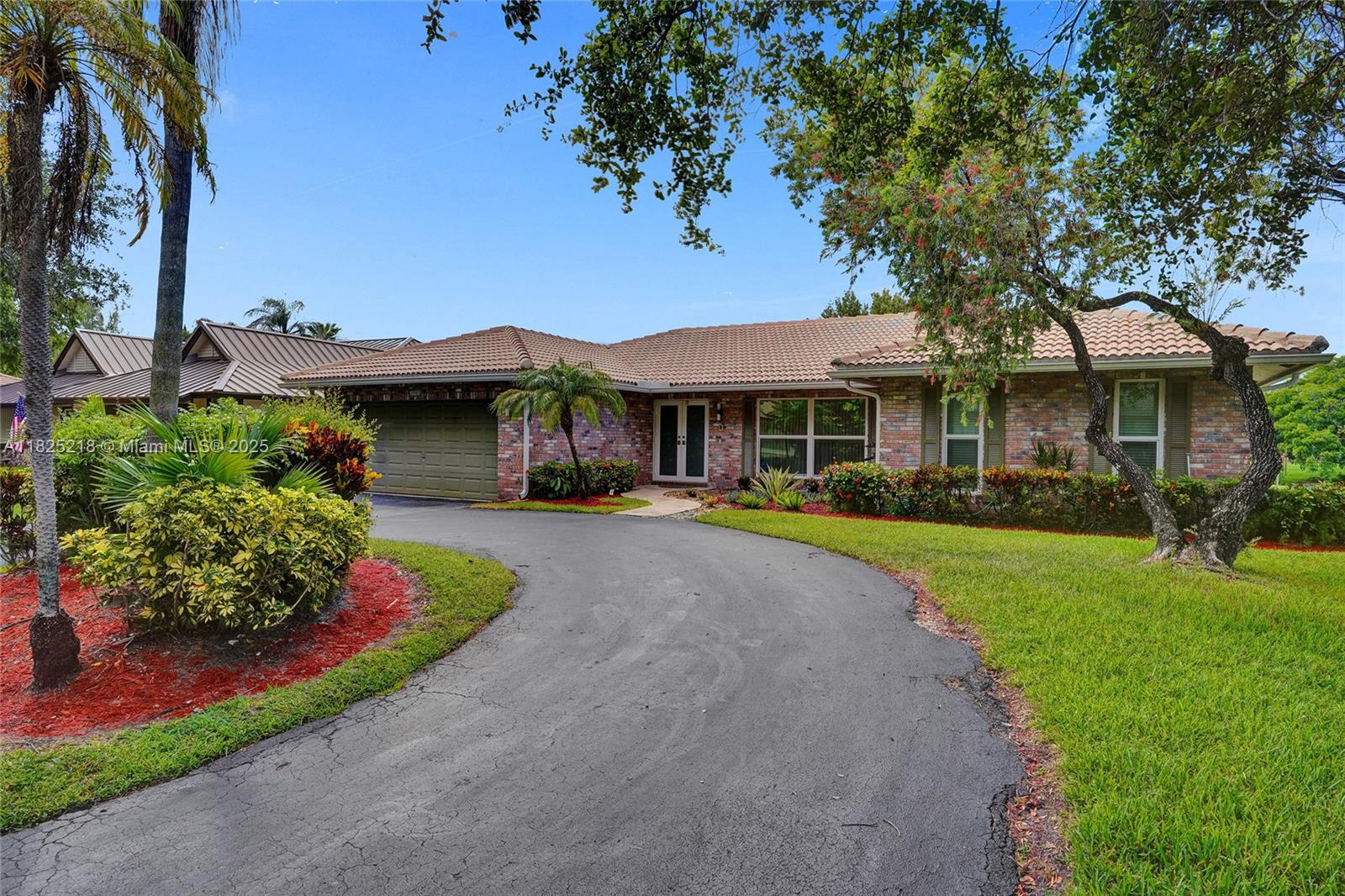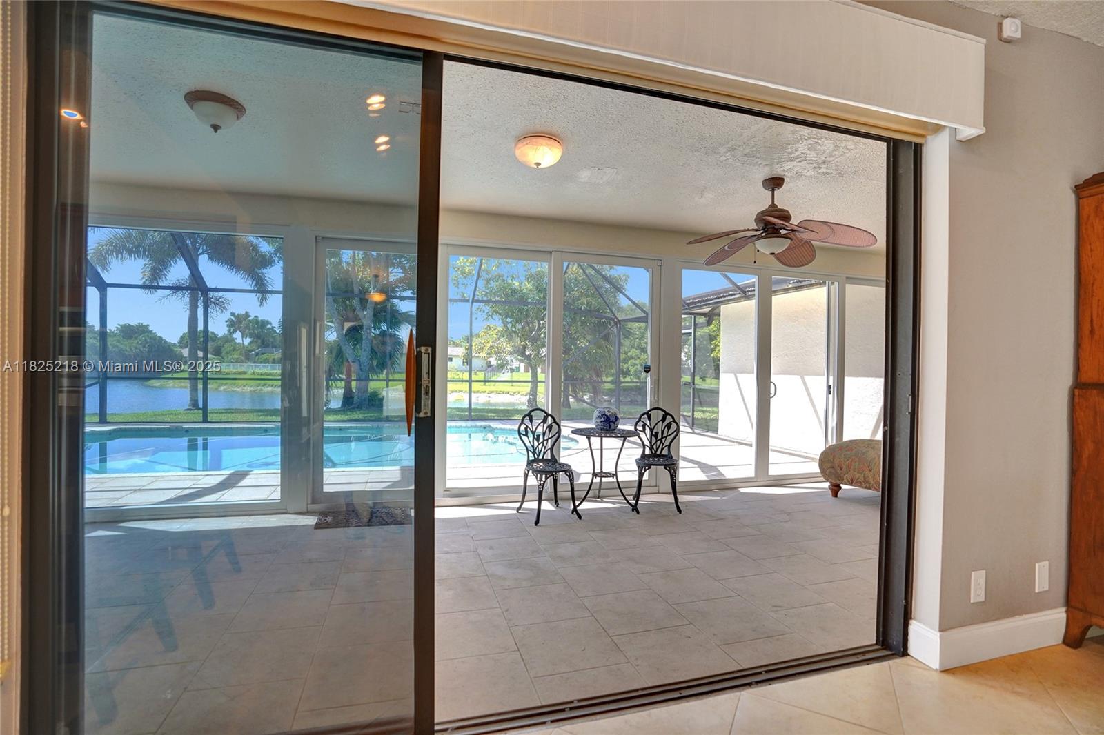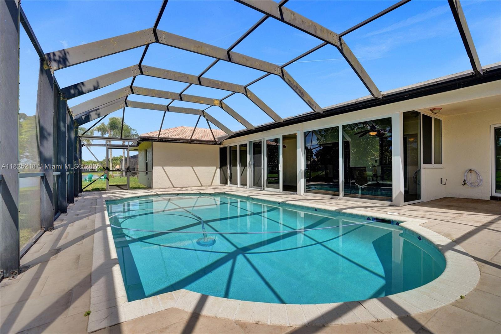 Vaulted ceilings accent open living spaces in the main living areas, built-in bookcases flanking a fireplace! Formal dining room currently used for a cozy TV space. Attractive hood over cooktop, granite countertops & full backsplash, crown molding on cabinets, stainless steel appliances! Patio off of the sitting area. The oversized laundry room includes abundant cabinets, folding space, a tankless water heater, LG washer & GE dryer. Most bedrooms with wood floors & one used as a office is tiled.The primary suite featuress a walk-in closet & updated bath. Enjoy serene triple water views across from a park off of the screened-in pool with a beautifully tiled deck & cabana bath access. Enclosed sunroom! Full impact windows, tile & wood flooring. Circular drive this must-see home with no HOA!