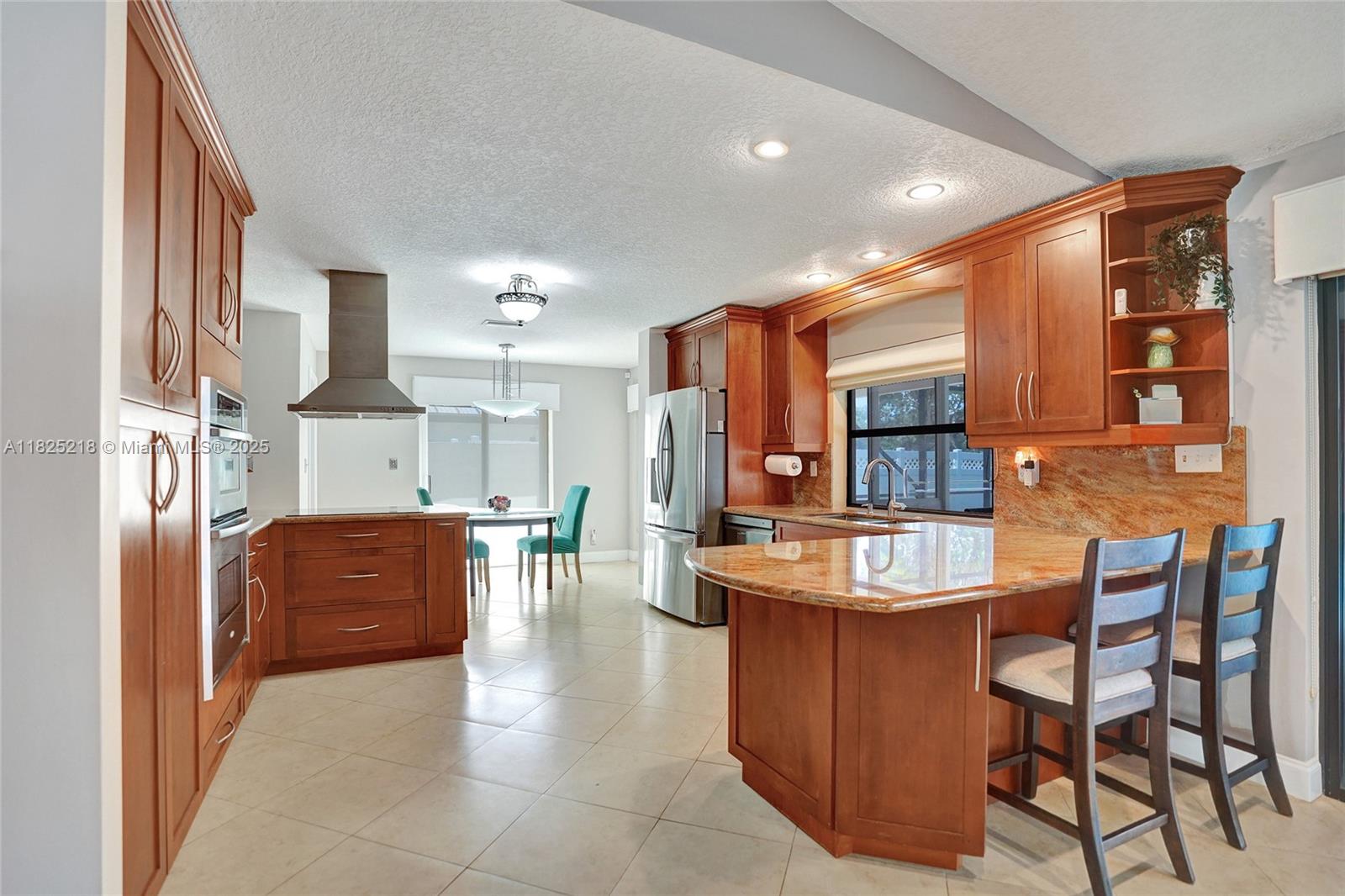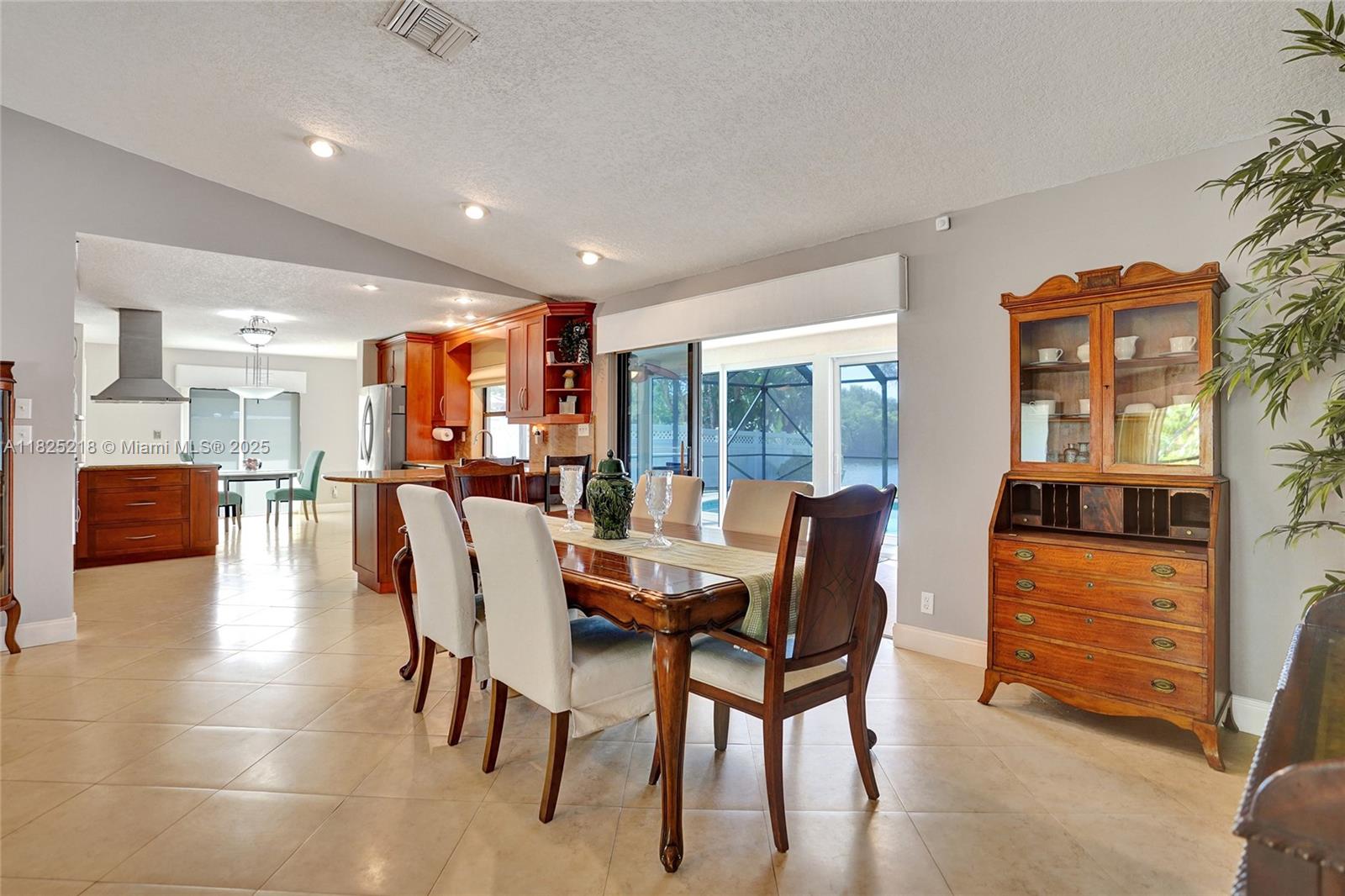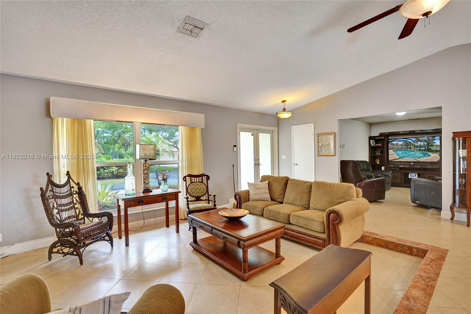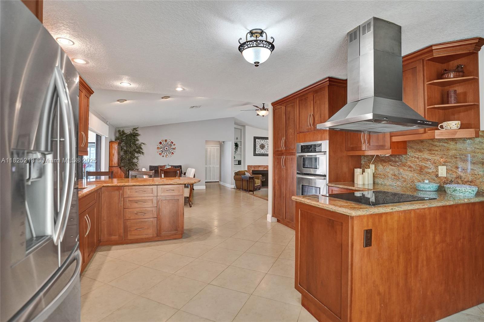 Vaulted ceilings accent open living spaces in the main living areas, built-in bookcases flanking a fireplace! Formal dining room currently used for a cozy TV space. Attractive hood over cooktop, granite countertops & full backsplash, crown molding on cabinets, stainless steel appliances! Patio off of the sitting area. The oversized laundry room includes abundant cabinets, folding space, a tankless water heater, LG washer & GE dryer. Most bedrooms with wood floors & one used as a office is tiled.The primary suite featuress a walk-in closet & updated bath. Enjoy serene triple water views across from a park off of the screened-in pool with a beautifully tiled deck & cabana bath access. Enclosed sunroom! Full impact windows, tile & wood flooring. Circular drive this must-see home with no HOA!
