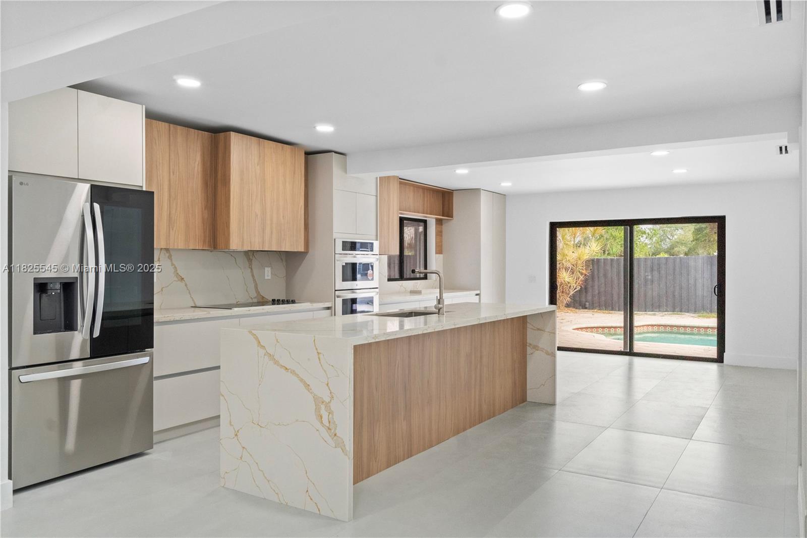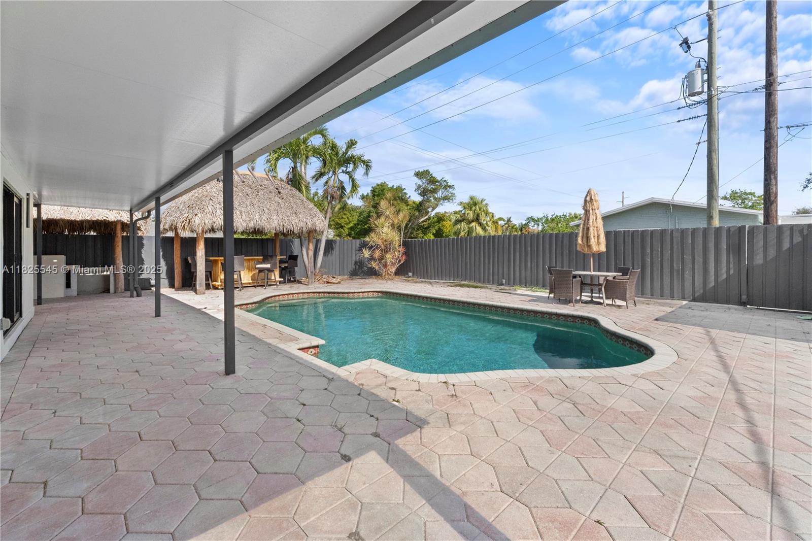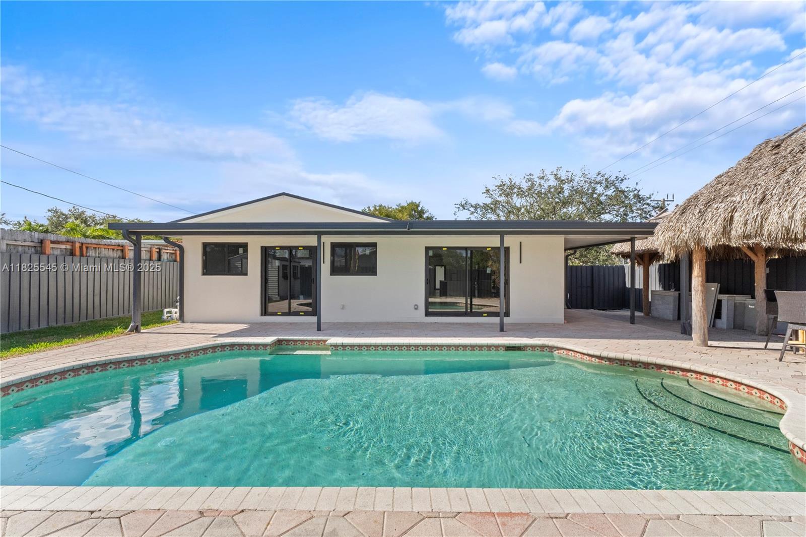 Beautifully remodeled pool home in the heart of Hollywood Hills! This 4 bed, 3.5 bath home with a den features a custom kitchen with oversized island, stainless steel appliances, wall oven, and bar. Enjoy new plumbing, electrical, roof, impact windows and doors. Spacious primary suite with walk-in closet and modern bath. Backyard oasis with large pool, tiki bar, and privacy wall—perfect for entertaining. Includes laundry room, sprinkler system, and leaf filter gutters. Minutes from the beach, business', shopping, and place of worship! No expense spared!