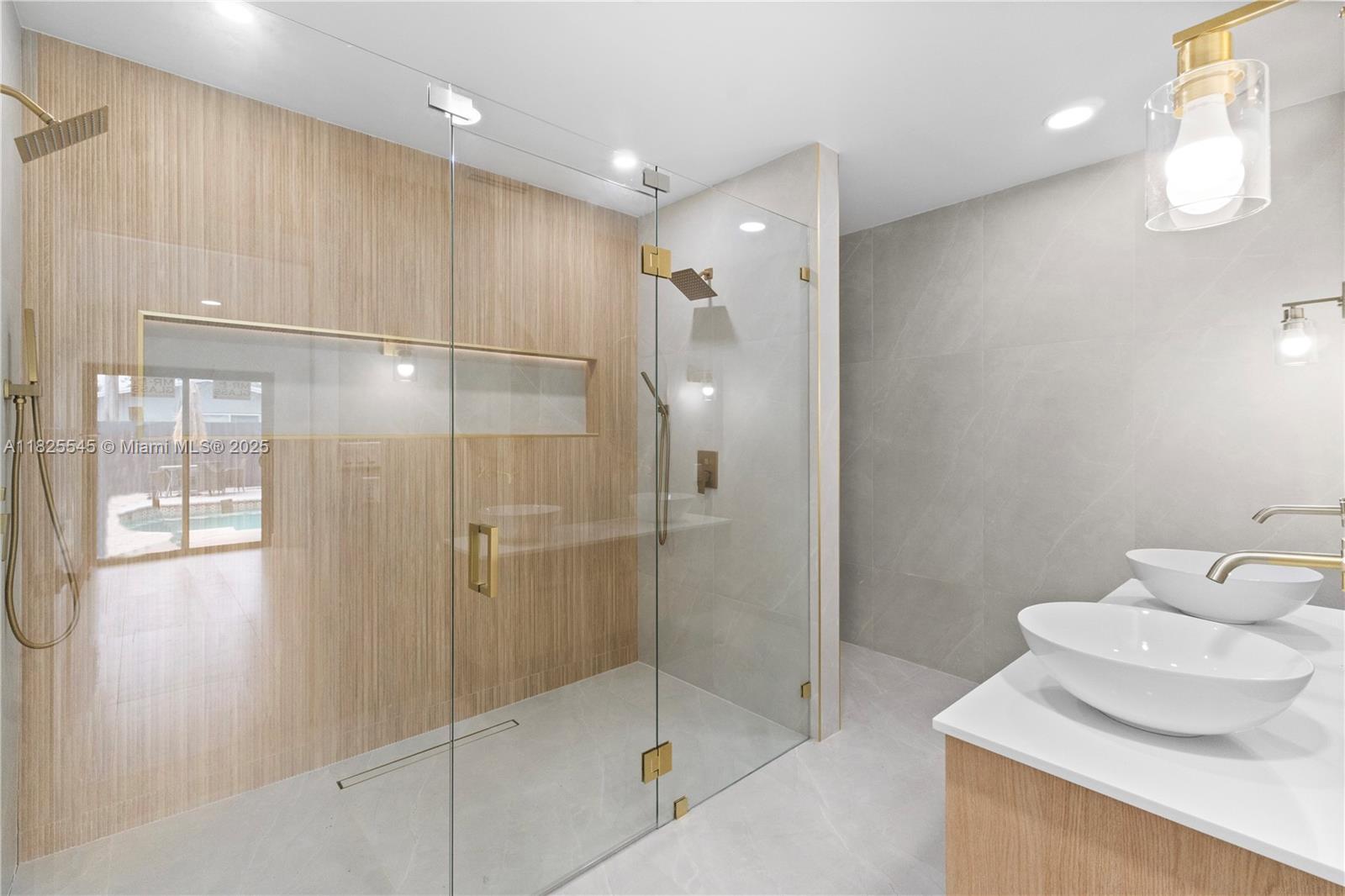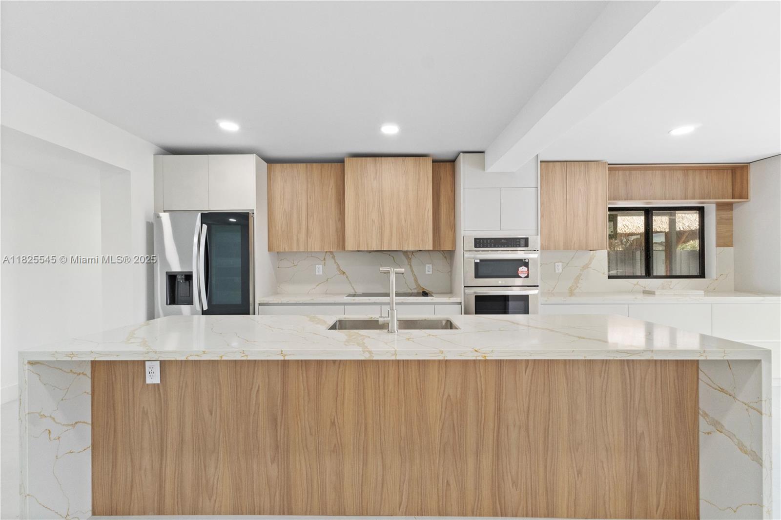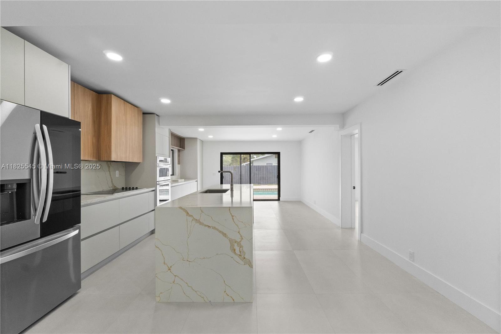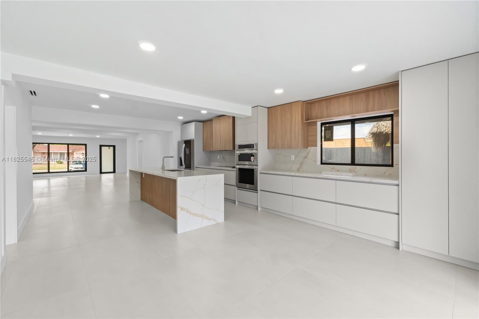 Beautifully remodeled pool home in the heart of Hollywood Hills! This 4 bed, 3.5 bath home with a den features a custom kitchen with oversized island, stainless steel appliances, wall oven, and bar. Enjoy new plumbing, electrical, roof, impact windows and doors. Spacious primary suite with walk-in closet and modern bath. Backyard oasis with large pool, tiki bar, and privacy wall—perfect for entertaining. Includes laundry room, sprinkler system, and leaf filter gutters. Minutes from the beach, business', shopping, and place of worship! No expense spared!