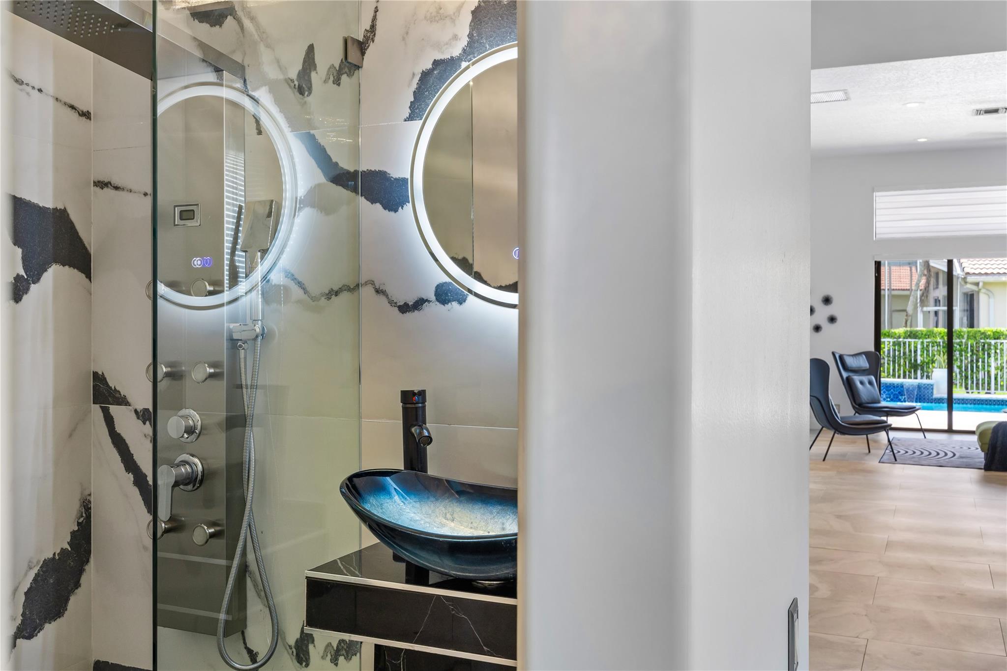 Welcome to this move-in-ready, low maintenance showstopper. Every inch has been thoughtfully redesigned. Downstairs features a formal living room, private office (or 5th bed) with adjacent full bath, grand primary suite, formal dining, and open-concept kitchen/family room with electric fireplace—all with views of the heated pool. Upstairs offers a versatile loft, three additional bedrooms, and two full baths. Enjoy peace of mind with a new roof, hurricane impact windows, new AC, pool equipment, and full video surveillance and alarm system. The 2-car garage boasts epoxy floors and overhead storage. Low HOA. Gated community includes 24/7 security, tennis, pickleball, playground, fitness center, and optional golf. Ideally located near top-rated schools, shopping, dining & major highways.