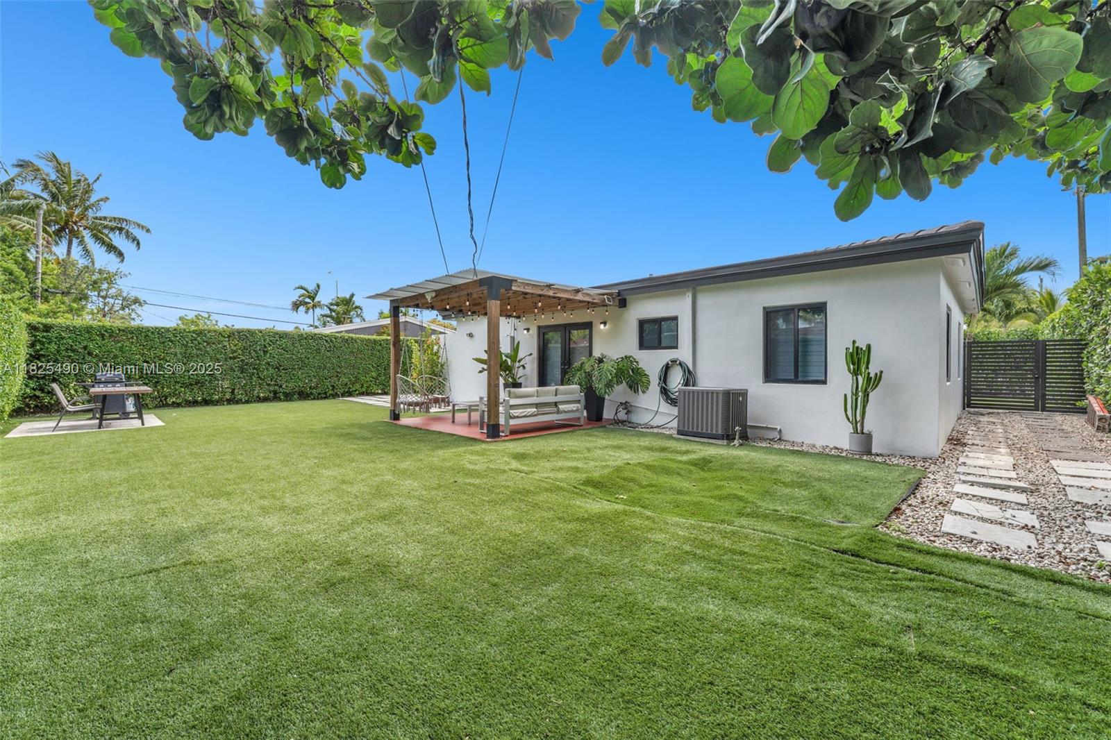 This is the home you've been waiting for, not only is it move in ready, but it's loaded w/ updates and modern features! Some upgrades include: 2024 Concrete Roof, 2022 A/C, 2021 Impact windows, 2024 EV charger, smart doorlock + thermostat. The house is nicely remodeled, w/ a stunning modern driveway + mailbox, updated baths, flooring, closets, modern kitchen w/ SS appliances including a smart Refrigerator w/ screen, and a storage room. The backyard is one of the best features of the house - fully fenced and secluded with privacy plants, upgraded with synthetic turf and a beautiful pergola w/ hanging lights. The location is unbeatable: easy access to I-95, 5 min to Brightline station, 10 min to Aventura mall, 15 min to the beach, very near Greynolds park, supermarkets, restaurants and more!