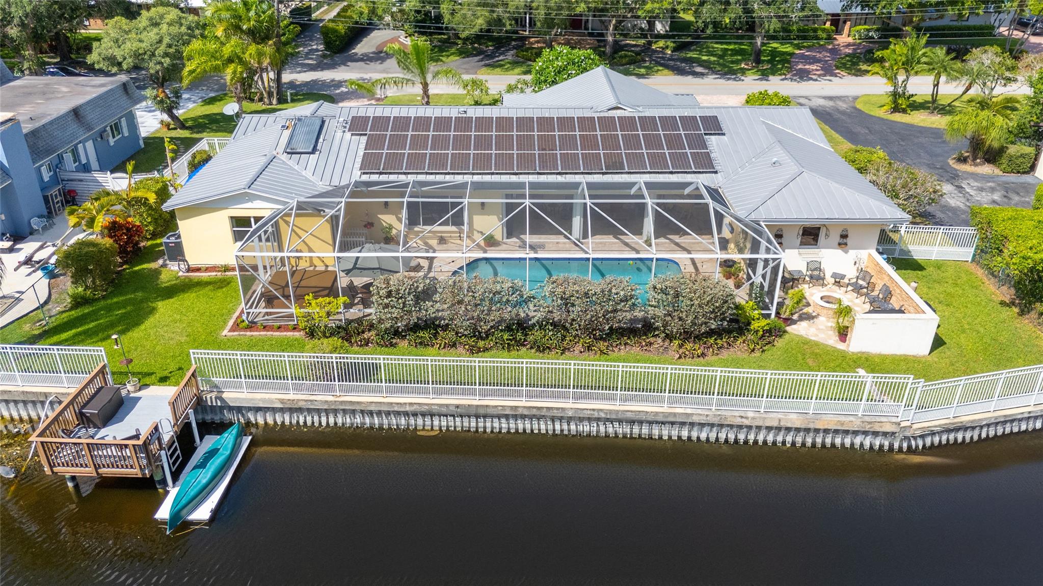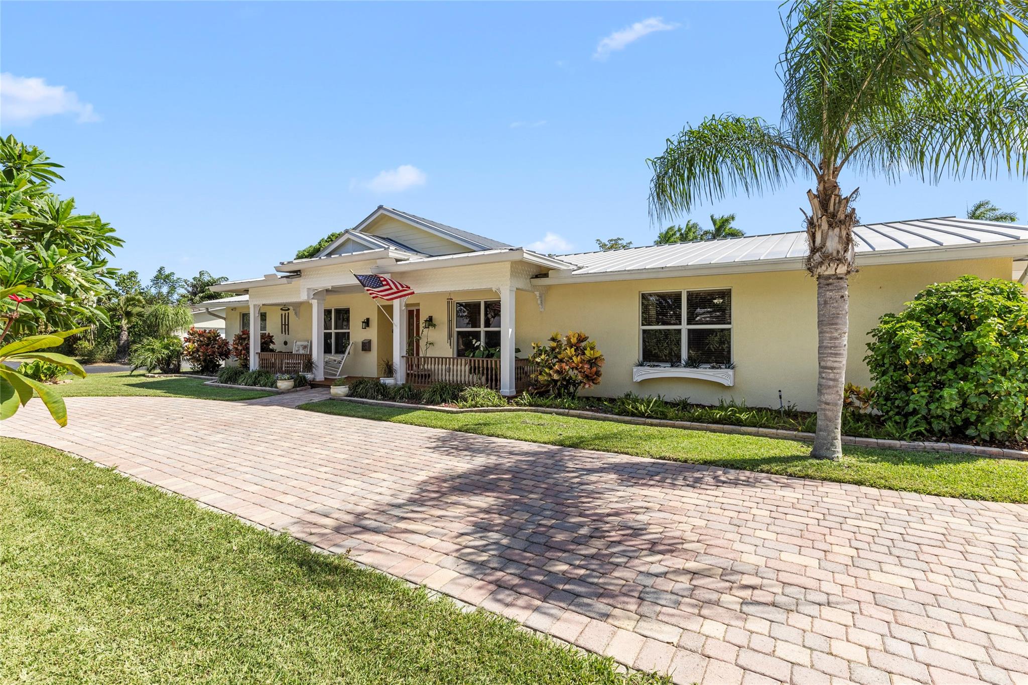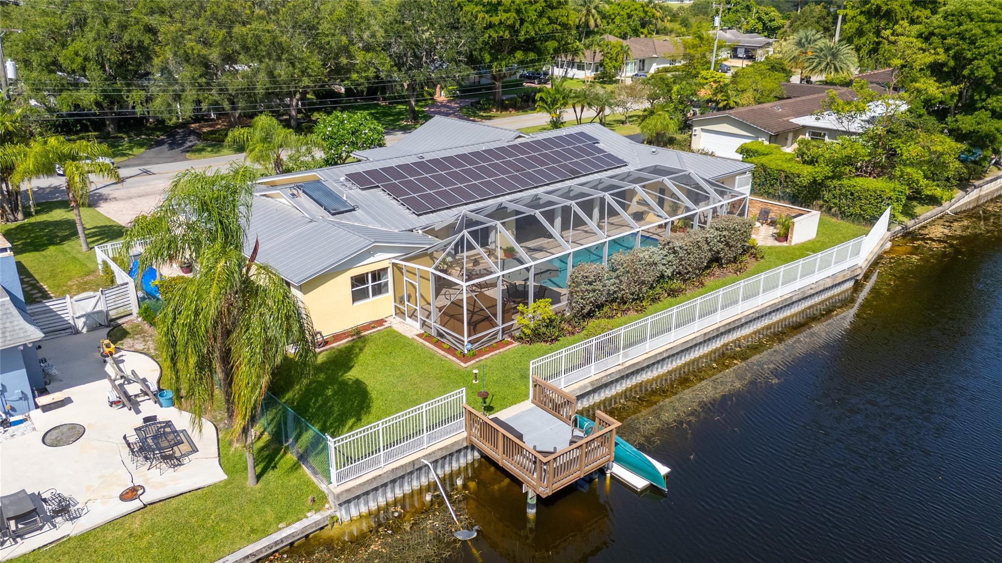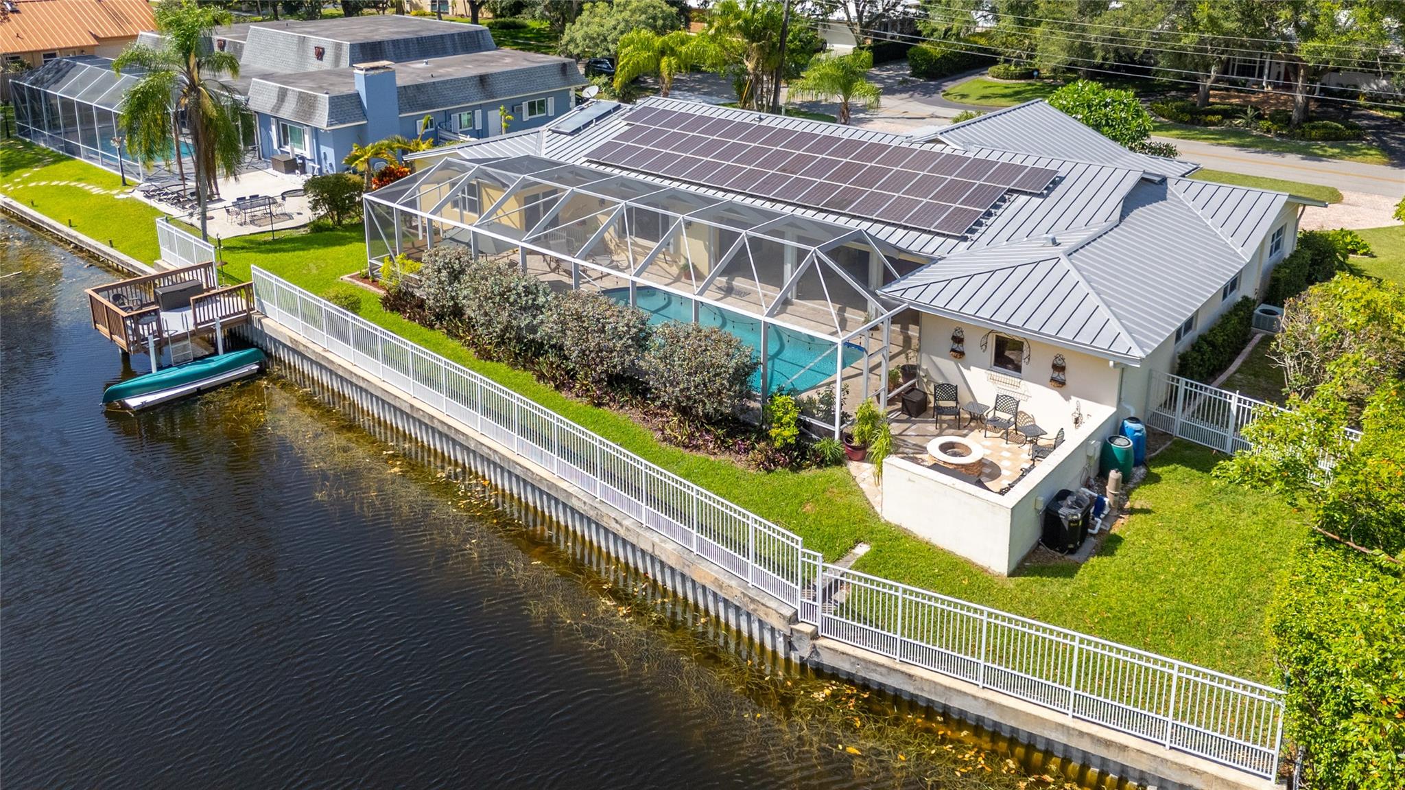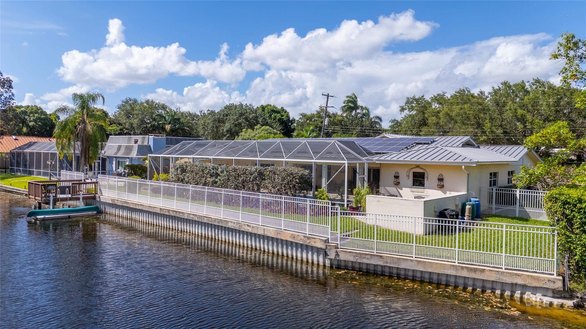 Unique Key West–style waterfront retreat in prestigious Golf Estates. Stunning 5 bedroom, 3 bath home w/Den/6th bedroom + tons of storage. Features double split layout w/2 Primary Suites. Entertain effortlessly w/large living, dining + eat in kitchen, screened salt-water pool-patio, hot tub, cabana baths, expansive covered patio, separate firepit area, + a private dock w/floating extension. Side-yard double gates allow boat/RV parking. Upgrades include metal roof, solar ELECTRIC panels, new solar hot-water heater, all-PVC plumbing, elevated seawall, motion-sensory lighting, hard-wired security cameras, 3 A/C units (includes new 5-ton main unit), canal-fed sprinkler system, septic tank, + complete hurricane protection-impact glass + shutters. Close 2 Schools, Malls, Airport, Beach, Casino+