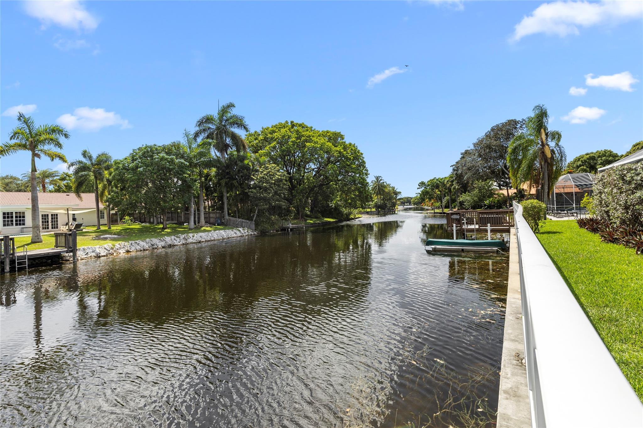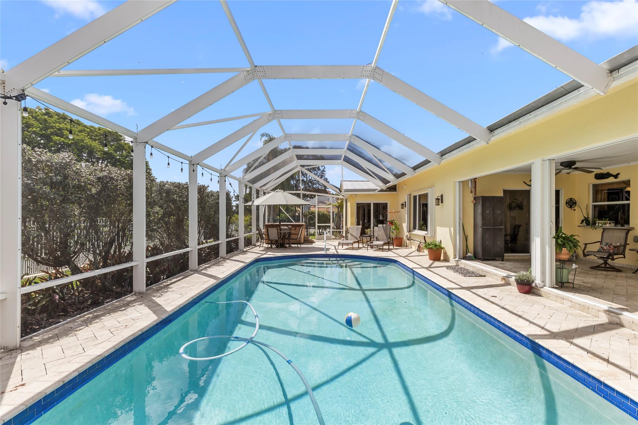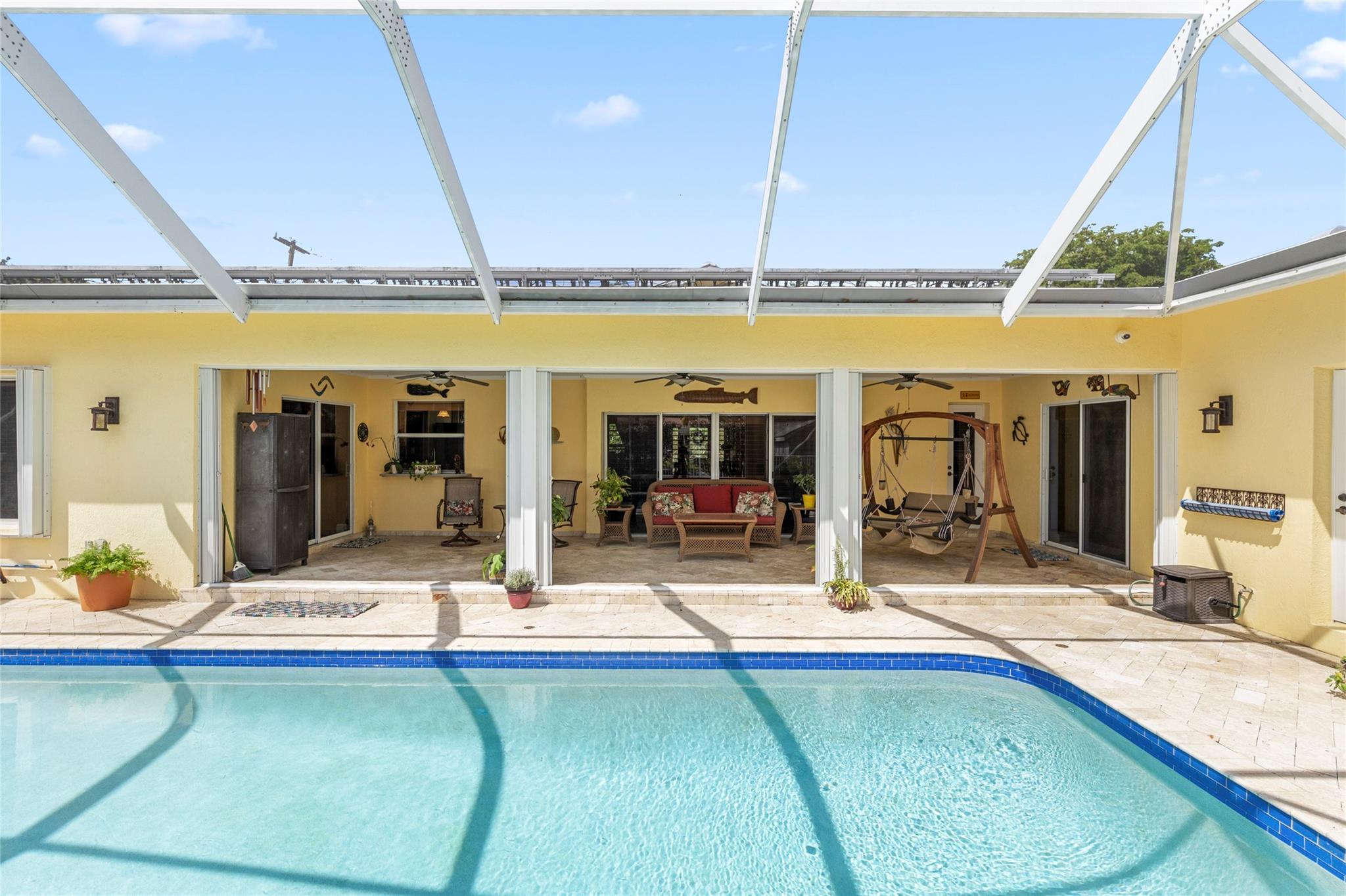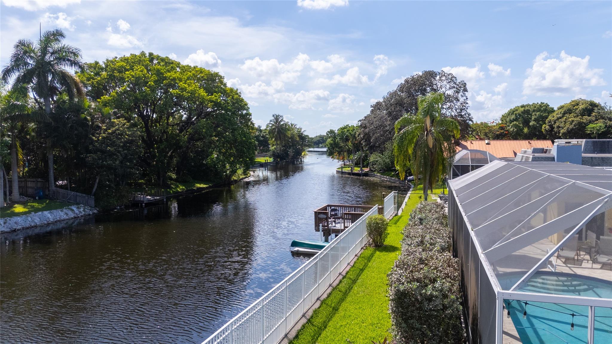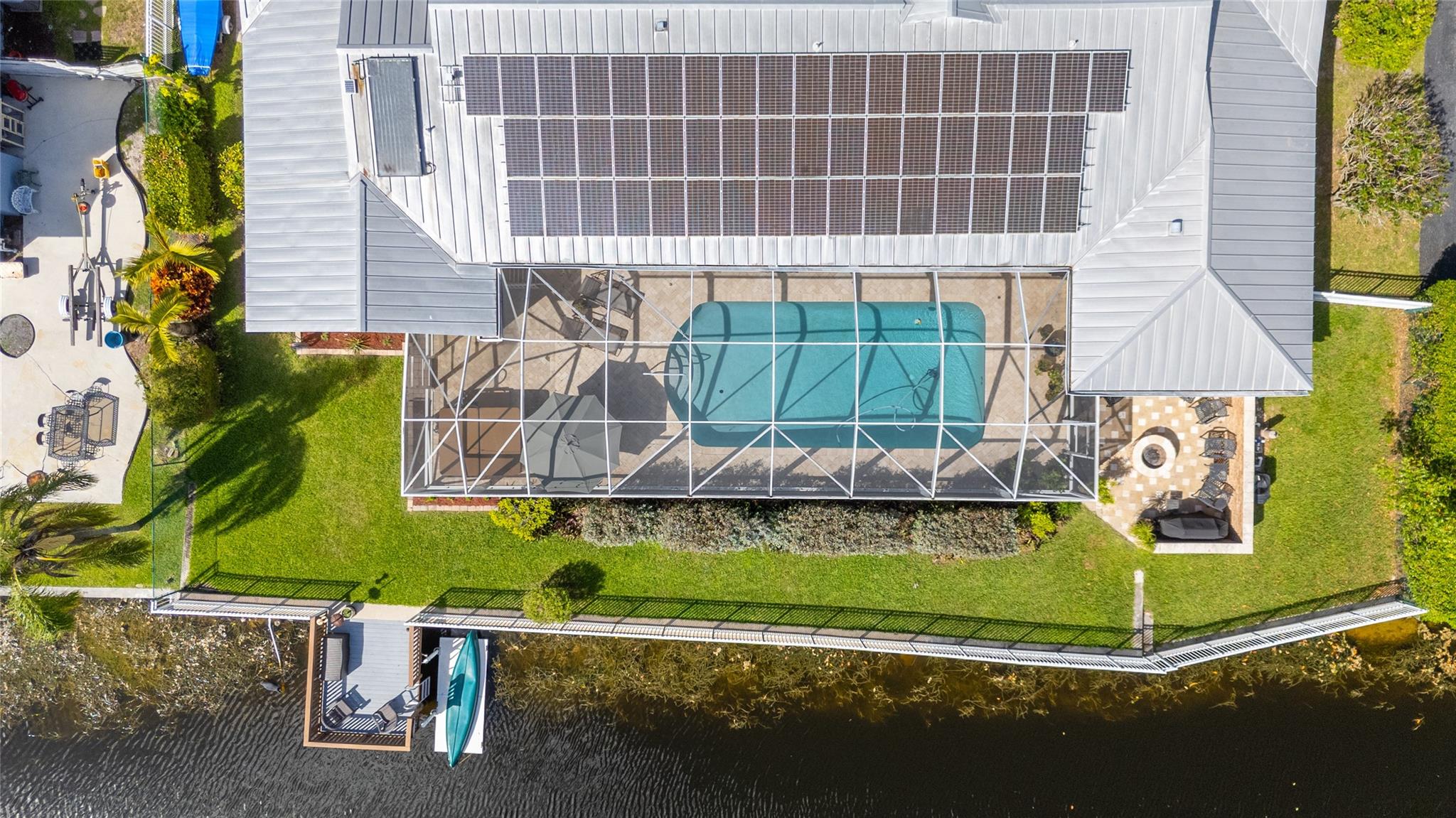 Unique Key West–style waterfront retreat in prestigious Golf Estates. Stunning 5 bedroom, 3 bath home w/Den/6th bedroom + tons of storage. Features double split layout w/2 Primary Suites. Entertain effortlessly w/large living, dining + eat in kitchen, screened salt-water pool-patio, hot tub, cabana baths, expansive covered patio, separate firepit area, + a private dock w/floating extension. Side-yard double gates allow boat/RV parking. Upgrades include metal roof, solar ELECTRIC panels, new solar hot-water heater, all-PVC plumbing, elevated seawall, motion-sensory lighting, hard-wired security cameras, 3 A/C units (includes new 5-ton main unit), canal-fed sprinkler system, septic tank, + complete hurricane protection-impact glass + shutters. Close 2 Schools, Malls, Airport, Beach, Casino+