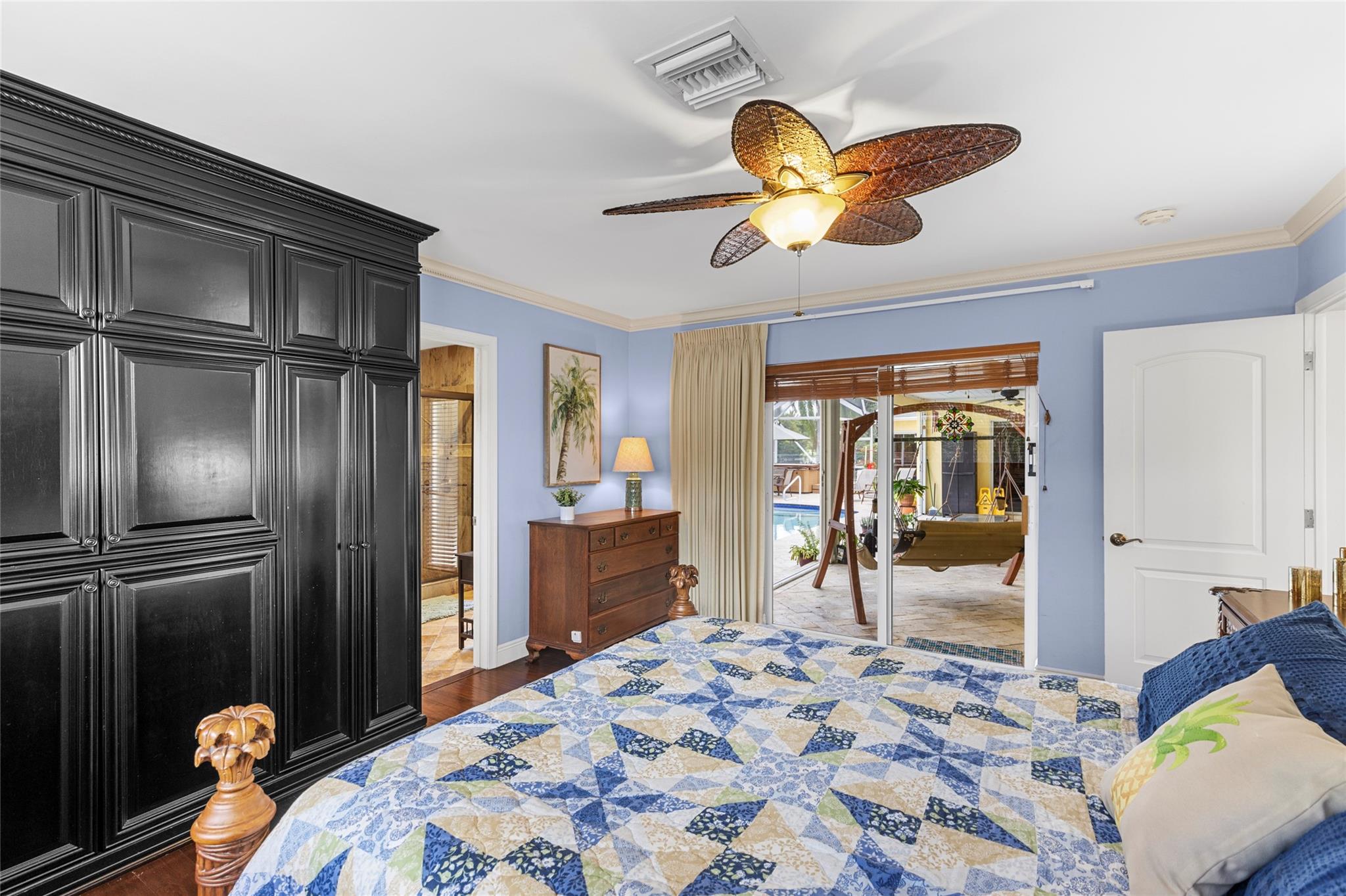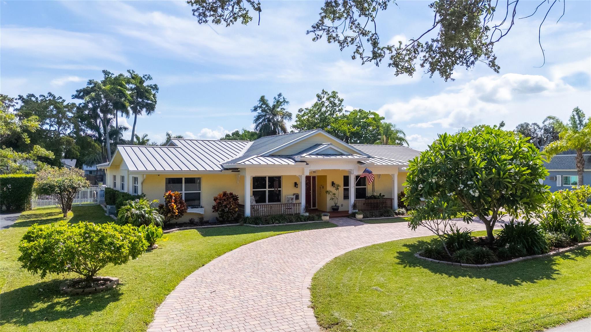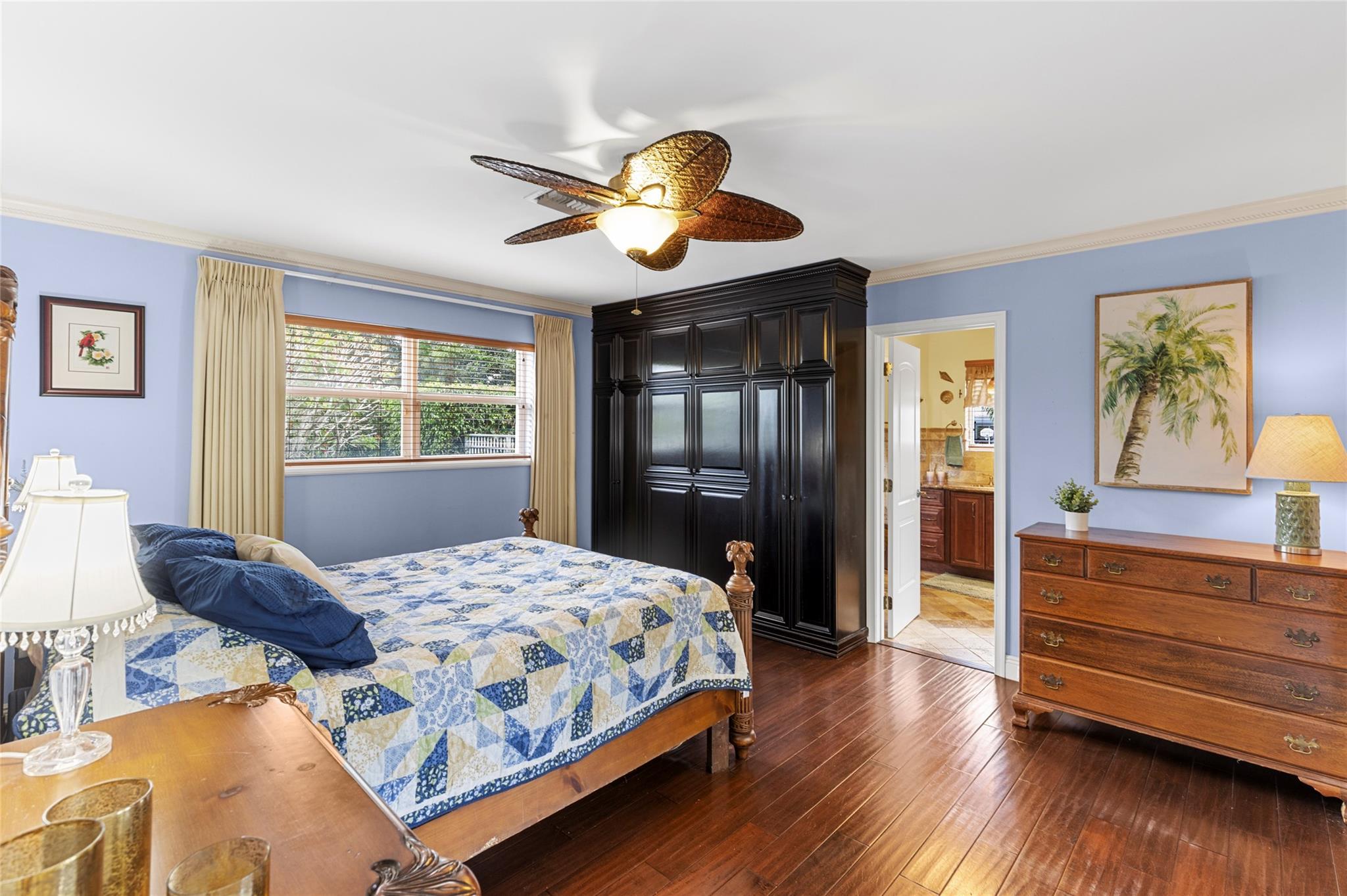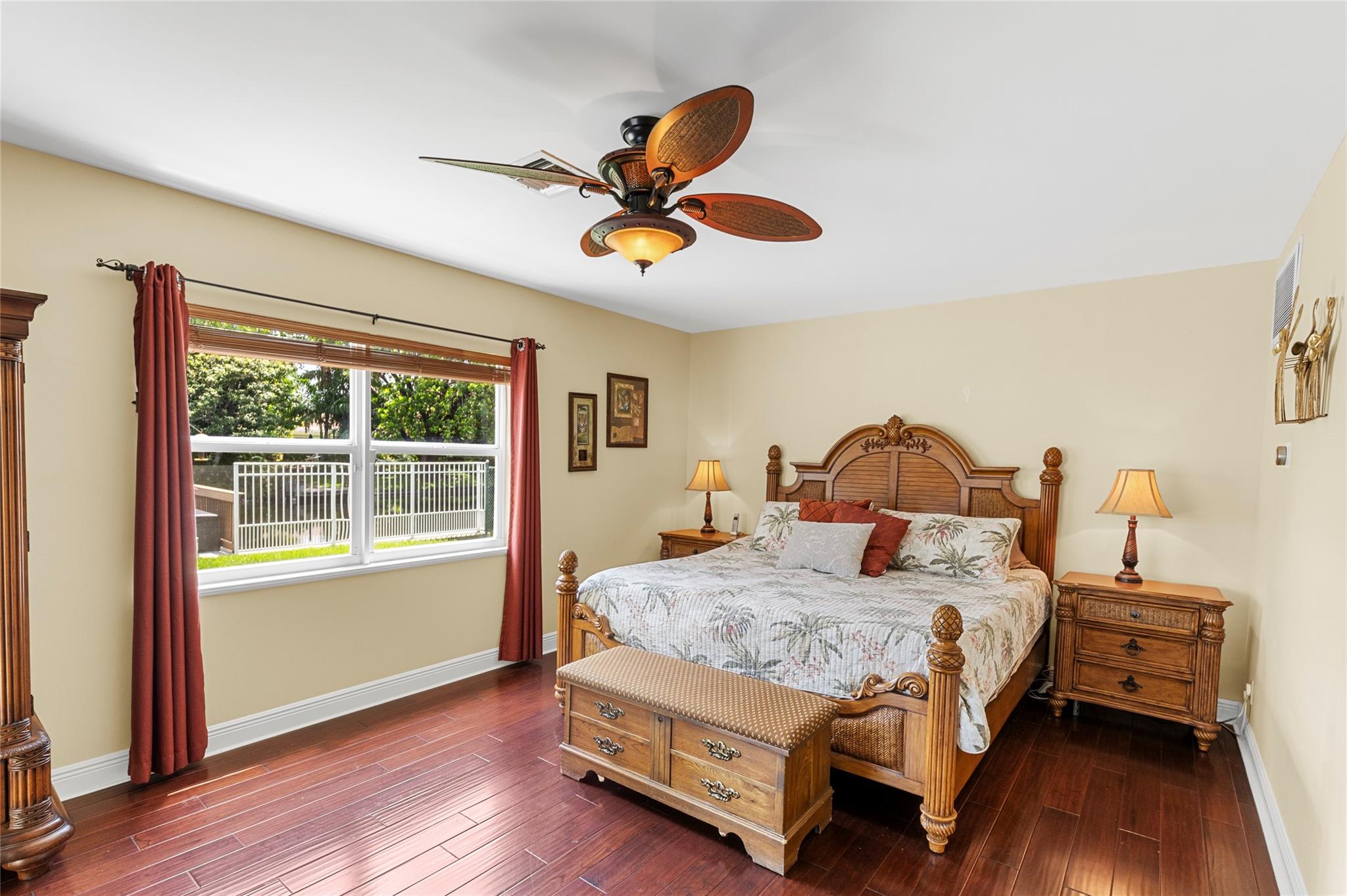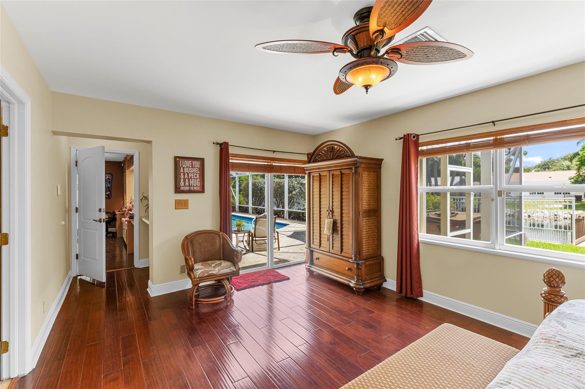 Unique Key West–style waterfront retreat in prestigious Golf Estates. Stunning 5 bedroom, 3 bath home w/Den/6th bedroom + tons of storage. Features double split layout w/2 Primary Suites. Entertain effortlessly w/large living, dining + eat in kitchen, screened salt-water pool-patio, hot tub, cabana baths, expansive covered patio, separate firepit area, + a private dock w/floating extension. Side-yard double gates allow boat/RV parking. Upgrades include metal roof, solar ELECTRIC panels, new solar hot-water heater, all-PVC plumbing, elevated seawall, motion-sensory lighting, hard-wired security cameras, 3 A/C units (includes new 5-ton main unit), canal-fed sprinkler system, septic tank, + complete hurricane protection-impact glass + shutters. Close 2 Schools, Malls, Airport, Beach, Casino+