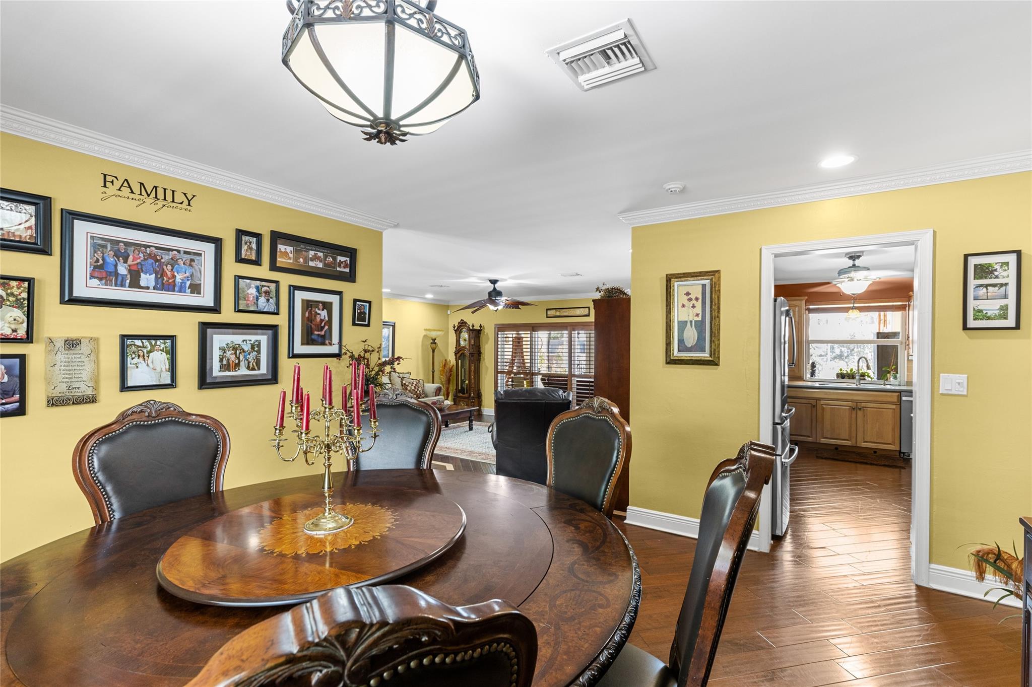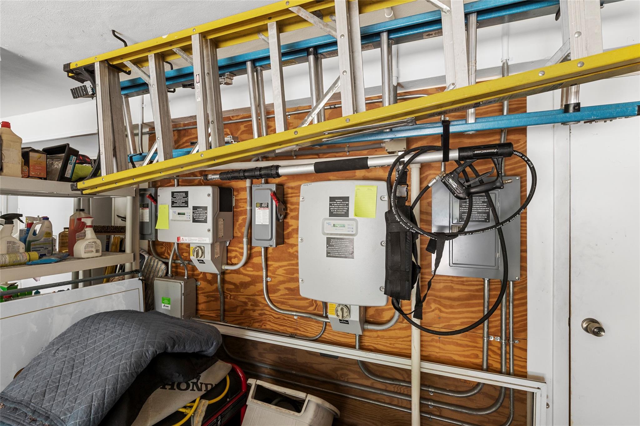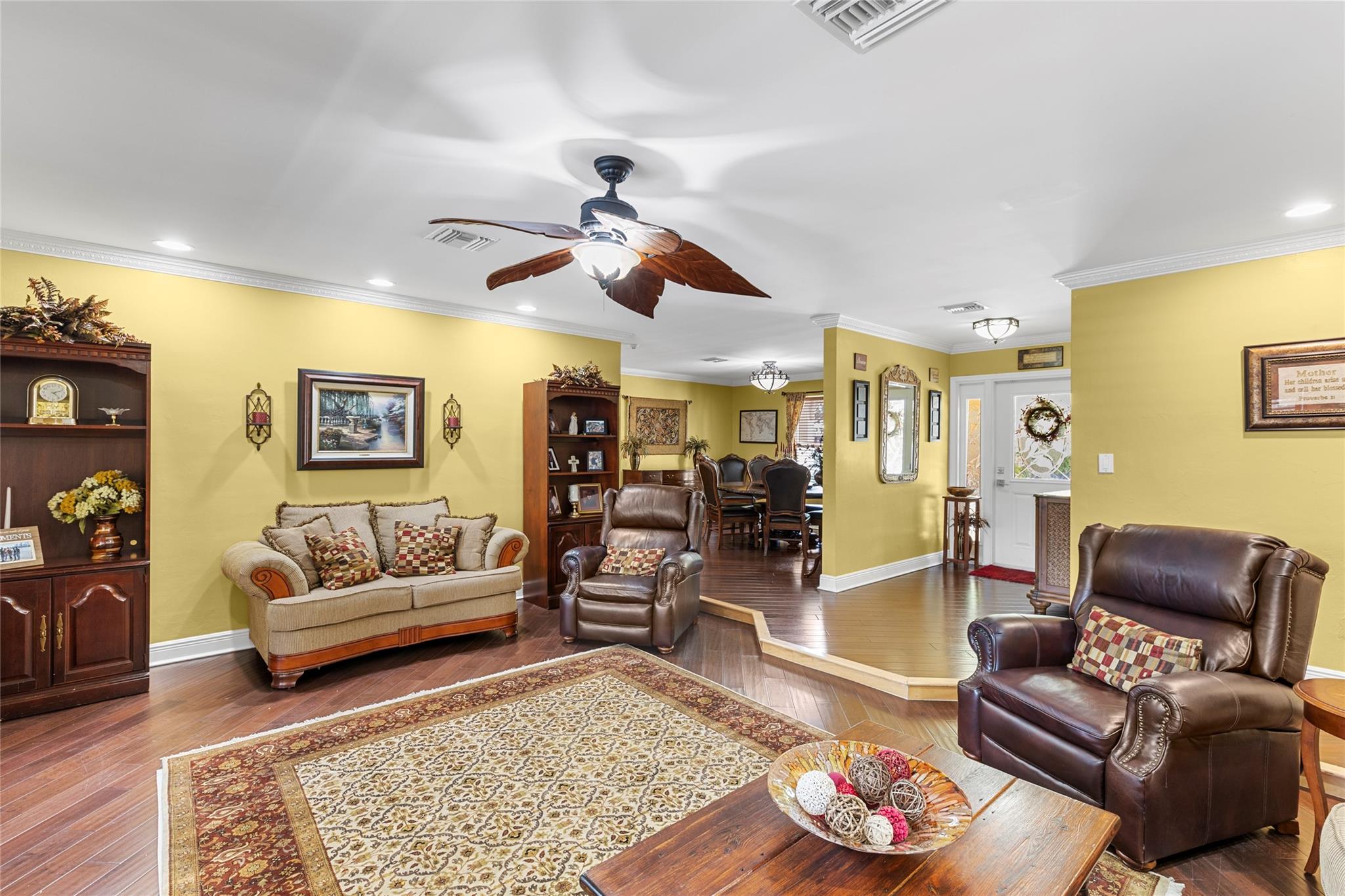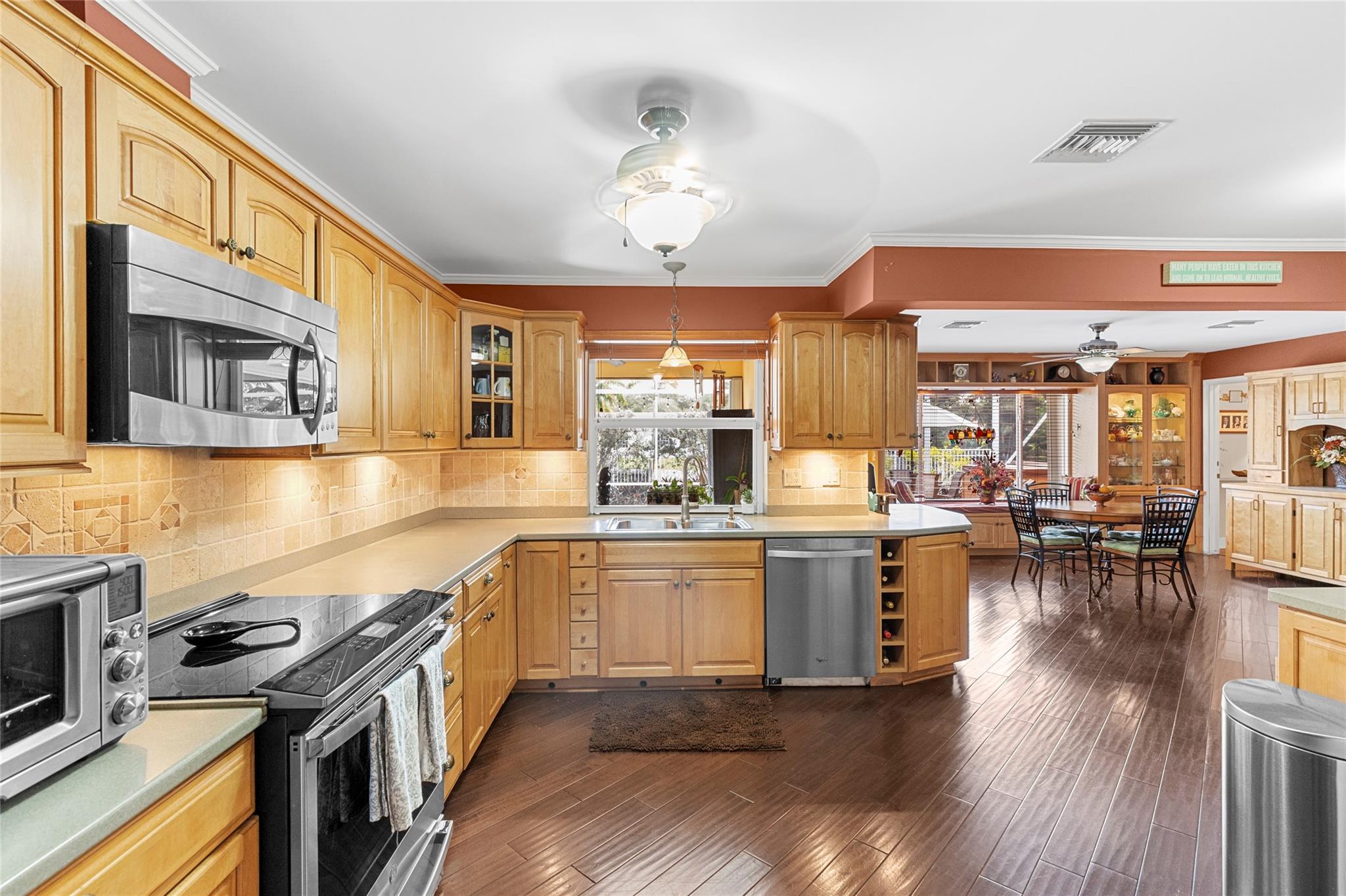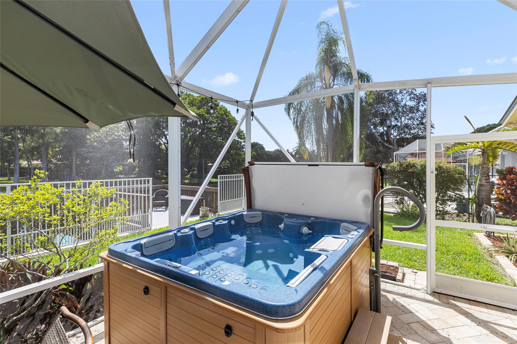 Unique Key West–style waterfront retreat in prestigious Golf Estates. Stunning 5 bedroom, 3 bath home w/Den/6th bedroom + tons of storage. Features double split layout w/2 Primary Suites. Entertain effortlessly w/large living, dining + eat in kitchen, screened salt-water pool-patio, hot tub, cabana baths, expansive covered patio, separate firepit area, + a private dock w/floating extension. Side-yard double gates allow boat/RV parking. Upgrades include metal roof, solar ELECTRIC panels, new solar hot-water heater, all-PVC plumbing, elevated seawall, motion-sensory lighting, hard-wired security cameras, 3 A/C units (includes new 5-ton main unit), canal-fed sprinkler system, septic tank, + complete hurricane protection-impact glass + shutters. Close 2 Schools, Malls, Airport, Beach, Casino+