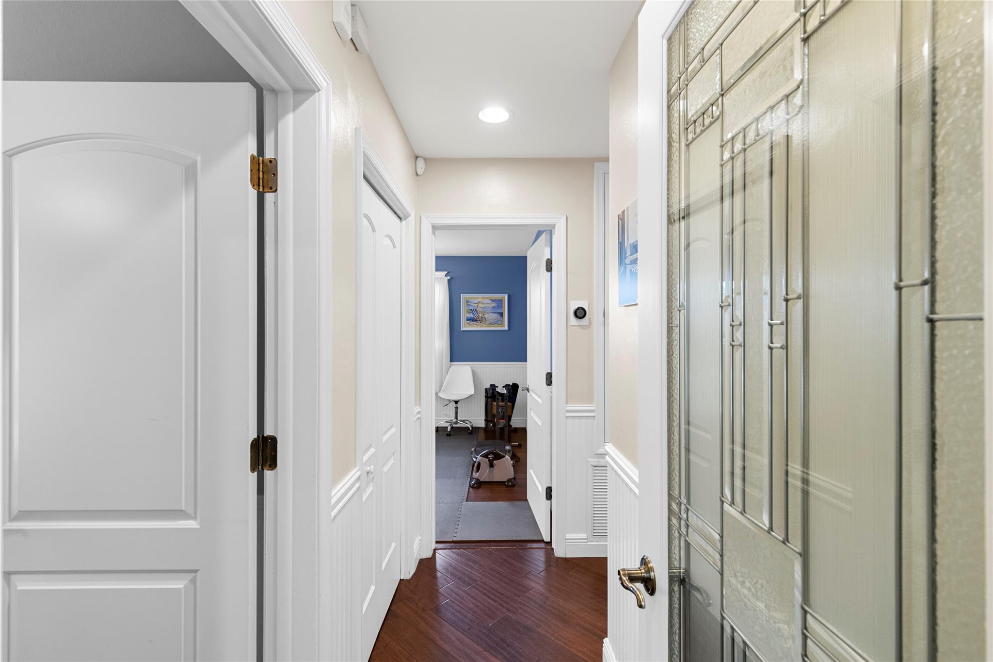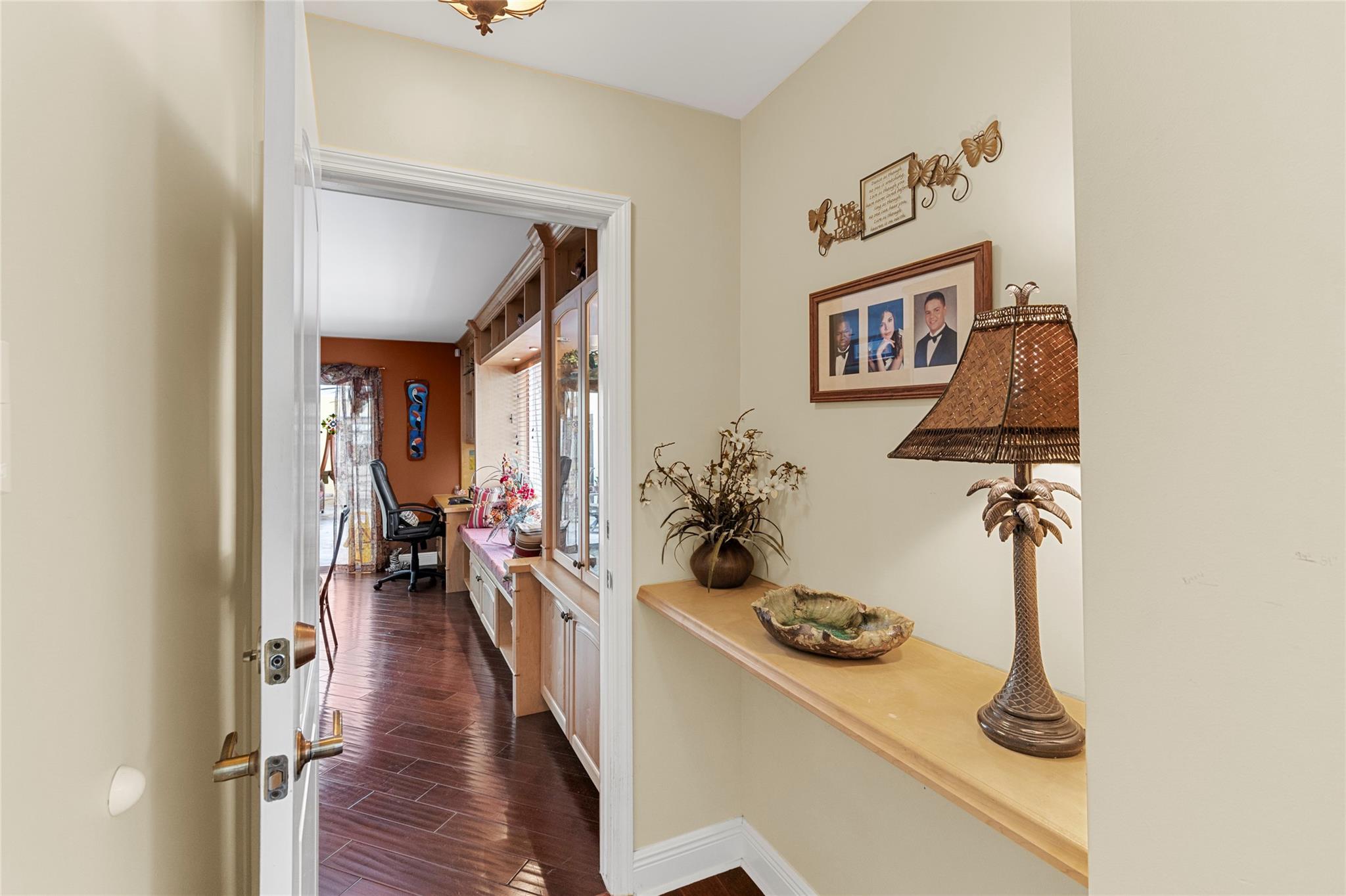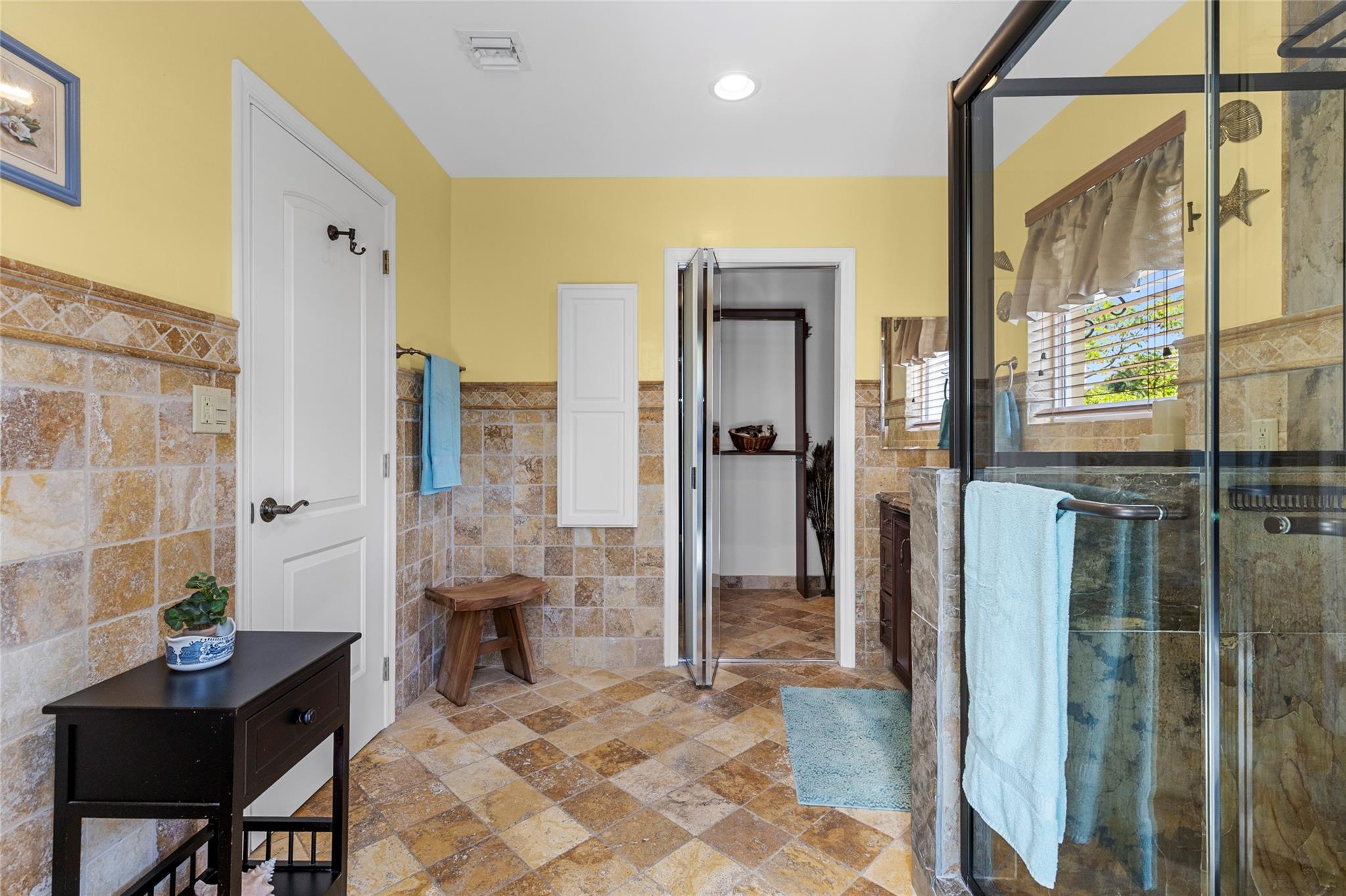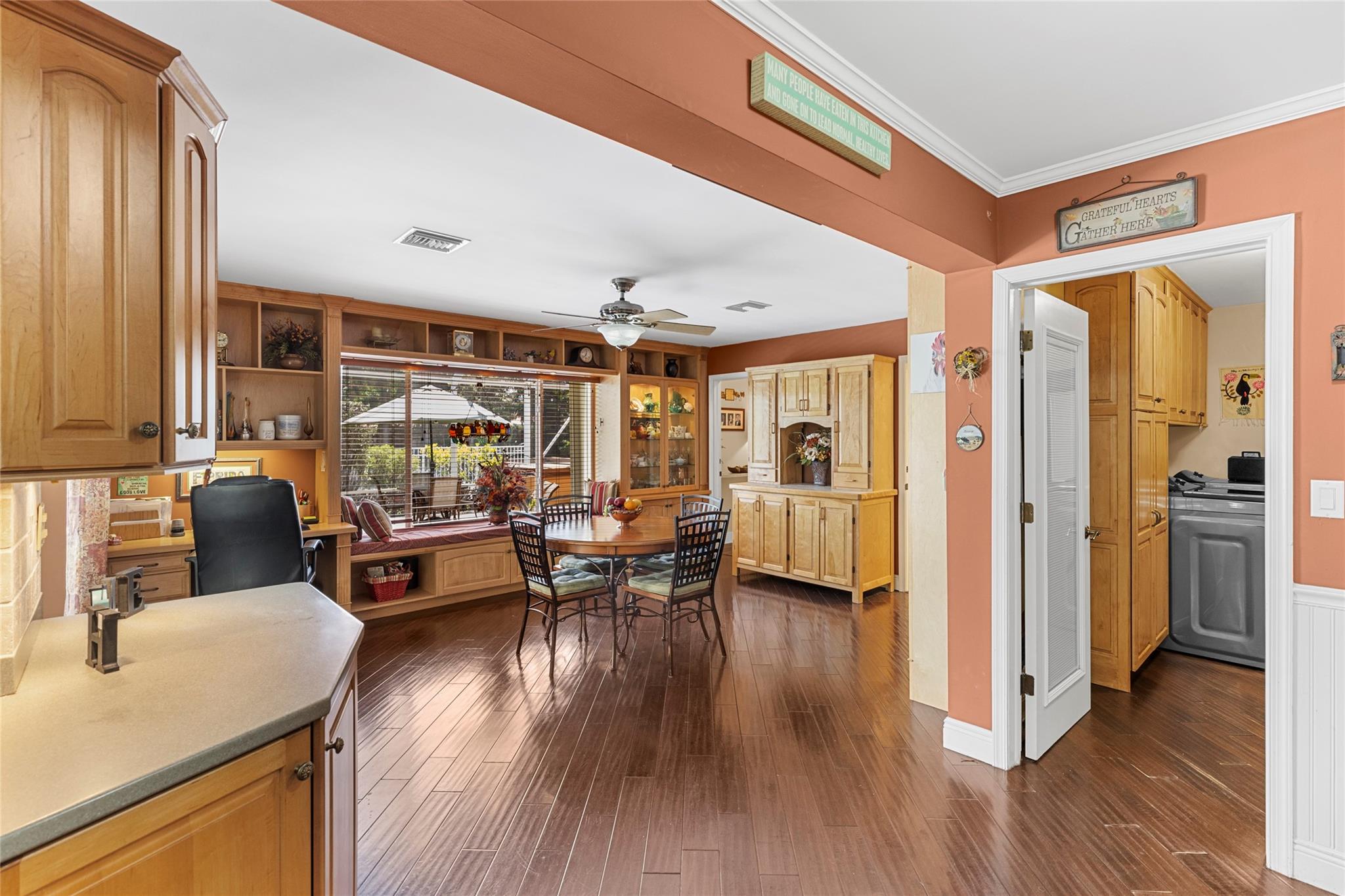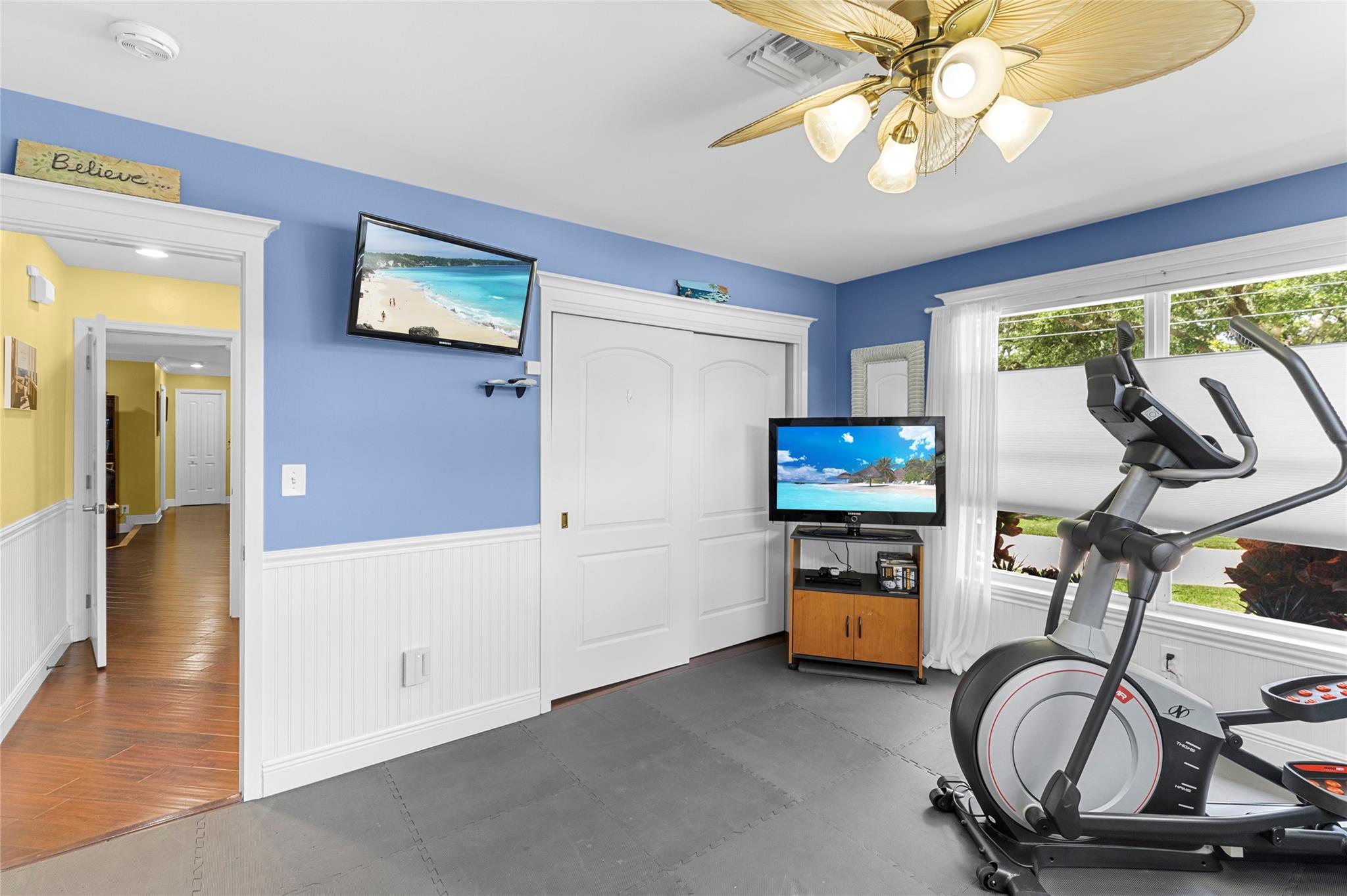 Unique Key West–style waterfront retreat in prestigious Golf Estates. Stunning 5 bedroom, 3 bath home w/Den/6th bedroom + tons of storage. Features double split layout w/2 Primary Suites. Entertain effortlessly w/large living, dining + eat in kitchen, screened salt-water pool-patio, hot tub, cabana baths, expansive covered patio, separate firepit area, + a private dock w/floating extension. Side-yard double gates allow boat/RV parking. Upgrades include metal roof, solar ELECTRIC panels, new solar hot-water heater, all-PVC plumbing, elevated seawall, motion-sensory lighting, hard-wired security cameras, 3 A/C units (includes new 5-ton main unit), canal-fed sprinkler system, septic tank, + complete hurricane protection-impact glass + shutters. Close 2 Schools, Malls, Airport, Beach, Casino+