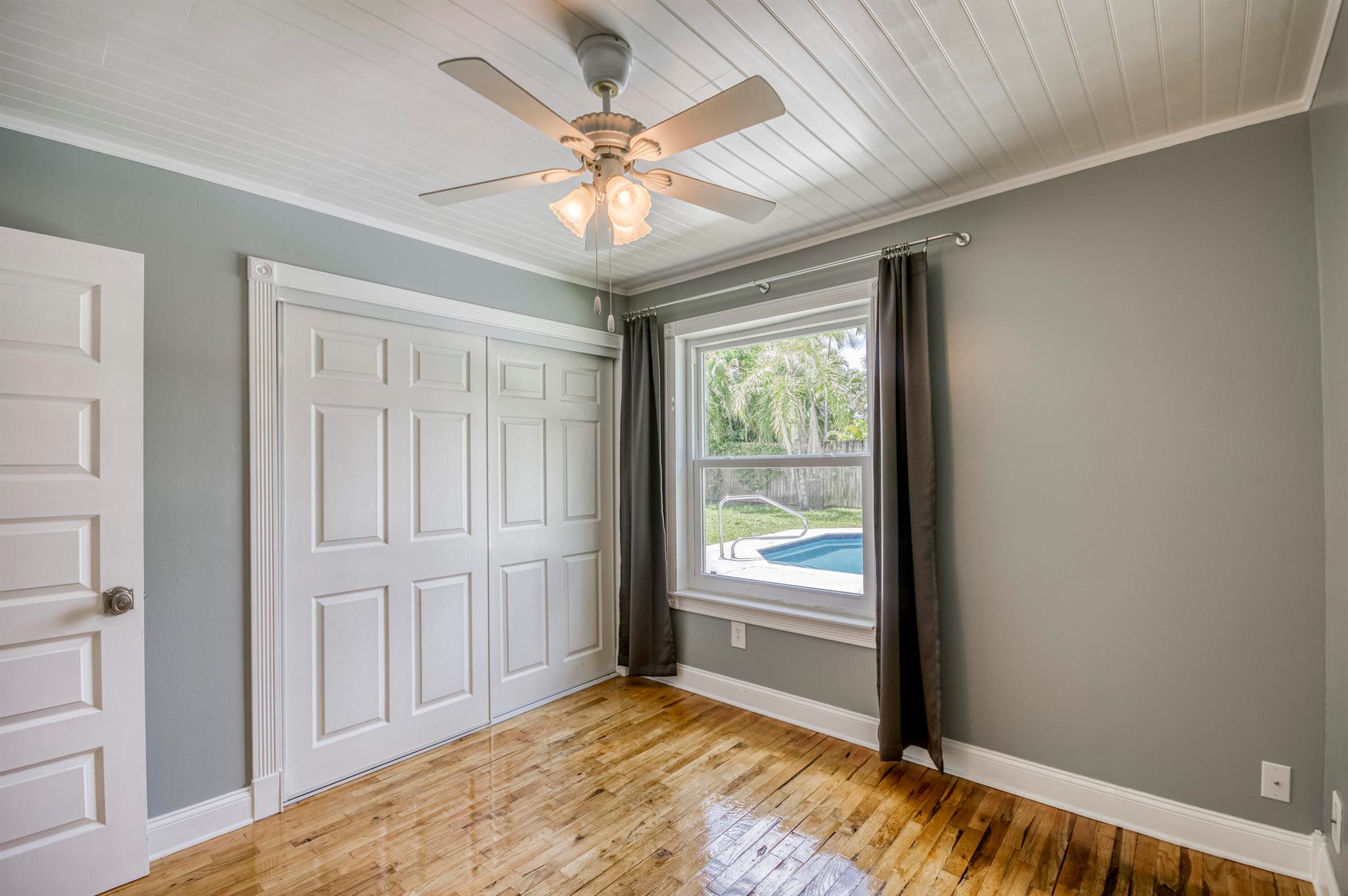 This updated, move-in ready 3-bedroom home in Counterpoint Estates offers charm, comfort, and a private backyard oasis. Featuring an updated kitchen with white cabinetry, stylish backsplash, and vaulted wood-paneled ceilings, plus real wood floors throughout. The bathroom is oversized and newly renovated with elegant tile work and a clean, modern finish. Enjoy the screened-in and covered patio, a private in-ground pool, and a generously sized backyard with green space for kids or pets. A 2016 roof, massive driveway, and one-car garage add to the value and functionality. Located in a quiet, family-friendly community with three parks, walking trails, and lakes with a shared dock, ready for your personal touch, this is a rare find with incredible curb appeal potential. No HOA!