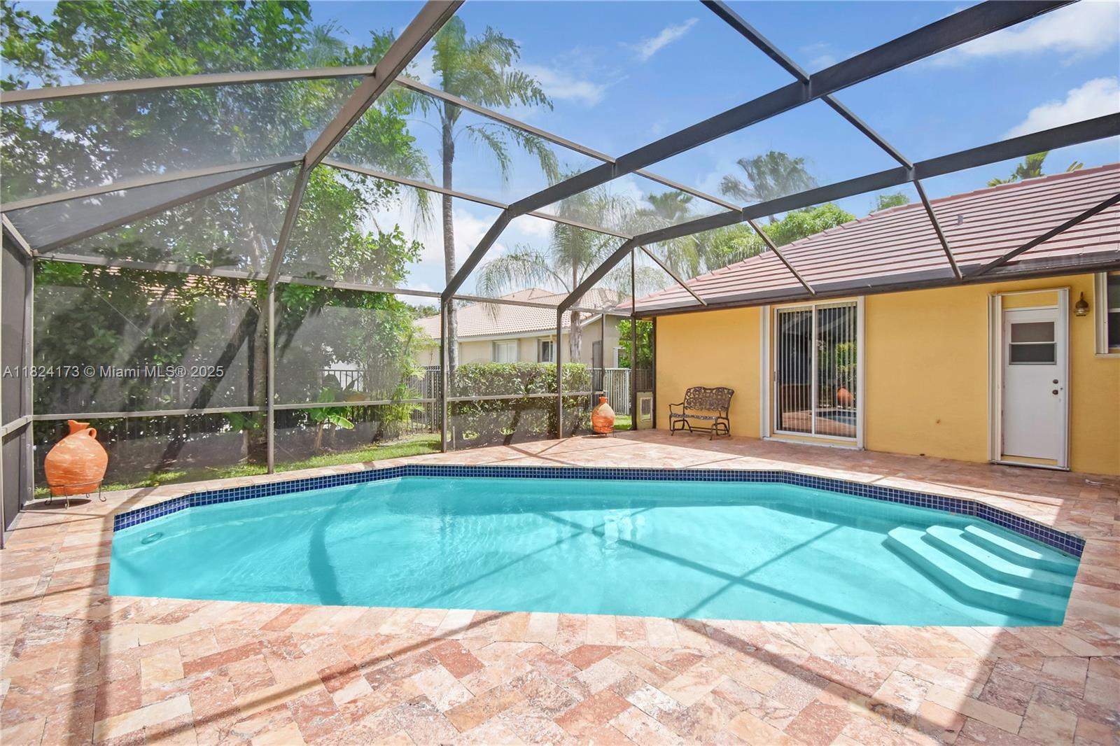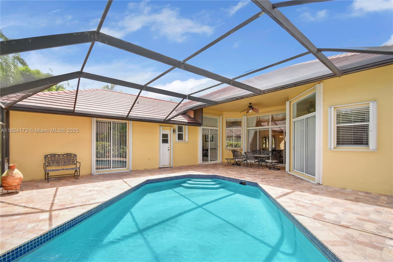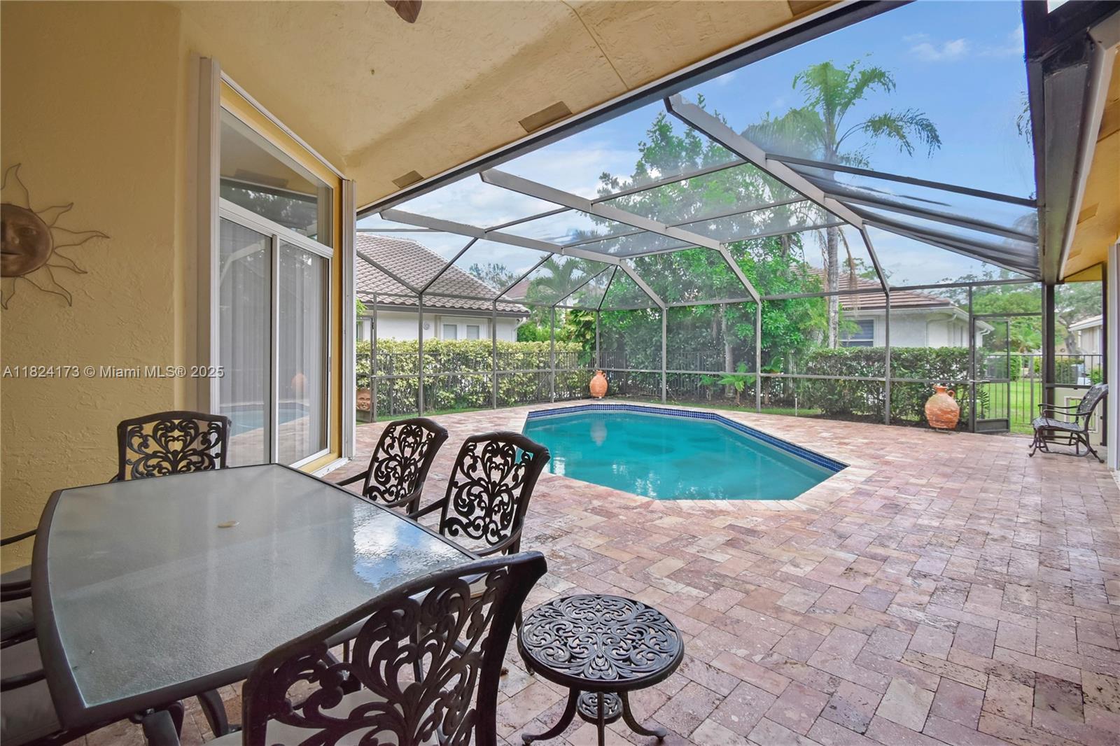 Impeccably maintained one-story home with a screened pool, located in the prestigious gated community of Weston Hills CC. Featuring 5 Bed, 3.5 Baths, and a custom split floor plan, this residence offers 2,566 SF of bright, open living space with soaring ceilings and elegant finishes throughout. Enjoy the screened patio with a sparkling pool and travertine marble deck, including a full cabana bath. With a new roof (2022), newer A/C (2020), accordion shutters, and a paver driveway, this home is move-in ready. Weston Hills CC offers resort-style living and is home to Weston’s premier golf course. Embrace the exclusive Weston lifestyle, just moments from A+ schools, upscale dining, luxury shopping, parks, and South Florida’s beautiful beaches.