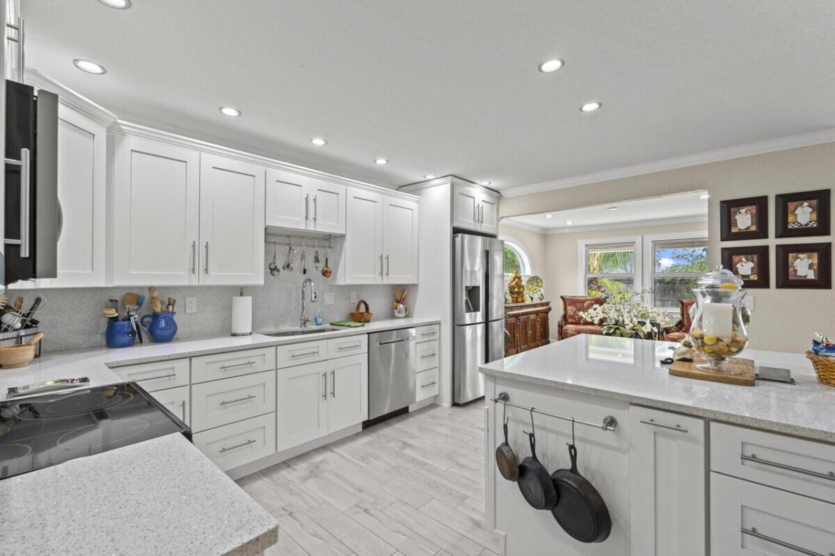 Nicest Golf Course Pool Home in SandpiperNEWLY RESURFACED POOL | 2,519 Sq Ft | Golf Course Views | Two Primary Suites | Impact Glass | NO HOAWelcome to the finest golf course home in Sandpiper Bay--a must-see tropical retreat perfectly positioned on the 6th hole of The Saints Golf Course with unmatched upgrades, privacy, and location.-This beautifully upgraded 3-bedroom, 3-bath pool home offers 2,519 sq ft of living space on a fully fenced 0.34-acre lot, with lush tropical landscaping and serene golf course frontage--all with no HOA restrictions.- Interior Highlights:Two spacious primary suites - ideal for multi-generational living or hosting guests.Chef's kitchen featuring custom cabinetry, quartz countertops, designer fixtures, premium appliances, and