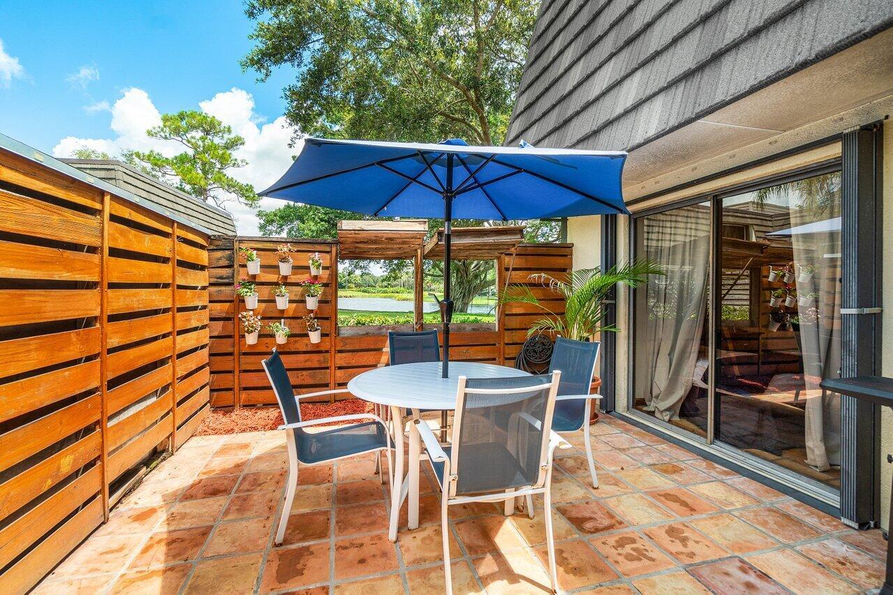 This Glenwood 3 bedroom 3 bath townhome has one of the best locations in all of Glenwood, nestled along the wide lake with huge shady banyan trees and spacious green areas for quiet relaxation to enjoy your morning coffee from the screened patio. Easy and fast access to PGA Blvd situated on 1st Terrace with deeded parking spot right at front door! Both bedrooms have their own balcony with lake and fountain views. Glenwood Townhomes amenities include racquetball court, pickle ball court, tennis courts, swimming pool, jogging trail and park. Excellent opportunity to own in PGA National with serene water views and location far from turnpike noise and walking distance to amenities and PGA Resort! Brand new mansard roof paid for by seller! Accordian Hurricane Shutters on ALL windows/doors.