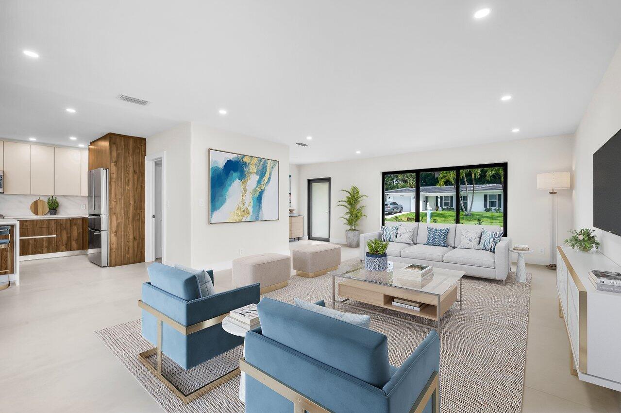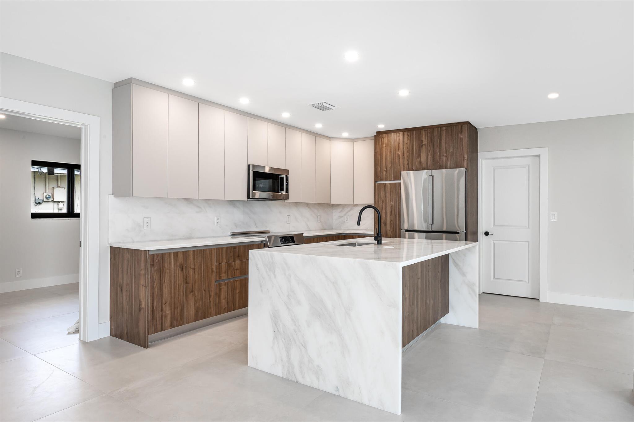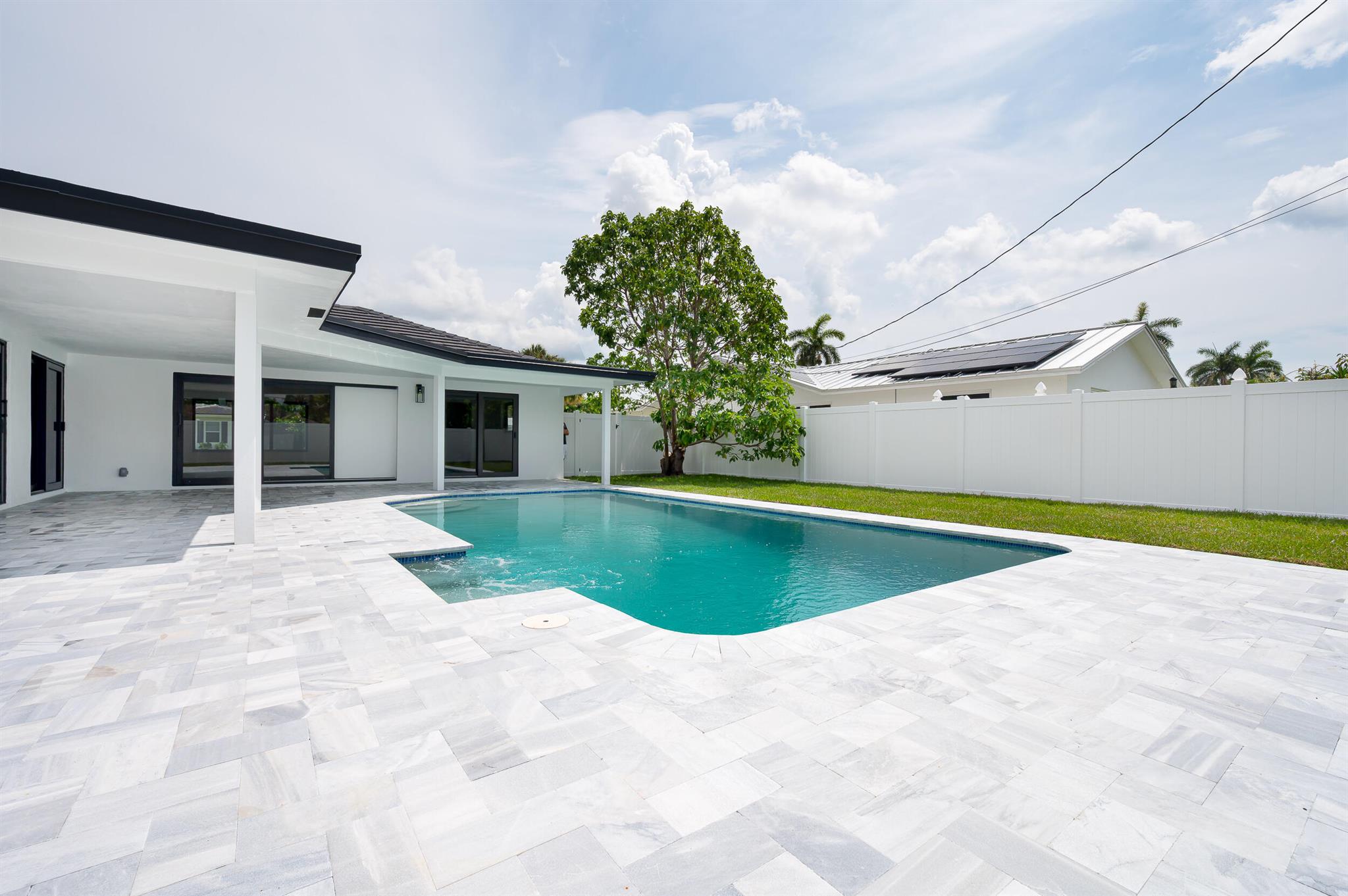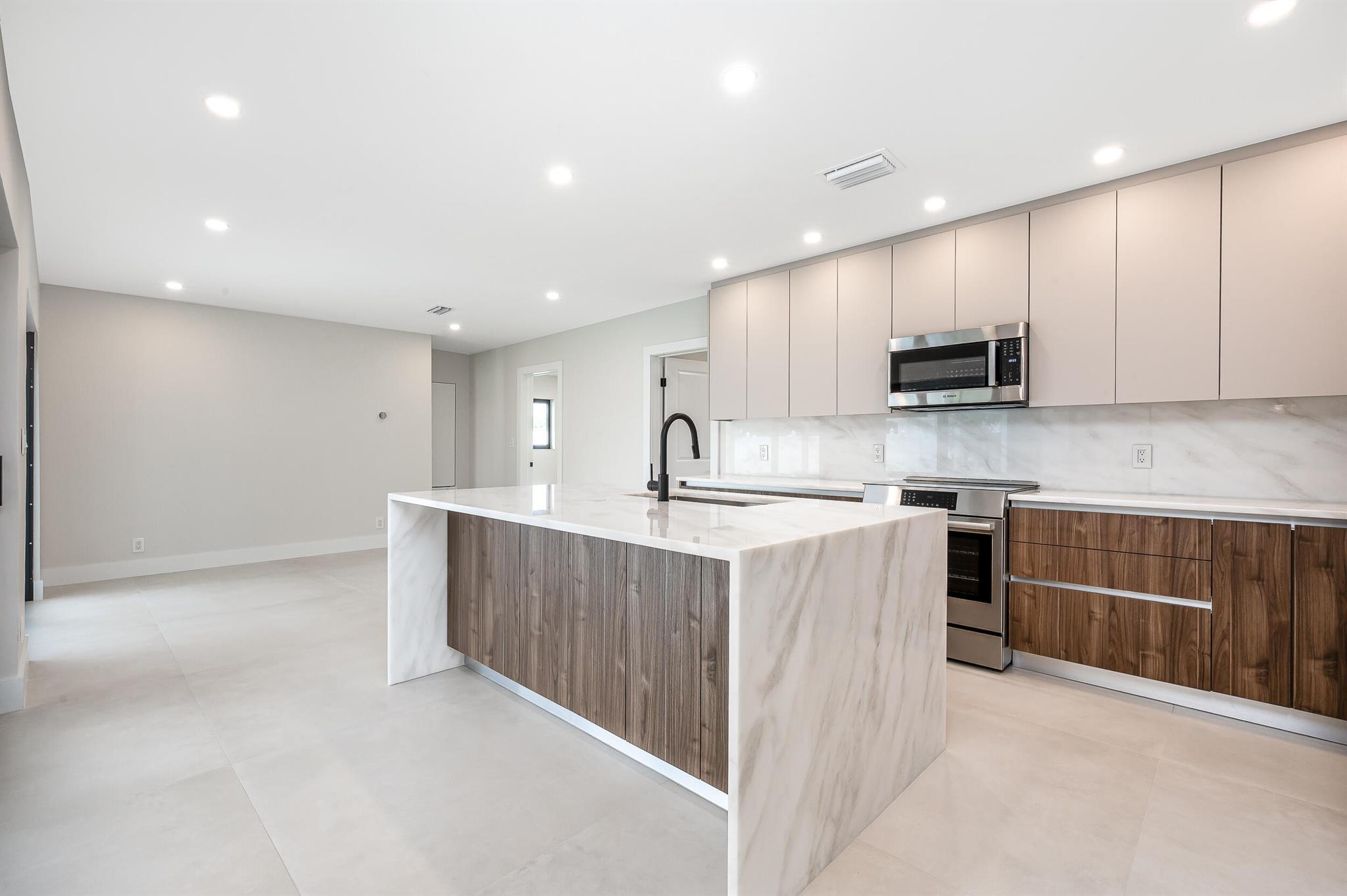 BRAND NEW and Completely Renovated, Never Lived In this stunning home in the desirable East Boca Raton community of Boca Square. This fully upgraded three bedroom, two full bathroom residence boasts 2,602 total square feet. An abundance of natural light flows through this open floor plan. The entire home has been upgraded. Brand new roof, new hurricane impact windows and doors throughout, new air conditioning with brand new AC ducts throughout, new PVC drainage (No Cast Iron), new insulated hot and cold water lines, new electrical throughout, new sod and irrigation system. Upgraded Porcelain 48X48 tile floors throughout, brand new Italian kitchen cabinetry with new Bosch kitchen appliances and match booked marble stone countertops with a large kitchen island with waterfall edge. All