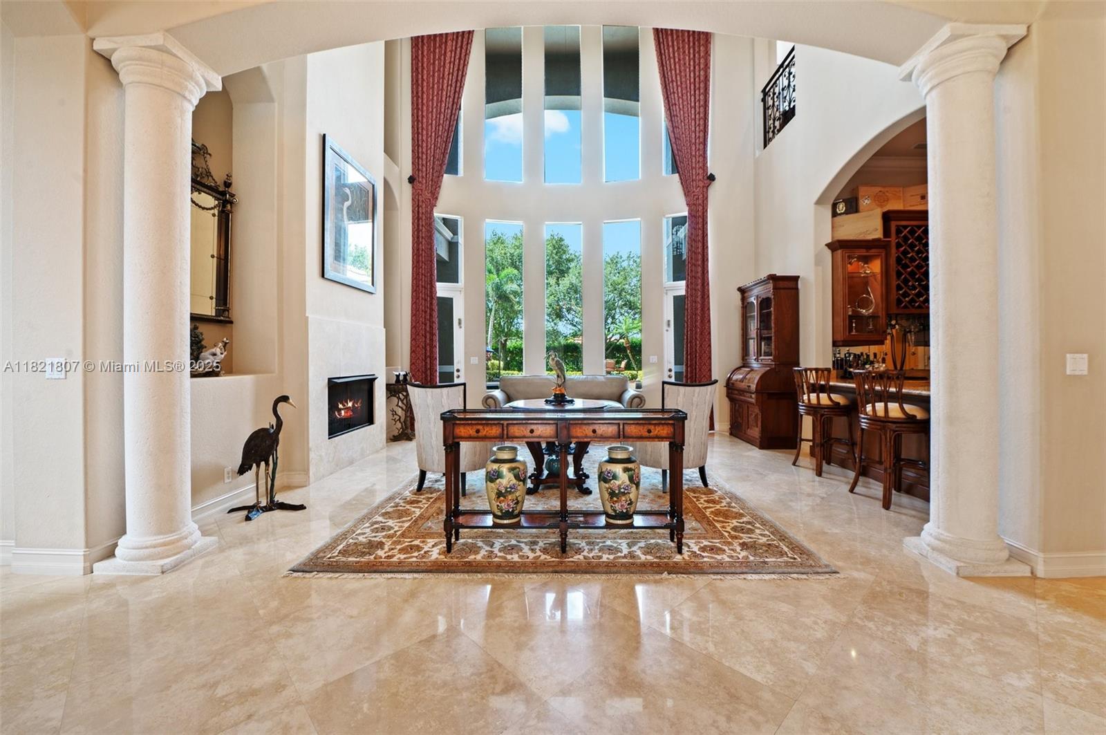 Spectacular Living at a new Price!Step into timeless sophistication in this exquisite Mediterranean estate with 6 en-suite bedrooms,2.5-baths+office, located in the prestigious gated enclave of Stonebrook Estates. Boasting over 6,400 SqFt of impeccably designed interior space, blending classic architecture with modern luxury. Freshly painted exterior, all-impact windows inside except bay window breakfast area.Interior features marble and wood flooring, soaring ceilings, custom architectural details throughout. This beautiful home has a built-in wet bar, lavish gourmet kitchen, spacious cooking island, and walk-in pantry. Private backyard and a generous lot offers the ultimate in resort-style living, featuring lush landscaping, pool & heated spa, a fully equipped outdoor kitchen Exceptional