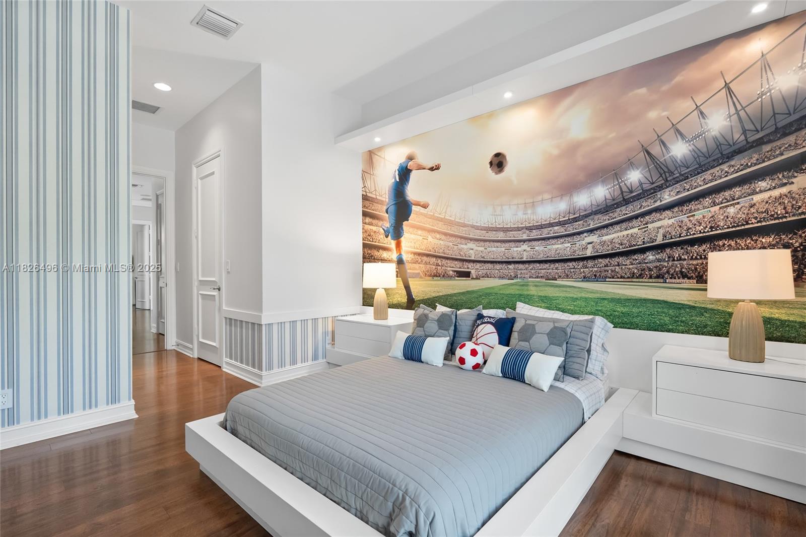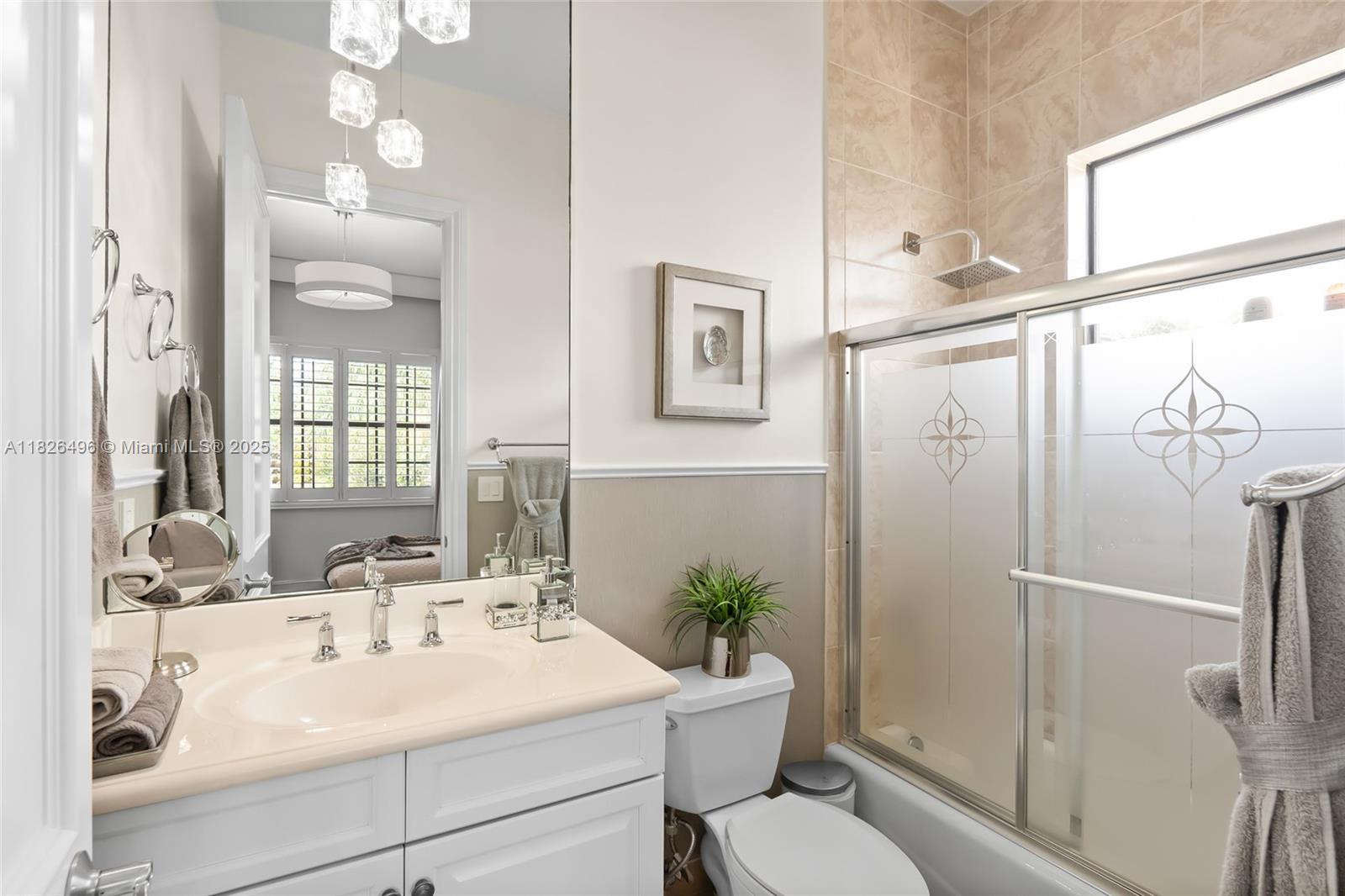 Welcome to this elegant 5 bedrooms, 4 bathroom with 1 half bath and an office, beautiful home, located in the delightful well kept gated community of The Oaks At Boca Raton. This expansive residence blends timeless elegance with modern comfort, showcasing an open-concept layout, soaring ceilings, and upscale finishes throughout. The kitchen features premium stainless appliances, granite countertops and a generous island perfect for entertaining. The spacious family room flows effortlessly to the oversized automated screen covered patio, where you enjoy a peaceful view of the blue water of the pool and garden offering a true backyard escape. The luxurious primary suite offers a tray ceilings, dual walk-in closets, and a spa-like bathroom with double vanities and an oversized walk-in shower.
