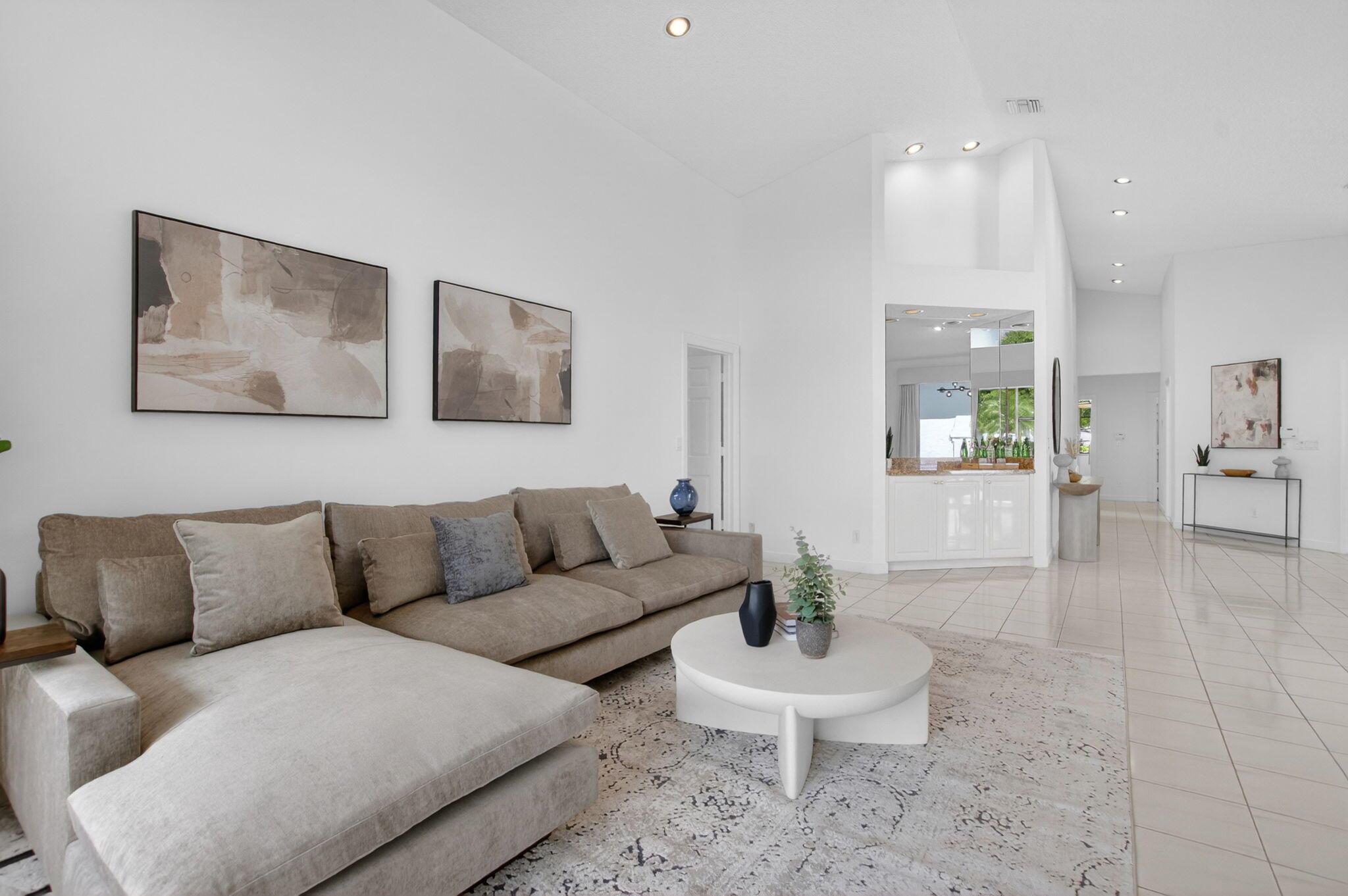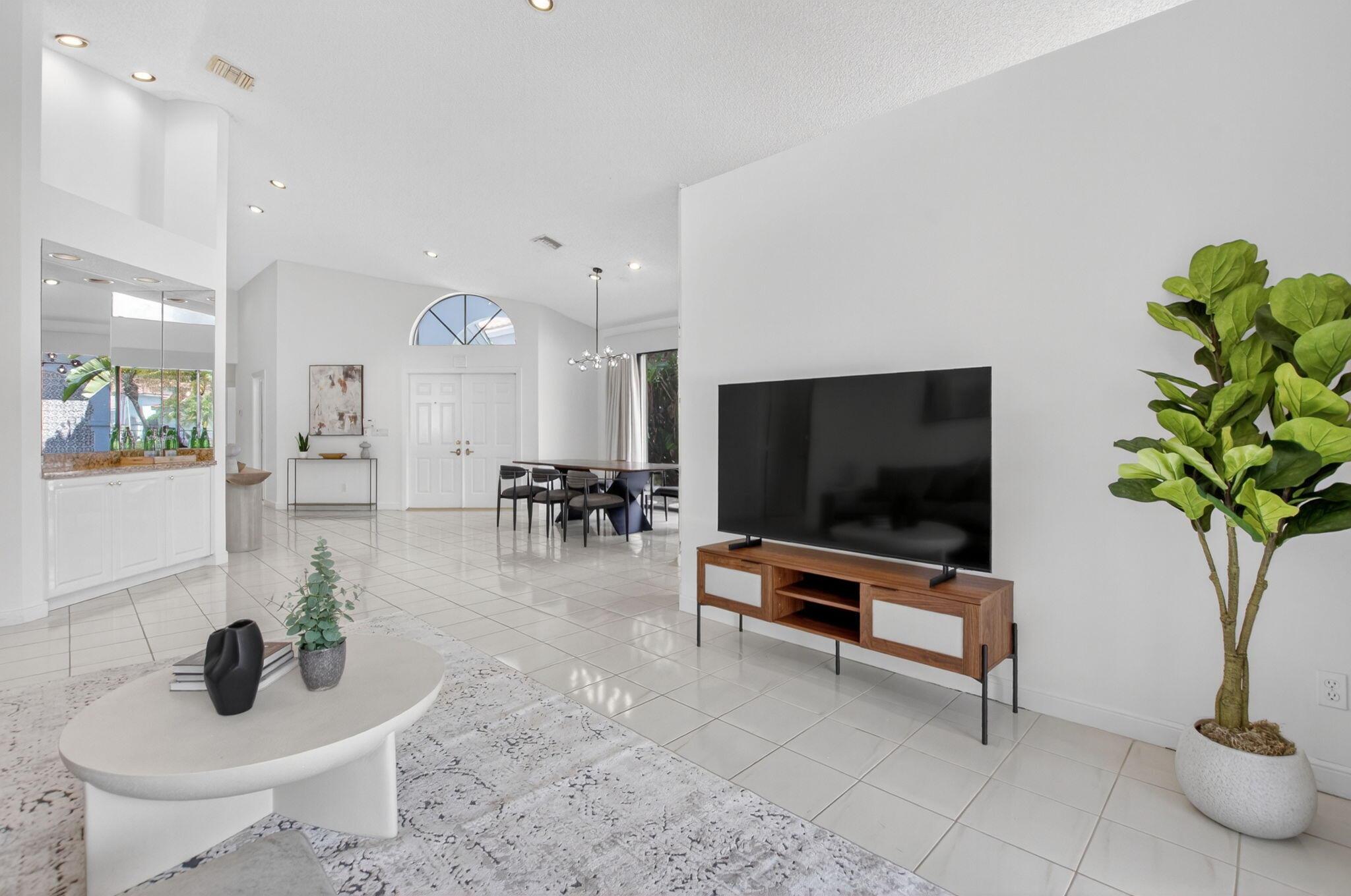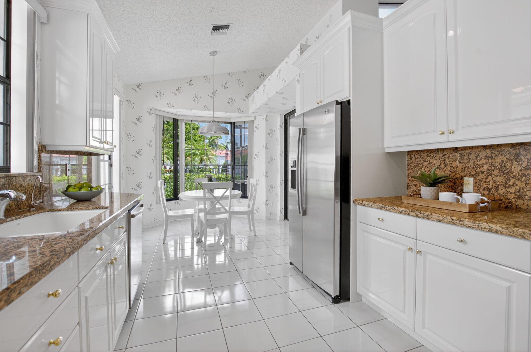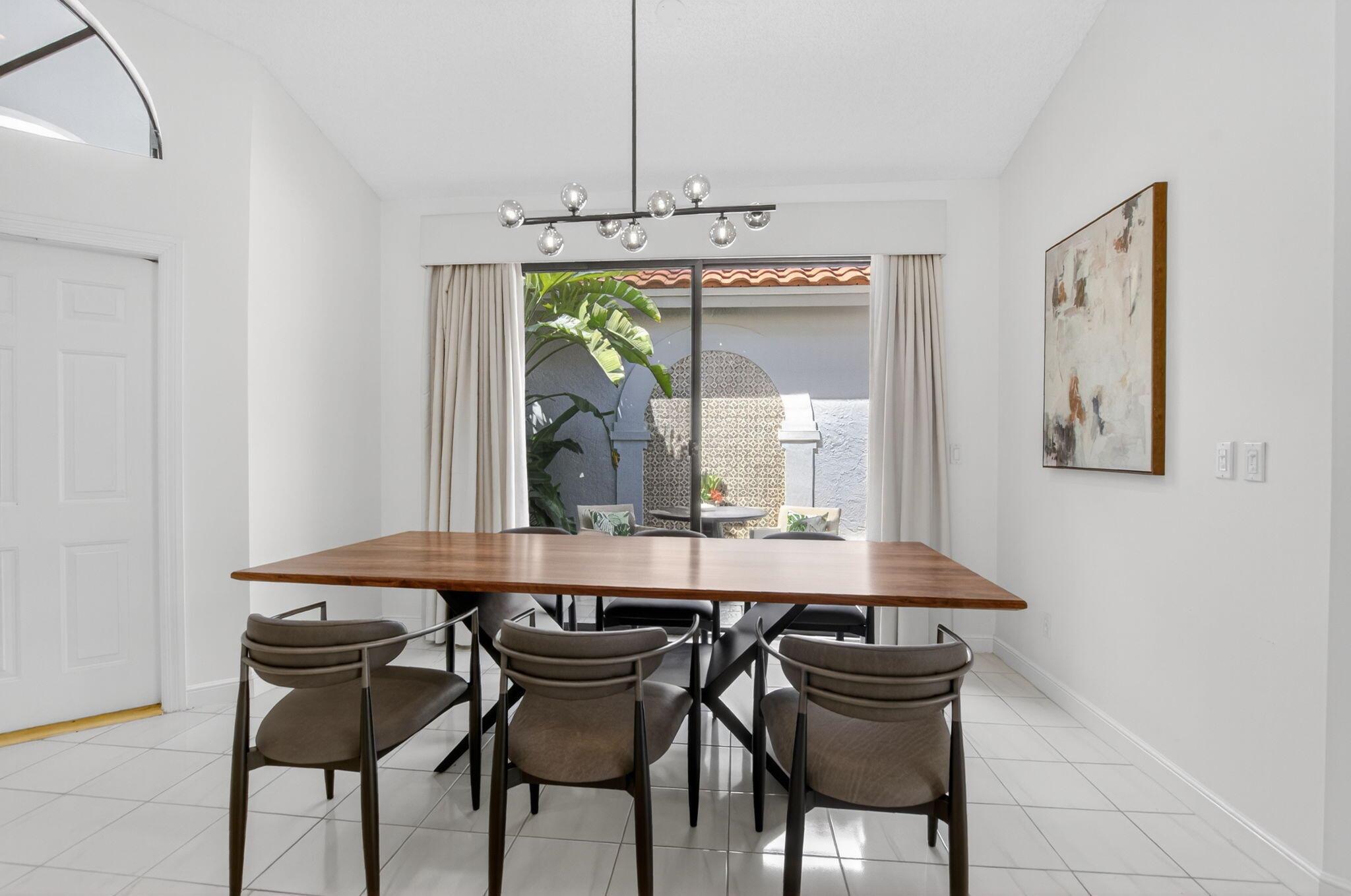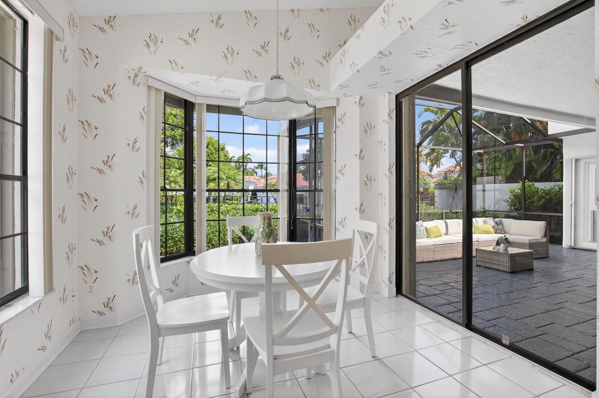 Charming light-filled single family home offering 3 real bedrooms with 2.5 baths. 2300 Sf. Located in BROKEN SOUND COUNTRY CLUB which is a Mandatory Membership Club. ''A rated School District. Expansive living room features soaring ceilings and double height windows and doors that open to a 500 sf screened in patio surrounded by mature greenery. The spacious eat-in-kitchen is nestled within a large bay window area that floods the space with light and garden views. A separate large dining area offers direct access to a second outdoor patio.The split bedroom layout ensures privacy for all. The oversized primary suite is set apart on one side of the home and includes a large walk in closet and a nice sized second closet. There is an oversized primary bathroom.