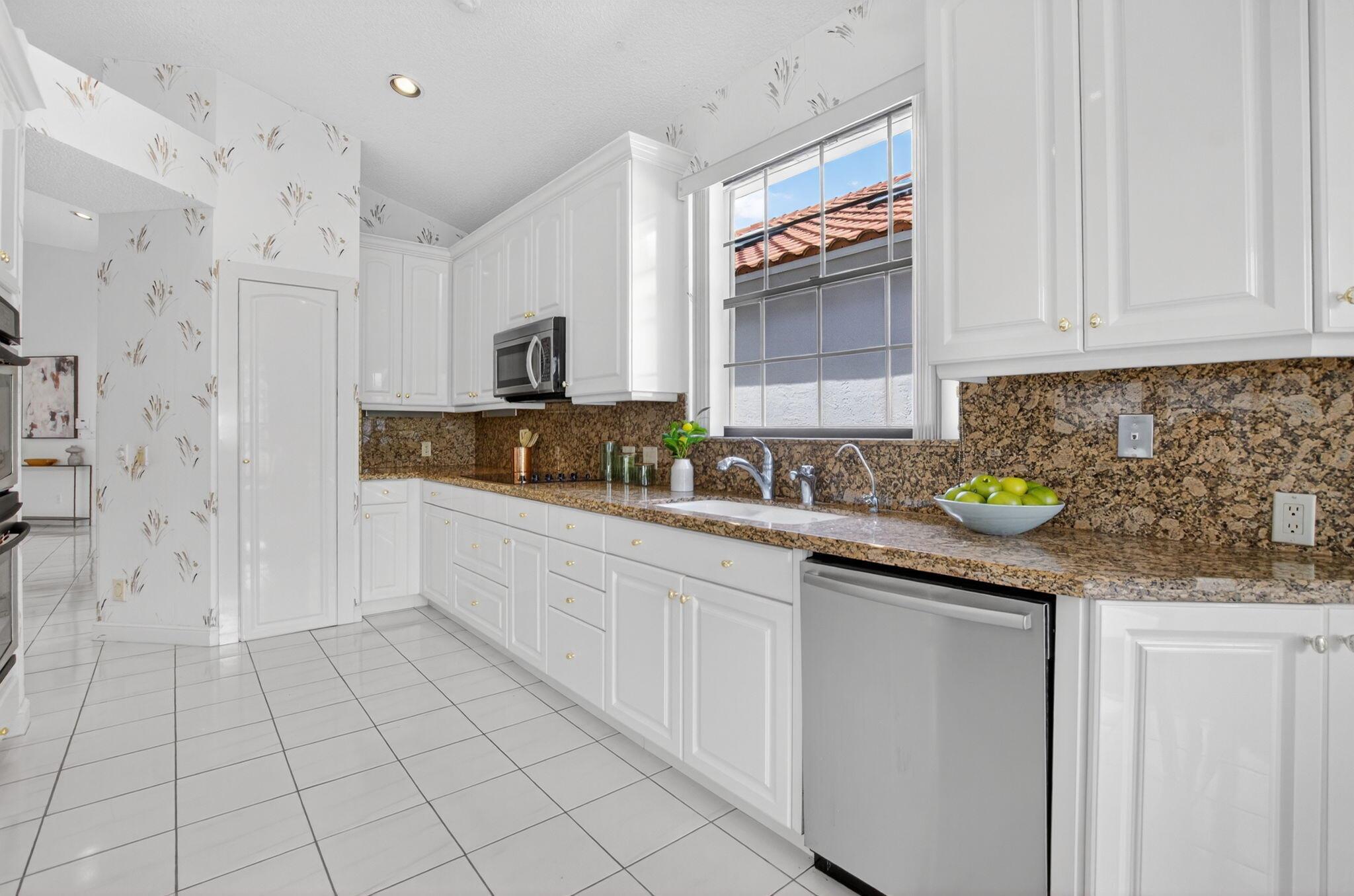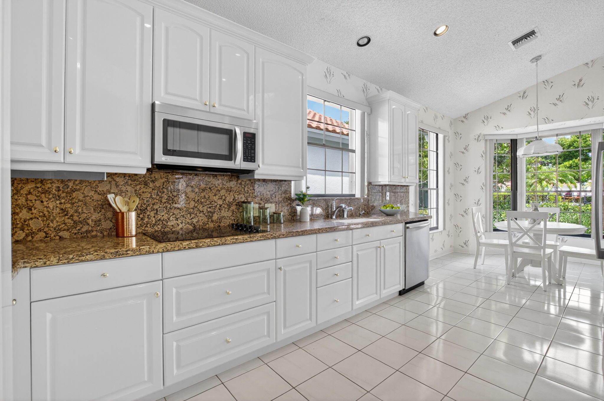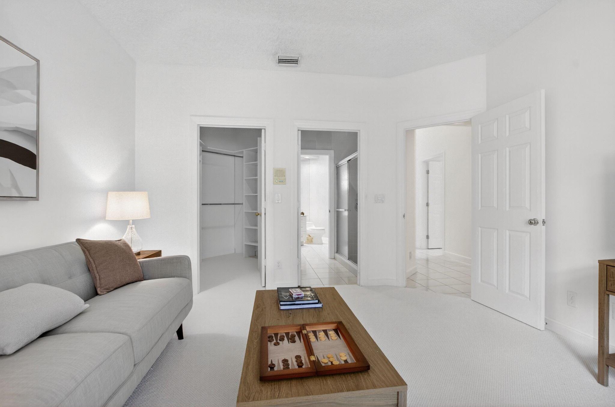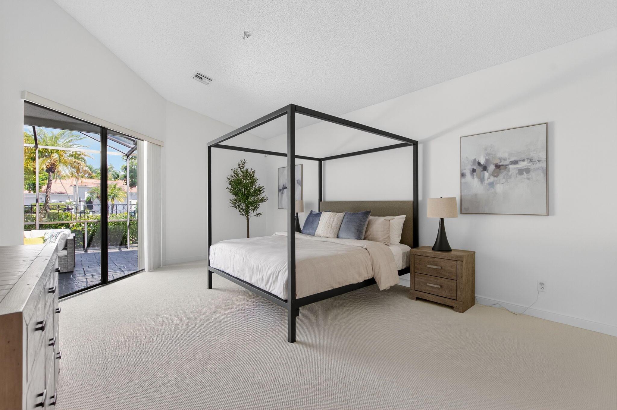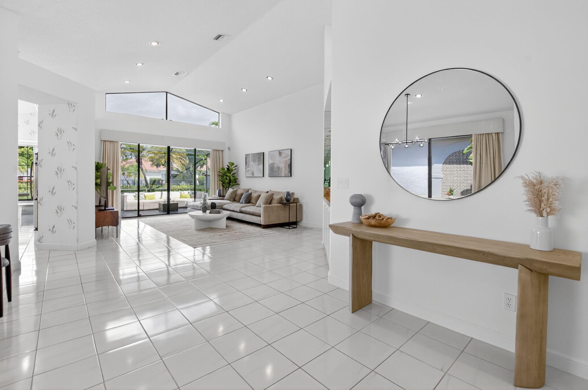 Charming light-filled single family home offering 3 real bedrooms with 2.5 baths. 2300 Sf. Located in BROKEN SOUND COUNTRY CLUB which is a Mandatory Membership Club. ''A rated School District. Expansive living room features soaring ceilings and double height windows and doors that open to a 500 sf screened in patio surrounded by mature greenery. The spacious eat-in-kitchen is nestled within a large bay window area that floods the space with light and garden views. A separate large dining area offers direct access to a second outdoor patio.The split bedroom layout ensures privacy for all. The oversized primary suite is set apart on one side of the home and includes a large walk in closet and a nice sized second closet. There is an oversized primary bathroom.