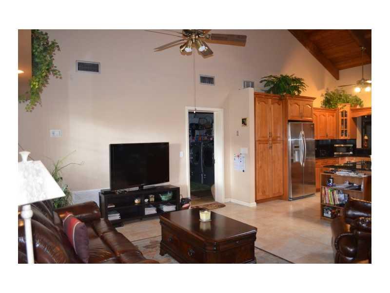 Huge freeform pool, accordion hurricane shutters, stone fireplace, wood beamed ceiling in social areas, open floor plan all featured in this updated one story. Neutral paint, neutral tiled social areas, carpeted bedrms. Kitchen w/raised cabinet drs, SS ap pl, granite counters & backsplash, center island with stove top. Huge family rm w/French doors, formal LR & DR. Master w/adj bath. Large private lot. New A/C 2014.