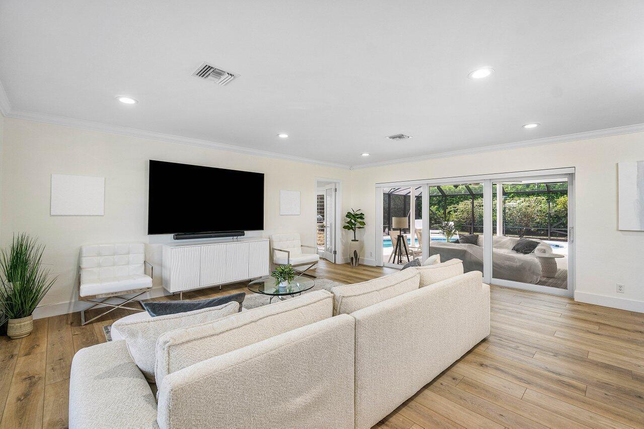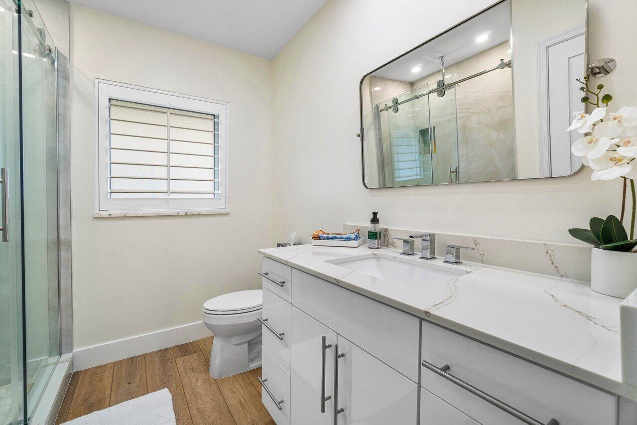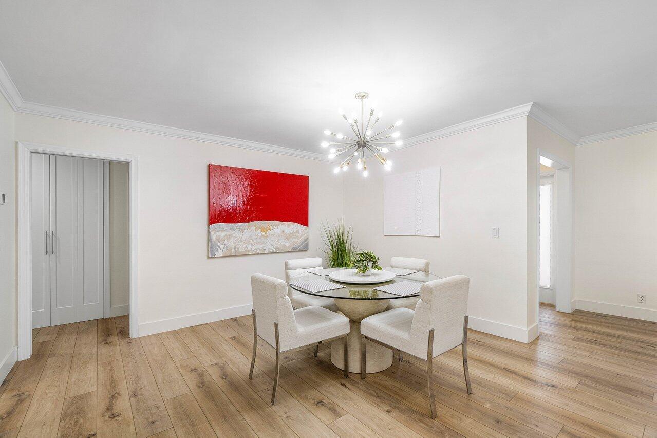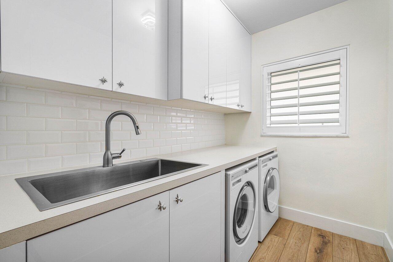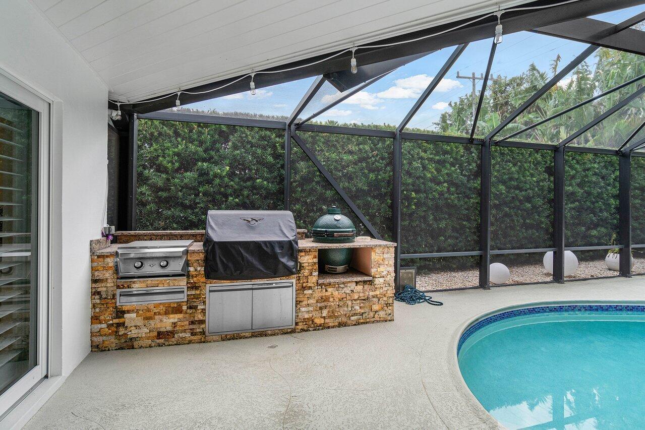 Welcome to this beautifully renovated mid-century modern gem, nestled in the highly sought-after Camino Gardens community of East Boca Raton. Thoughtfully designed and impeccably maintained, this home features a desirable split-bedroom floor plan and offers the perfect blend of timeless character and modern elegance. The light-filled interior includes a spacious great room, formal dining area, cozy breakfast nook, and an interior utility room equipped with a premium Asko washer and dryer. The chef's kitchen is a true showpiece, featuring white quartz countertops, Big Chill appliances including an induction cooktop, custom cabinetry, a sleek glass backsplash, and designer lighting that adds both function and flair. Peace of mind comes standard with full HURRICANE protection, including