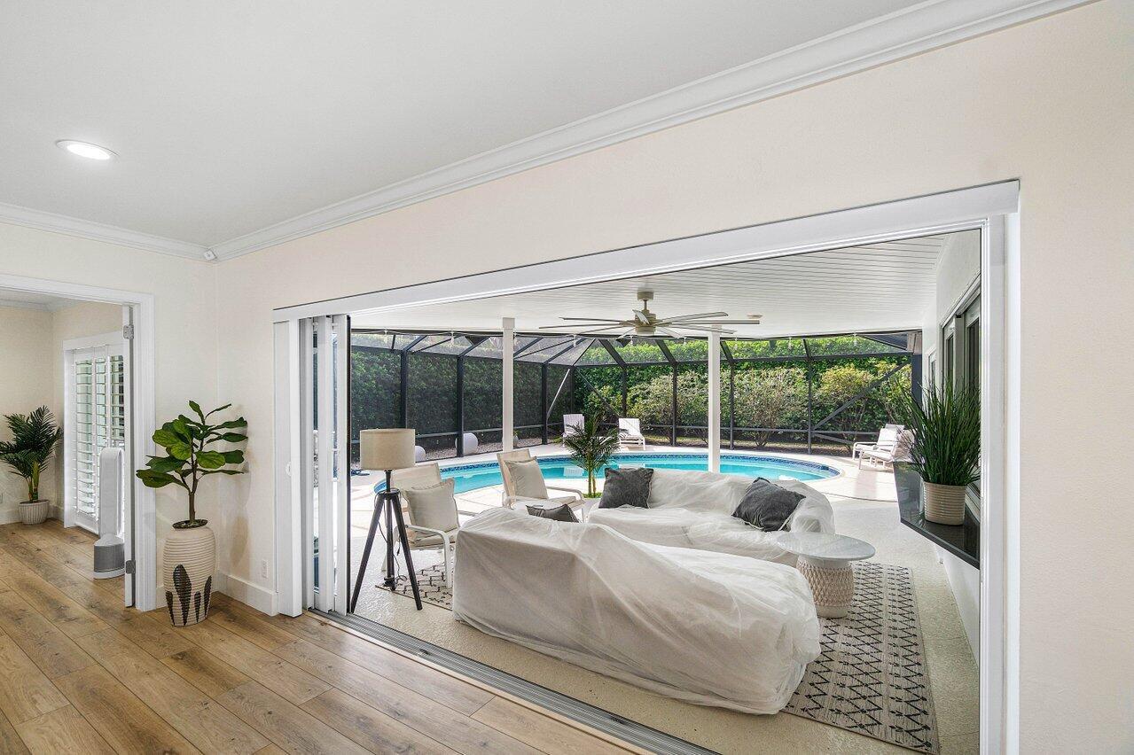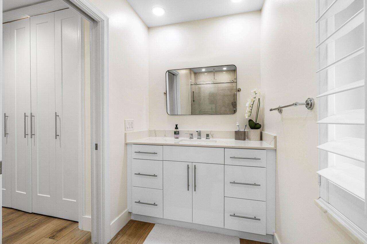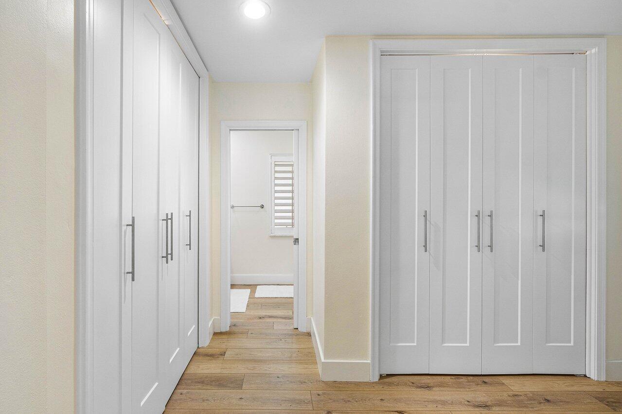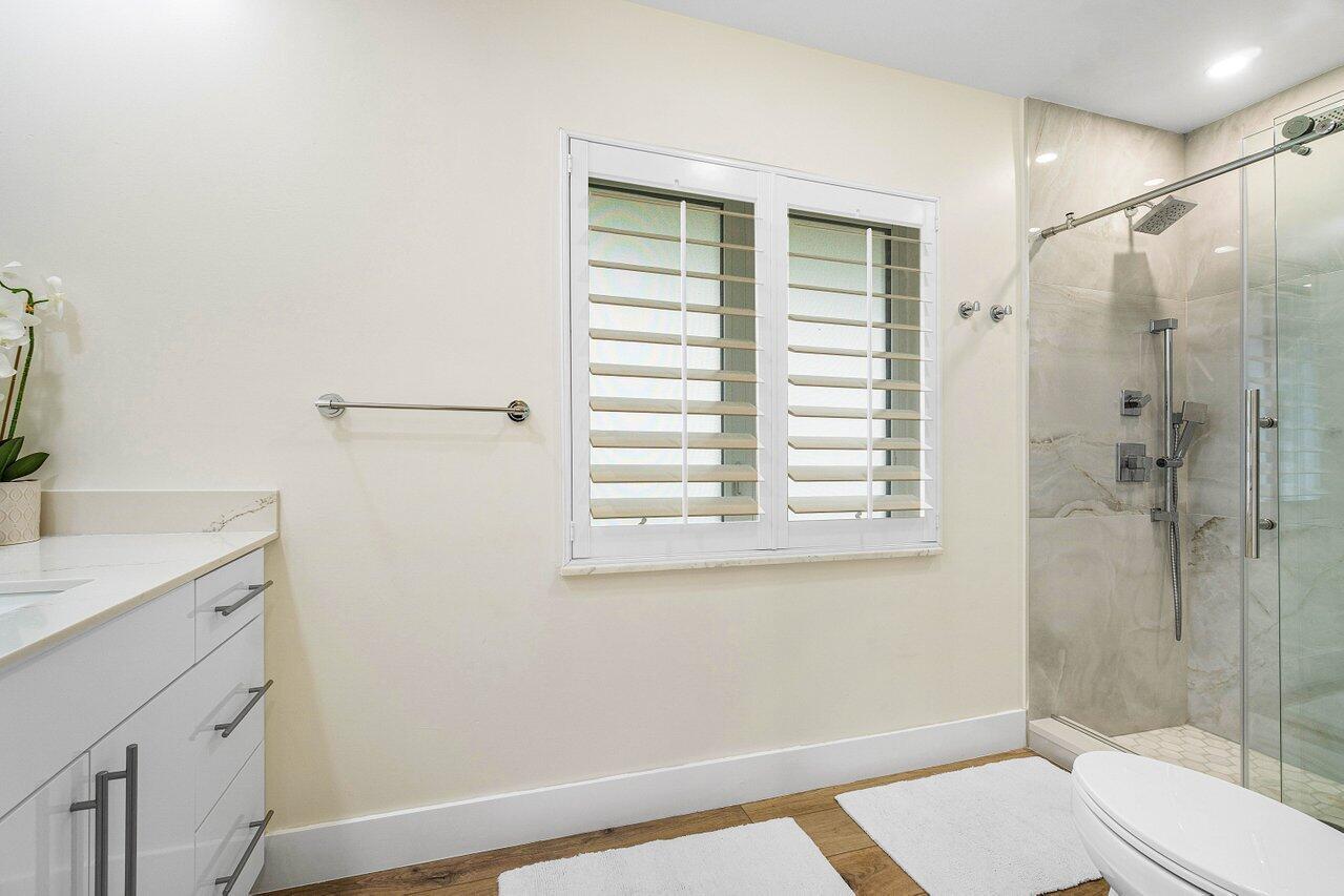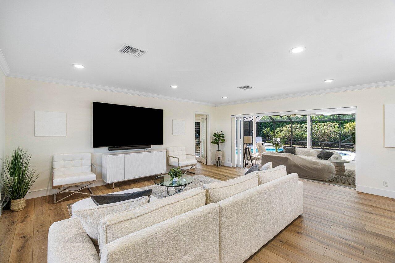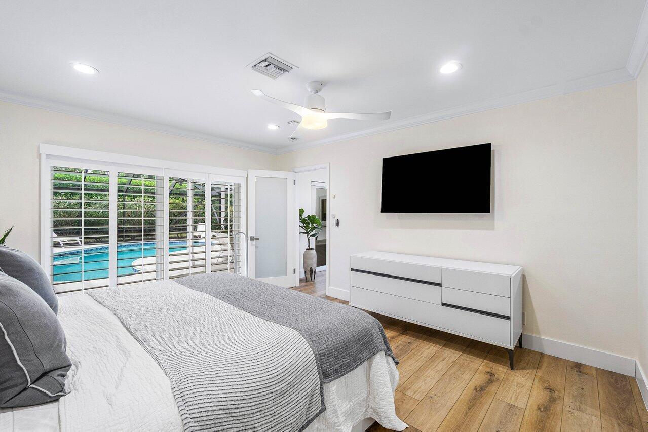 Welcome to this beautifully renovated mid-century modern gem, nestled in the highly sought-after Camino Gardens community of East Boca Raton. Thoughtfully designed and impeccably maintained, this home features a desirable split-bedroom floor plan and offers the perfect blend of timeless character and modern elegance. The light-filled interior includes a spacious great room, formal dining area, cozy breakfast nook, and an interior utility room equipped with a premium Asko washer and dryer. The chef's kitchen is a true showpiece, featuring white quartz countertops, Big Chill appliances including an induction cooktop, custom cabinetry, a sleek glass backsplash, and designer lighting that adds both function and flair. Peace of mind comes standard with full HURRICANE protection, including