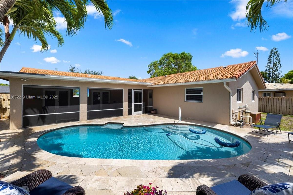 This beautifully maintained 4 bed, 2 bath home offers 2,000 square feet of comfortable living in the Westchester neighborhood, known for its peaceful setting and convenient location. Inside, you will find a split floor plan, spacious living and dining areas, and an updated kitchen that is perfect for everyday living and entertaining. The backyard is a true highlight, featuring a screened-in patio and a private pool with an elegant travertine deck. It is the perfect space to relax, host gatherings, and enjoy Florida sunsets. Move-in ready home comes with no HOA dues, offering added flexibility and value. Located close to parks, top-rated schools, dining, and shopping, this property combines comfort, style, and convenience. Schedule your private showing today, homes like this do not last.