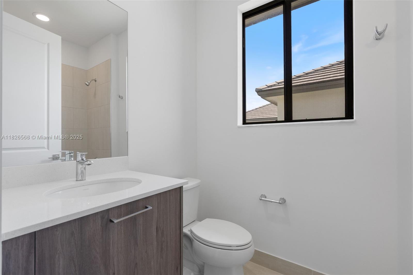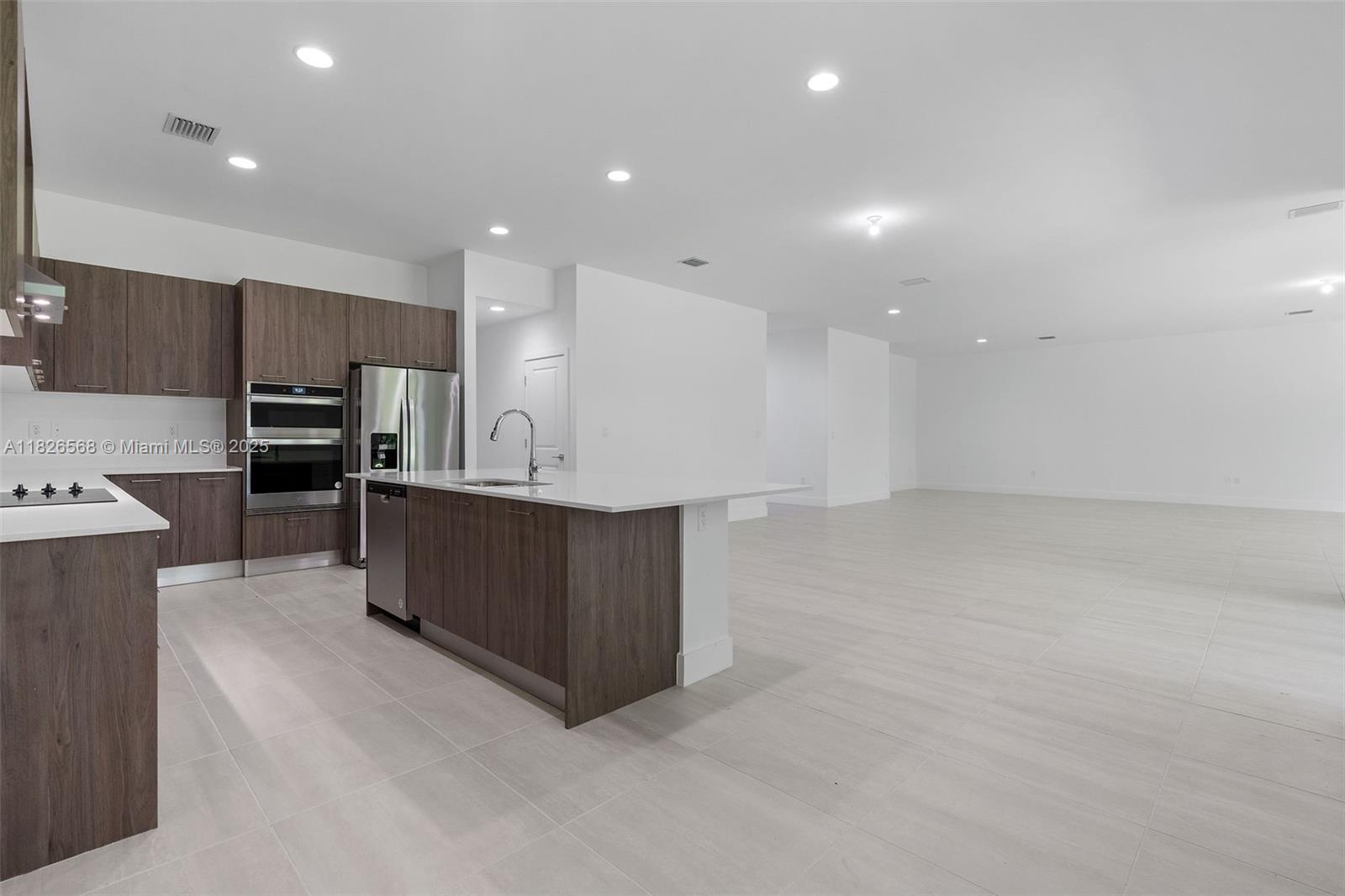Never lived in new construction home featuring 4 spacious bedrooms, a versatile den, and 3.5 bathrooms—thoughtfully designed to impress while blending comfort and functionality throughout. The modern kitchen features sleek finishes and opens easily into the living and dining areas, perfect for entertaining and everyday life. Sitting on just under a 10,000 Sq ft lot, the home is filled with natural light from expansive impact windows and offers an airy, open layout throughout. The primary suite is a true retreat with ample space, a large walk-in closet, and a luxurious en-suite bathroom with dual vanities and a glass-enclosed shower. Centrally located near shops and grocery stores, this is a rare opportunity to own a brand new, never lived in home in a prime location.