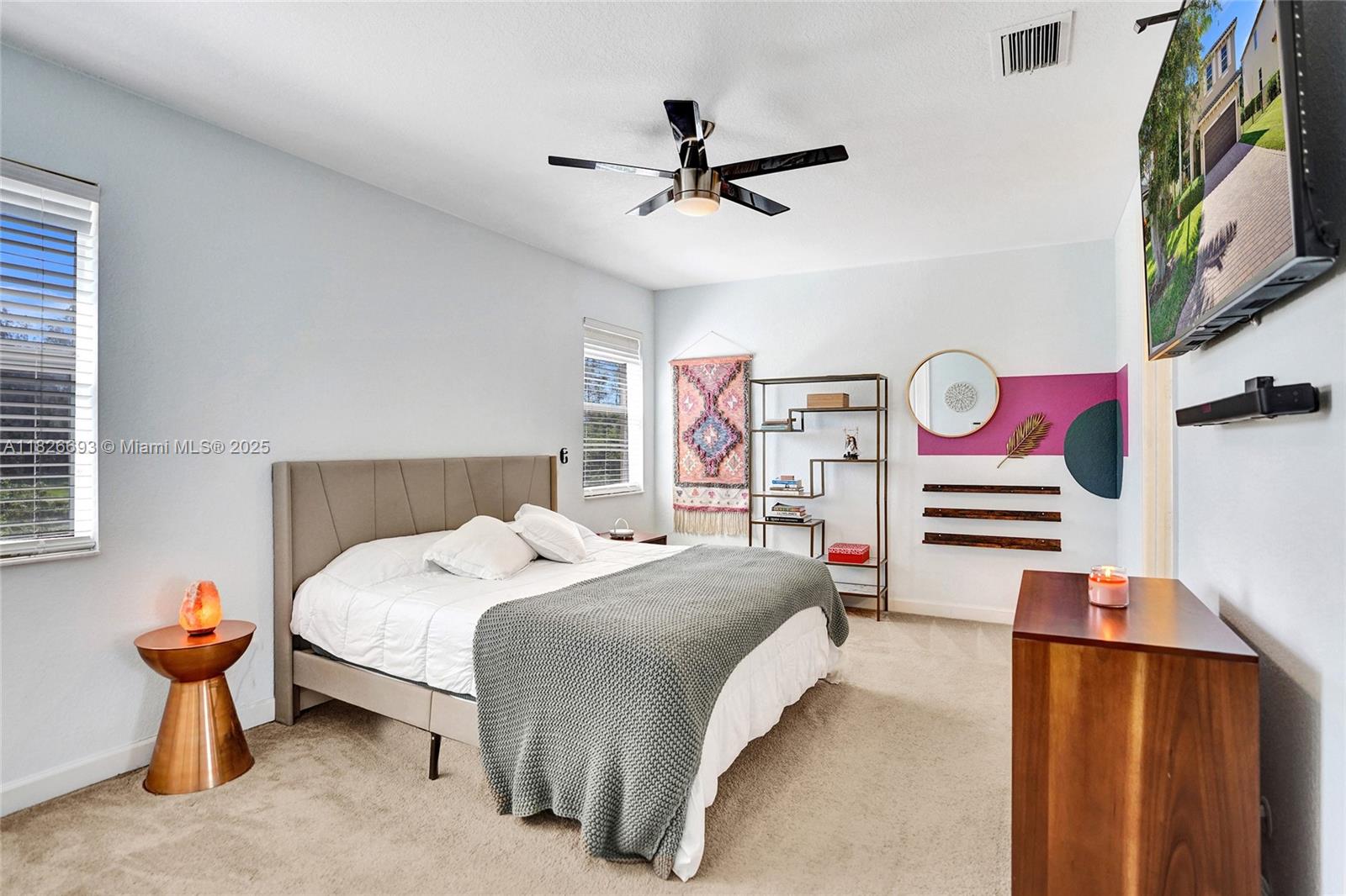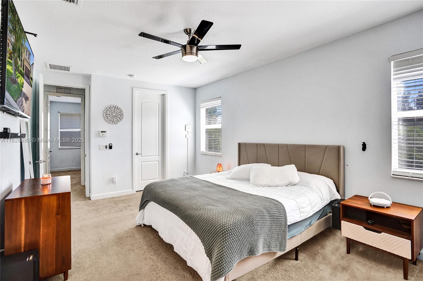 Motivated Sellers! 4 bdrm, 2 1/2 bath lake view, gated community. When entering you'll find open living room & dining area on the back side, kitchen w/ SS appliances & granite counter tops, on the side a half bath. On the second floor to the left a bedroom, in front 2 other bedrooms & on the right the master, walk in closets, w/ full shower, roman tub & dual sinks. This desirable lakefront view is a premium feature, gated backyard, big enough to make a pool, or your own private oasis. It also features a covered patio to make BBQ & enjoy wi/ friends & family. What makes it unique is the FULLY PAID SOLAR SYSTEM, a great savings, & WATER FILTRATION SYSTEM. Community pool. Home is located near, major HWY's, shopping ctrs, schools, & hospitals.