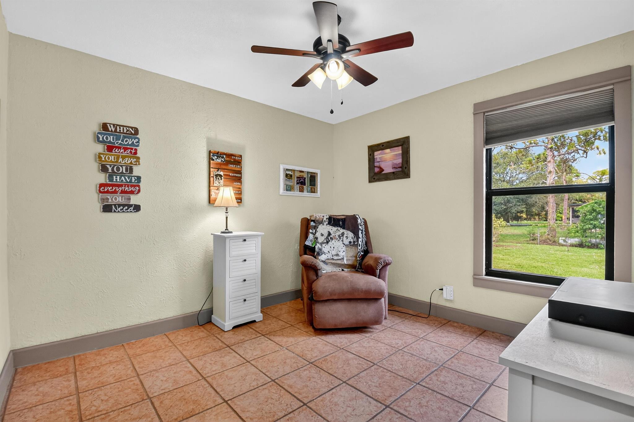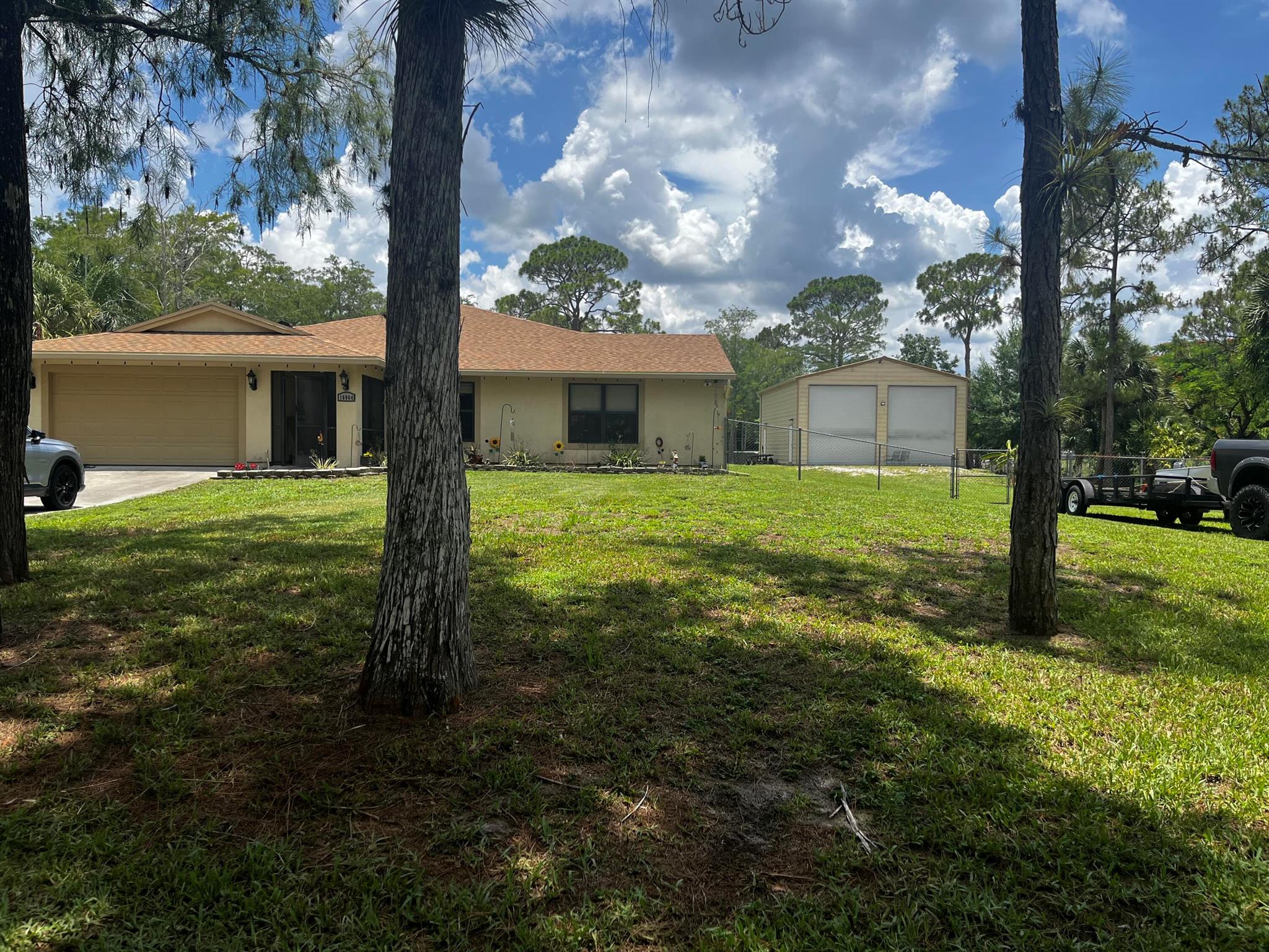 Beautiful family retreat in a tranquil country setting. This property sets on 1.41 acres where modern amenities meet country charm. This 5 BR residence features 2 master suites, 4 full baths + a versatile flex room.The expansive screened-in patio offers serene views of the lg property while the sparkling salt water pool/Jacuzzi invites you to relax & unwind. Inside,a gourmet kitchen boasts granite countertops, double ovens, a warming drawer, & a large island perfect for entertaining.Other highlights include an innovative safe room w/reinforced concrete walls & hurricane door, whole house impact windows and generator & solar roof fans for optimal attic cooling. A massive (30x40x16) 2ndary bldg, fully air-conditioned & insulated is perfect for housing boats or RVs. +Greenhouse & chickencoop