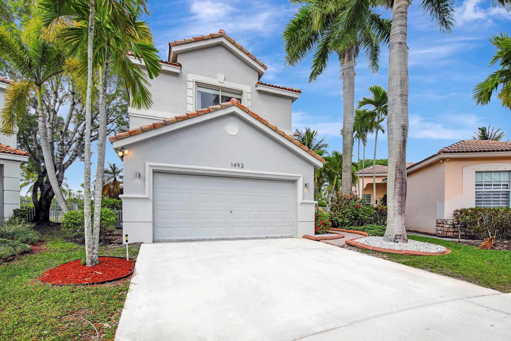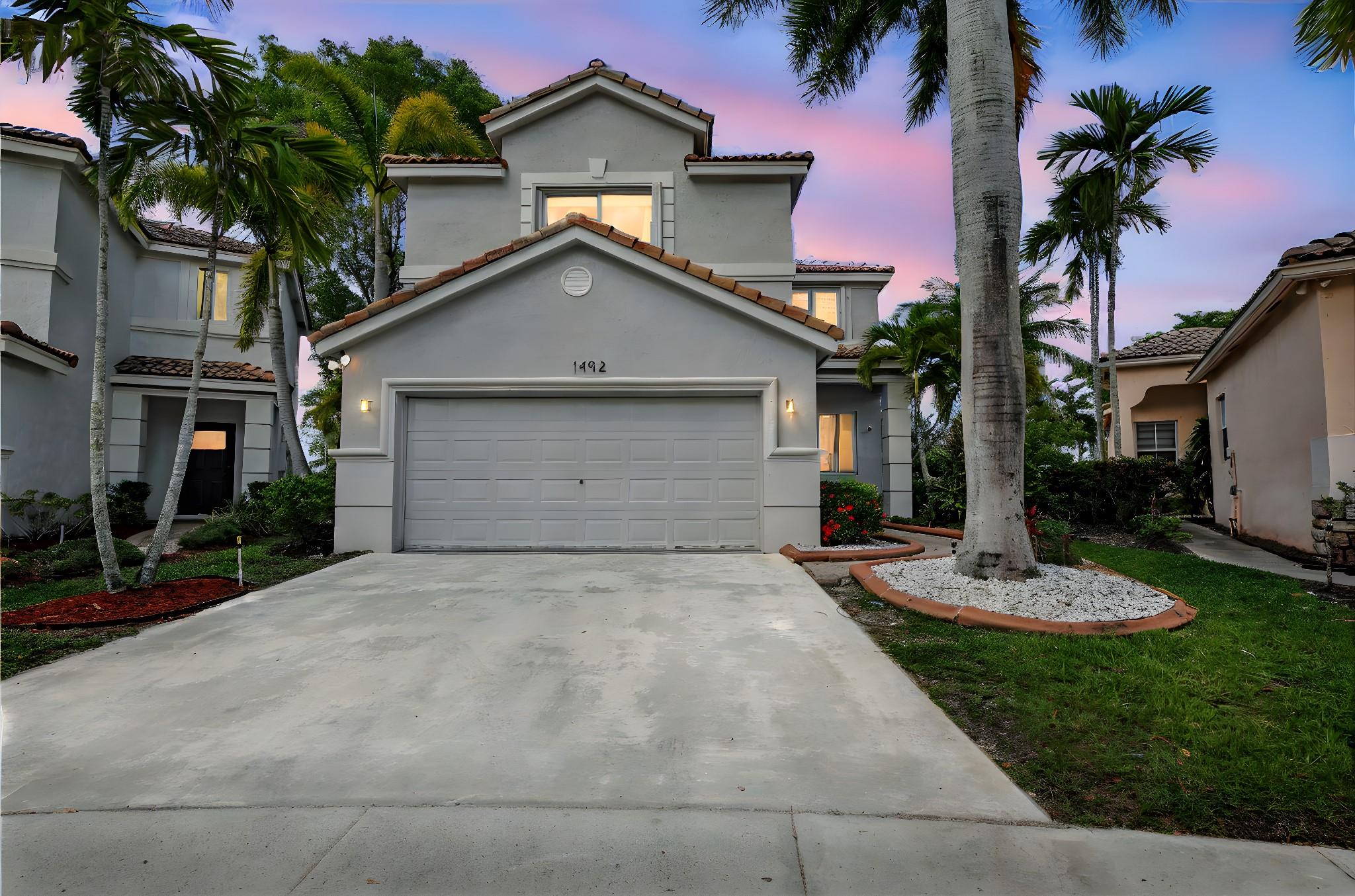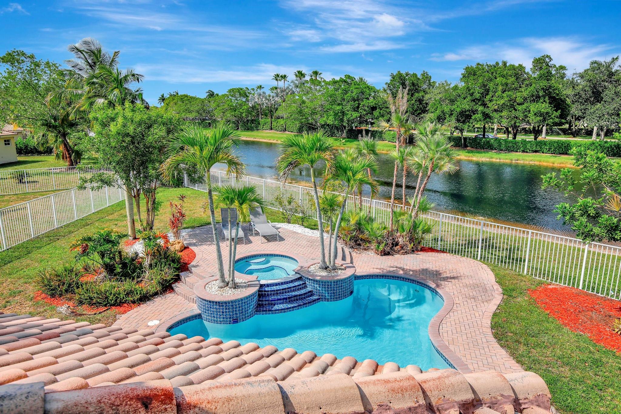 Former model home on model row! Amazing 4BD/3.5BA/2CG on a spectacular 10,648 sq ft huge fully fenced lakefront lot with stunning show-stopper pool with raised spa deck! Situated on a wide greenbelt cul-de-sac, centered by a charming tot-lot. Discover the ultimate backyard escape with an expansive garden, large covered paved patio & peaceful, private lake views. All incredibly generous sized bedrooms are upstairs, (one perfect as "mini master" w/ ensuite bathroom), all with walk-in closets! The kitchen features granite countertops, stainless appliances, wood cabinetry & pantry w/ample organized storage. Tile downstairs, wood laminate upstairs, LED lighting. Trendy touches throughout! Fabulous resort clubhouse down the road with amazing amenities, all covered by HOA. A+ school up the road!