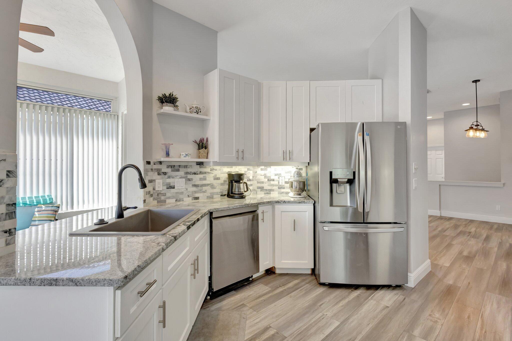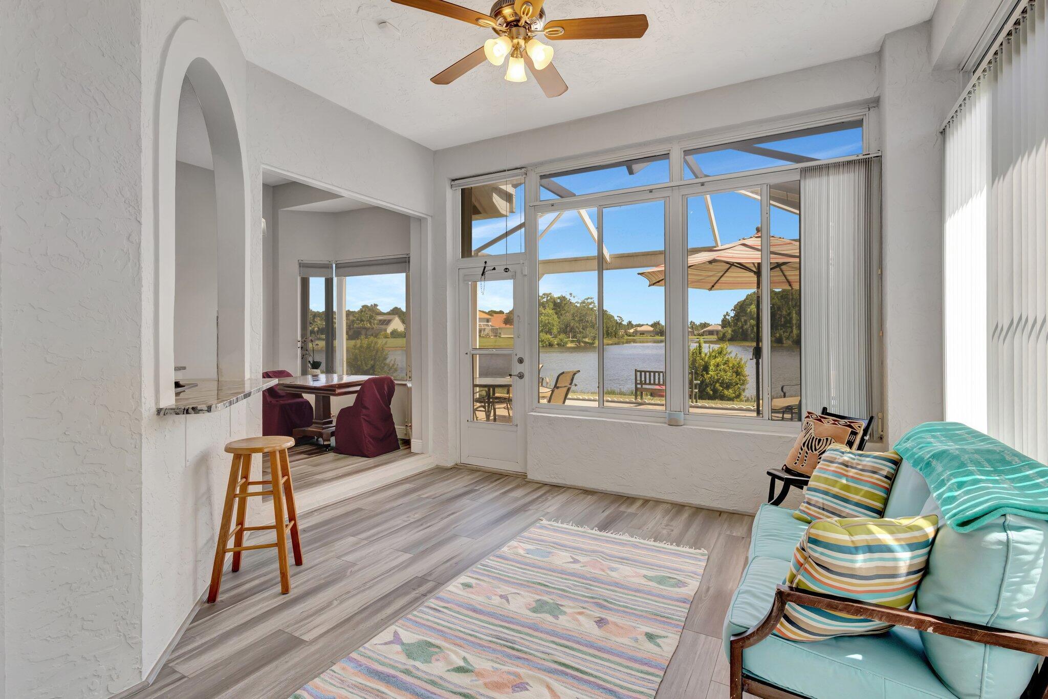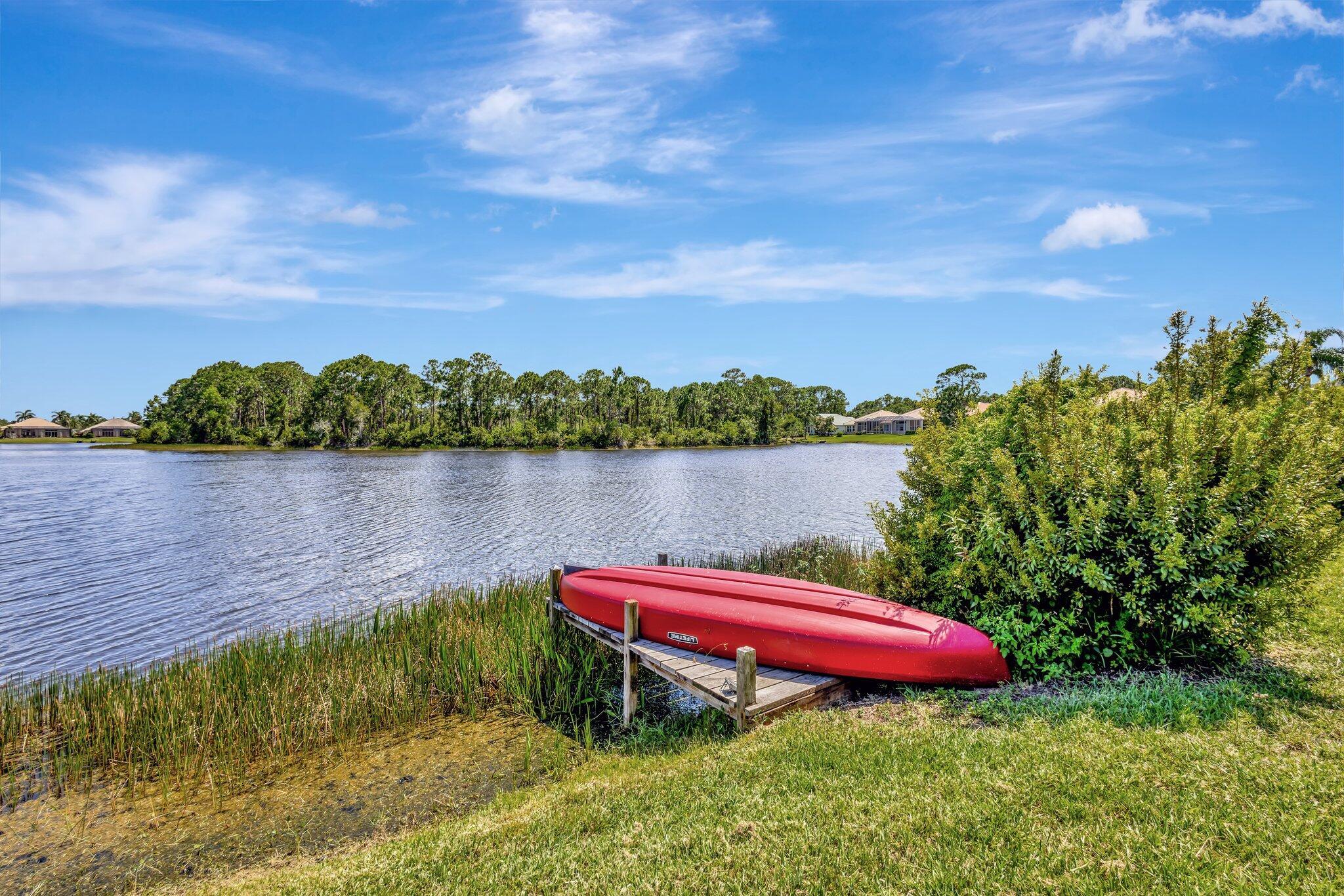 What a Gorgeous Water View from this completely remodeled home in the gated community of Lake Charles located in St Lucie West. From the moment you enter, you will find wood look luxury vinyl throughout, Custom baseboards, and fresh paint.The kitchen has been transformed with new 42 inch white shaker cabinets, granite tops, tile backsplash, and stainless appliances with water views everywhere. The bathrooms have been updated with new vanities. The primary bath also has been updated with a new shower. Some of the special features of this beautiful home include a newer screened lanai, Extended paver driveway, accordion shutters, personal dock for your canoe, and updated fixtures and fans. In Lake Charles, you are permitted to have non gas powered boats that can be stored in your back yard.