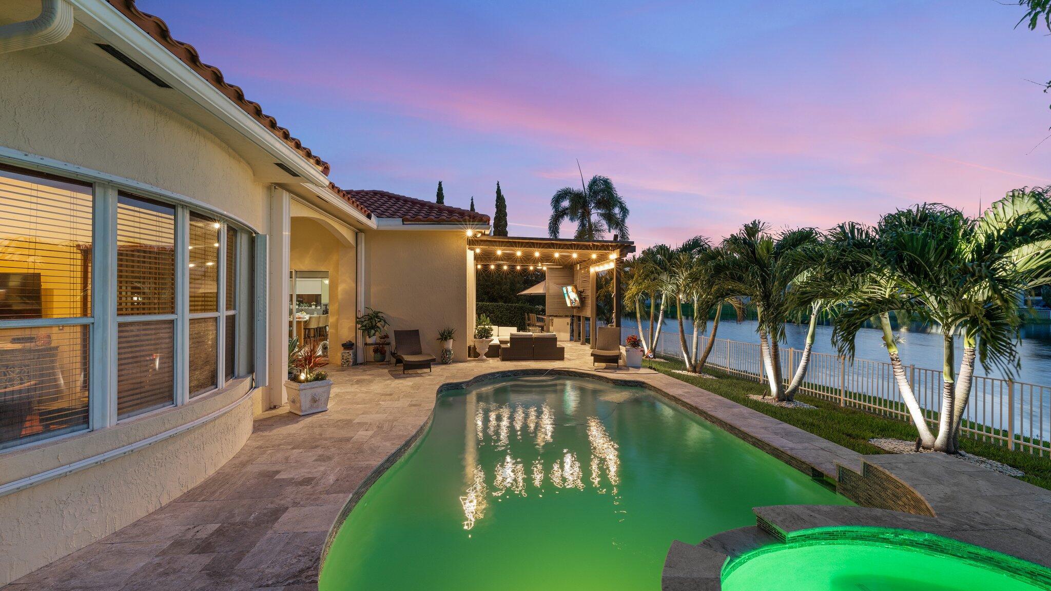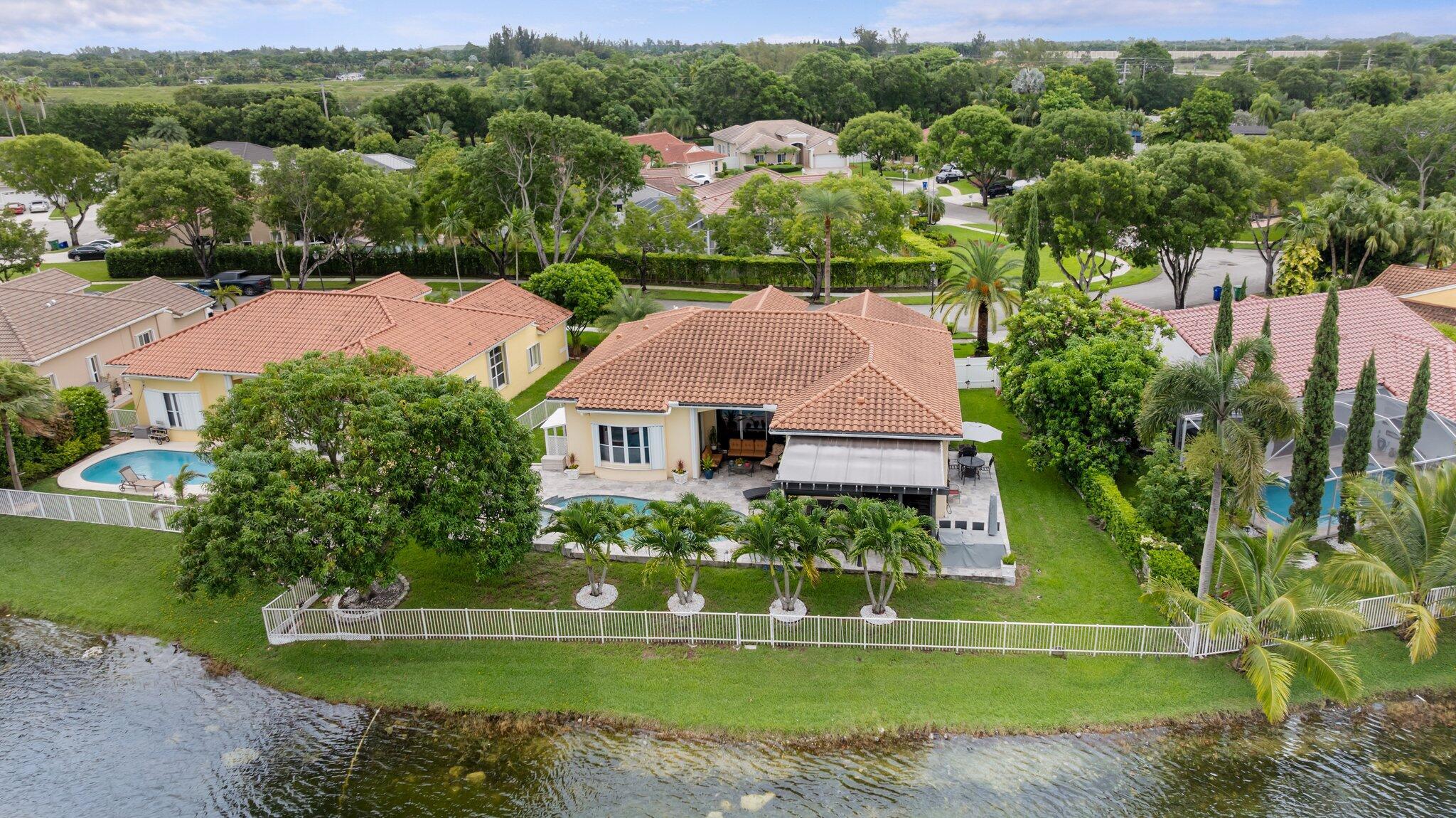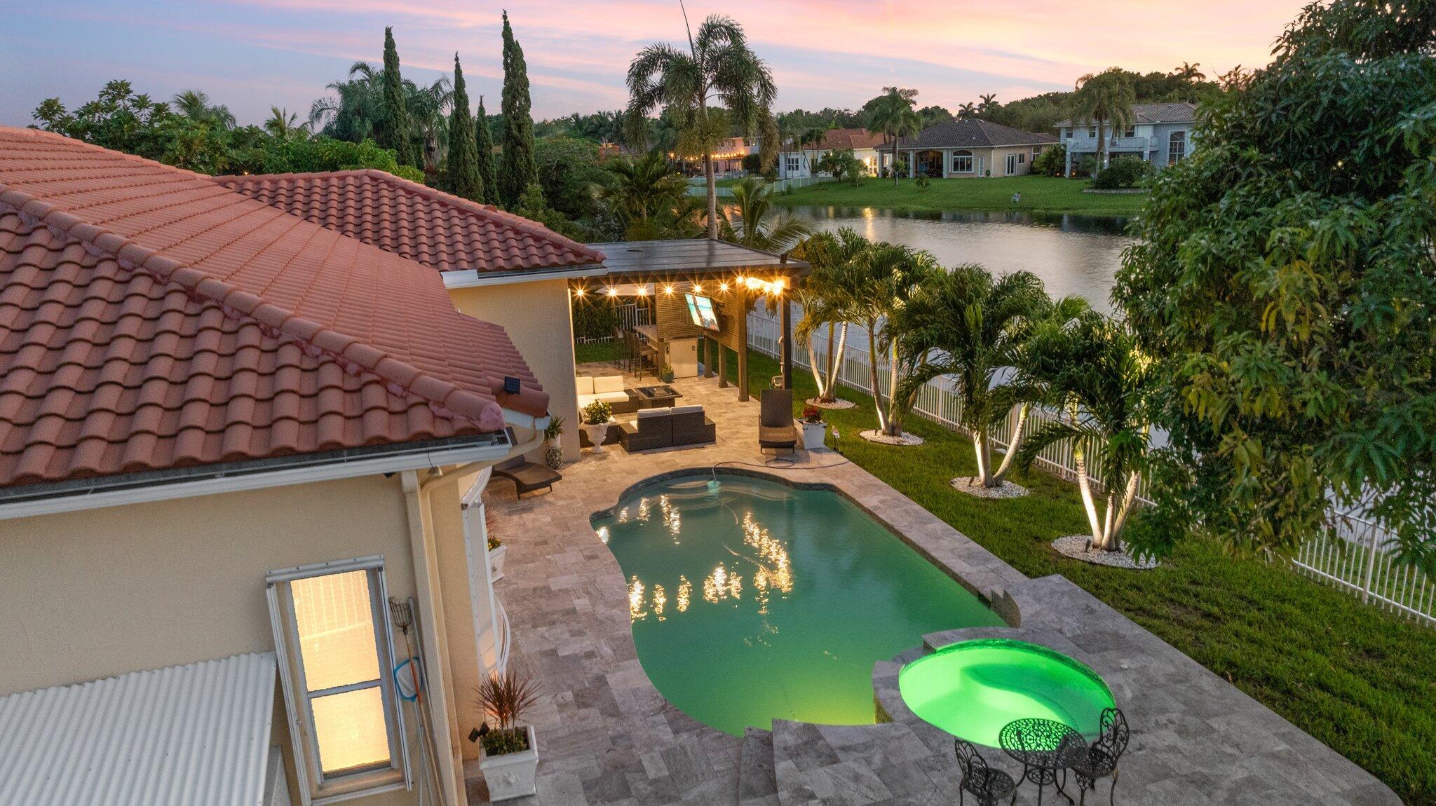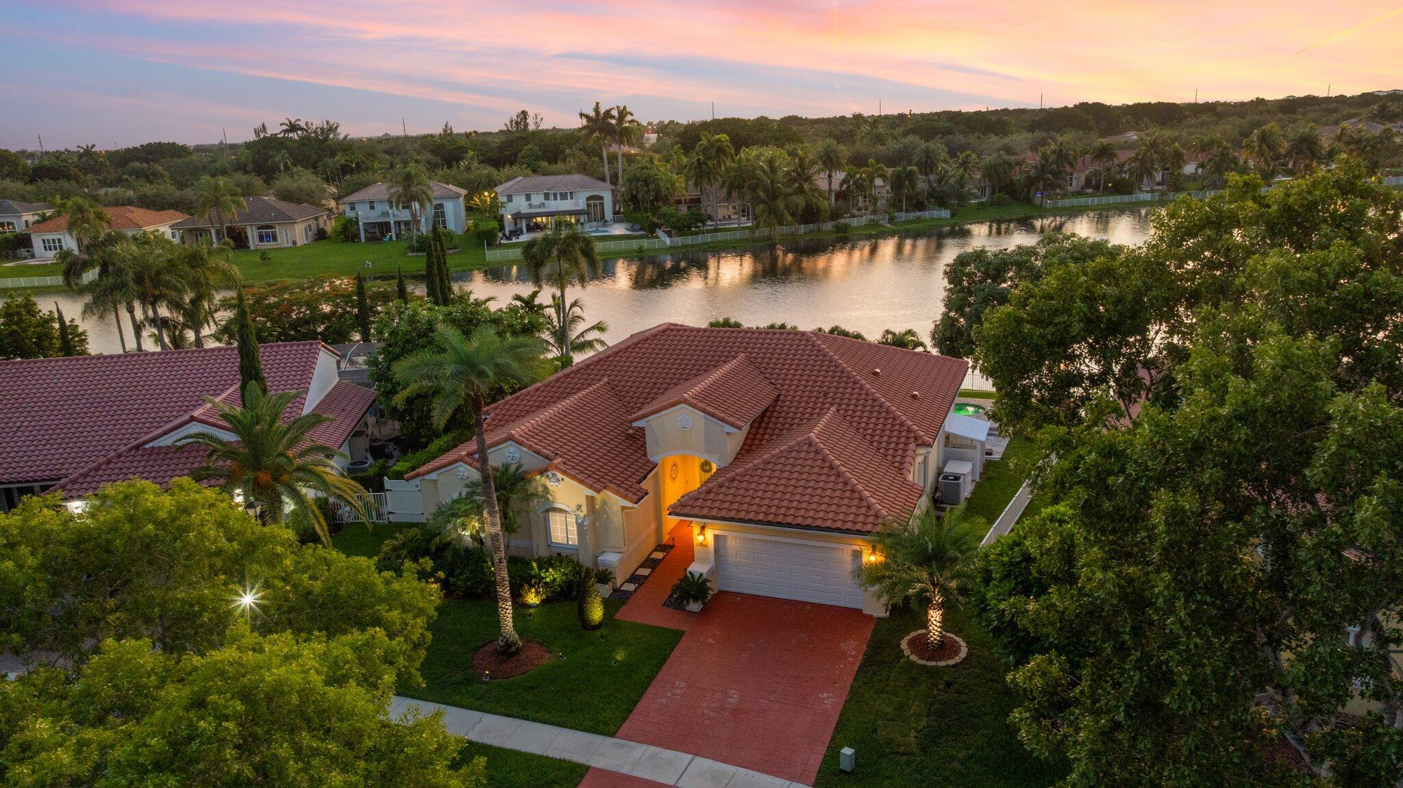 Showings have started. Owner occupied. Showing schedule is as follows:Monday -Friday 5-7pm. Sat- Sun 12pm-6pm. Top of the line rarely available listing in the area. Gorgeous 4/3 lakefront pool home with the best water view. Everything is impeccable and top of the line. You will find Granite, wood, and stainless custom kitchen; real wood floors and beautiful porcelain tile. Abundant natural light. Crown molding and vaulted ceilings. Large patio surrounding heated pool and spa, fenced yard with mango and avocado trees. New pergola. Perfect for entertaining. Roof is 10 years old