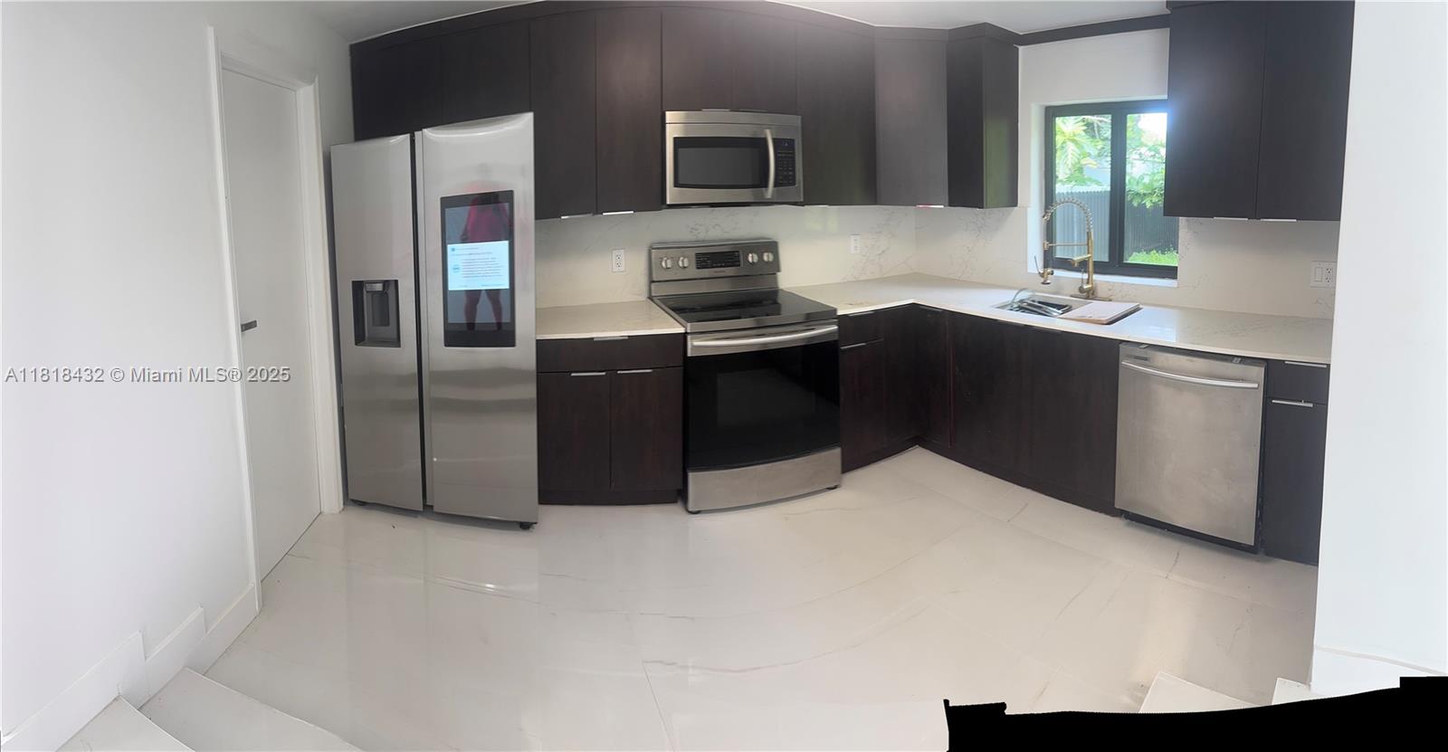 Welcome to this beautifully remodeled home! This property features a brand new roof, impact windows throughout, and elegant porcelain ceramic floors. The kitchen boasts top-of-the-line stainless steel appliances and sleek quartz countertops, while the bathrooms have been designed with luxurious, modern finishes. The home also includes a converted garage for extra space and a beautiful metal gate in the front for added curb appeal. This home is truly top-notch in every way!l Violations and or liens may exist. Please do your due diligence.