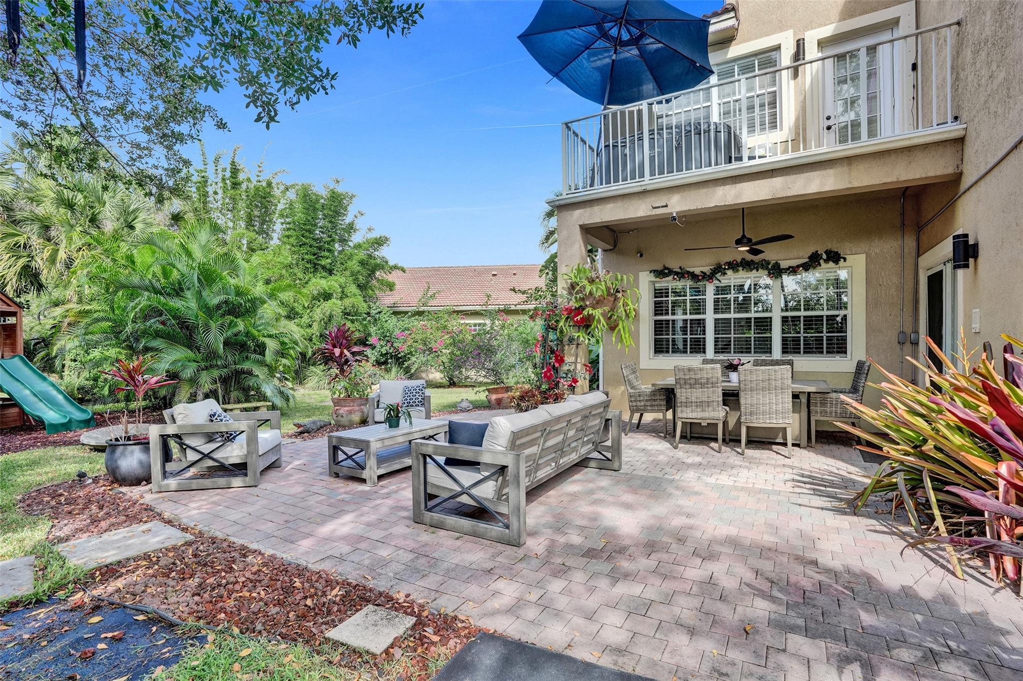PRICE REDUCED $20K! Looks like a model home! Gorgeous 4 bedroom/ 3 full bath home in desirable gated community of Vizcaya in Coral Springs! Great floorplan with 1 bedroom + 1 full bathroom downstairs. Upstairs you'll find the primary bedroom plus 2 other bedrooms and a huge bonus room that is used as a family room/playroom/movie theater room or can be converted into a huge 5th bedroom. Fully renovated bathrooms! And what an AMAZING BIG TROPICAL PRIVATE BACKYARD with beautiful landscaping and lighting, mancave shed with electrical, playground and cozy firepit area. So many updates, front and back balconies, hurricane shutters. HOA is only $300/month and offer community gym, pool, hot tub and tennis courts! Subject to Probate court approval. Closing as soon as end of August. MOTIVATED SELLER