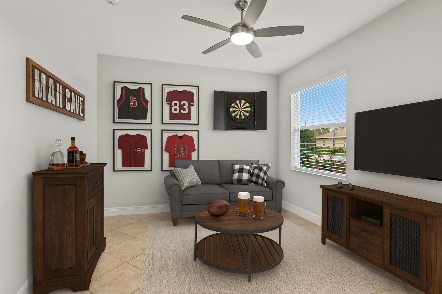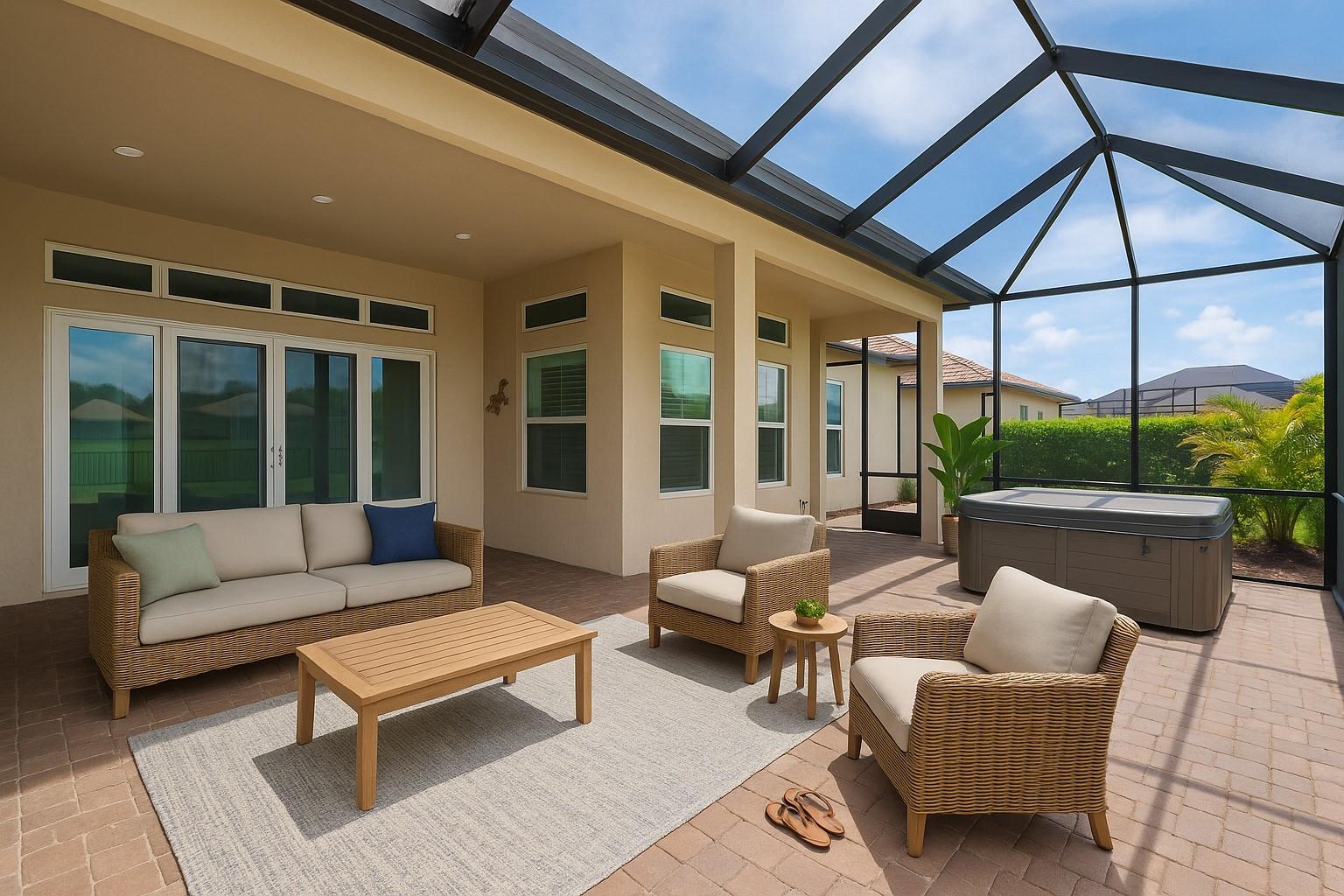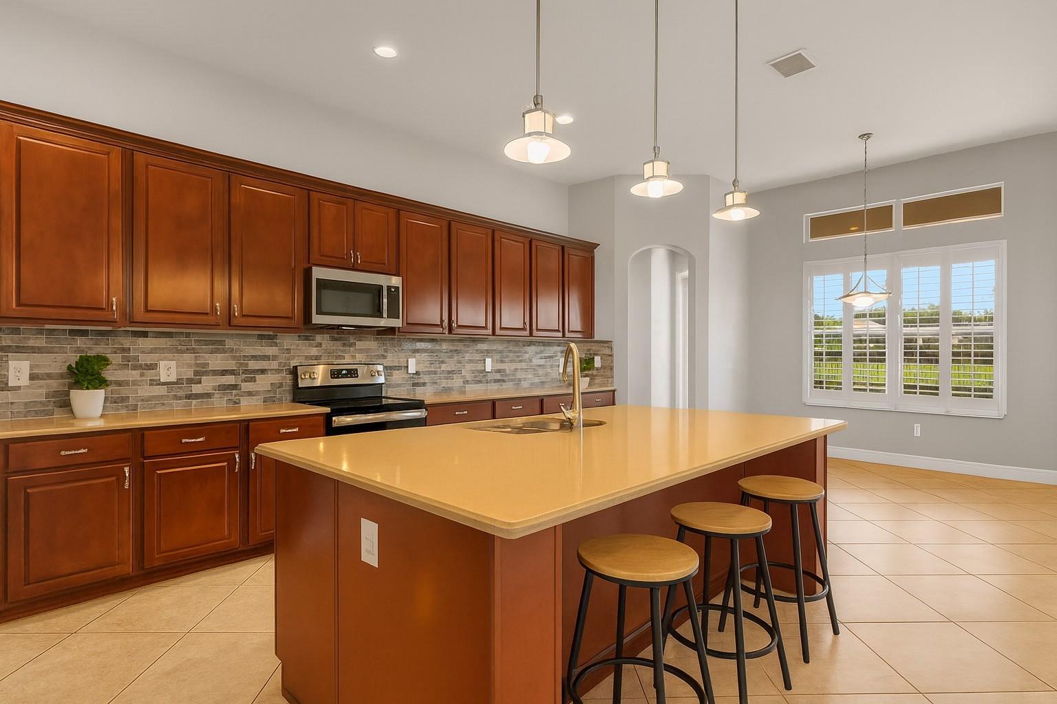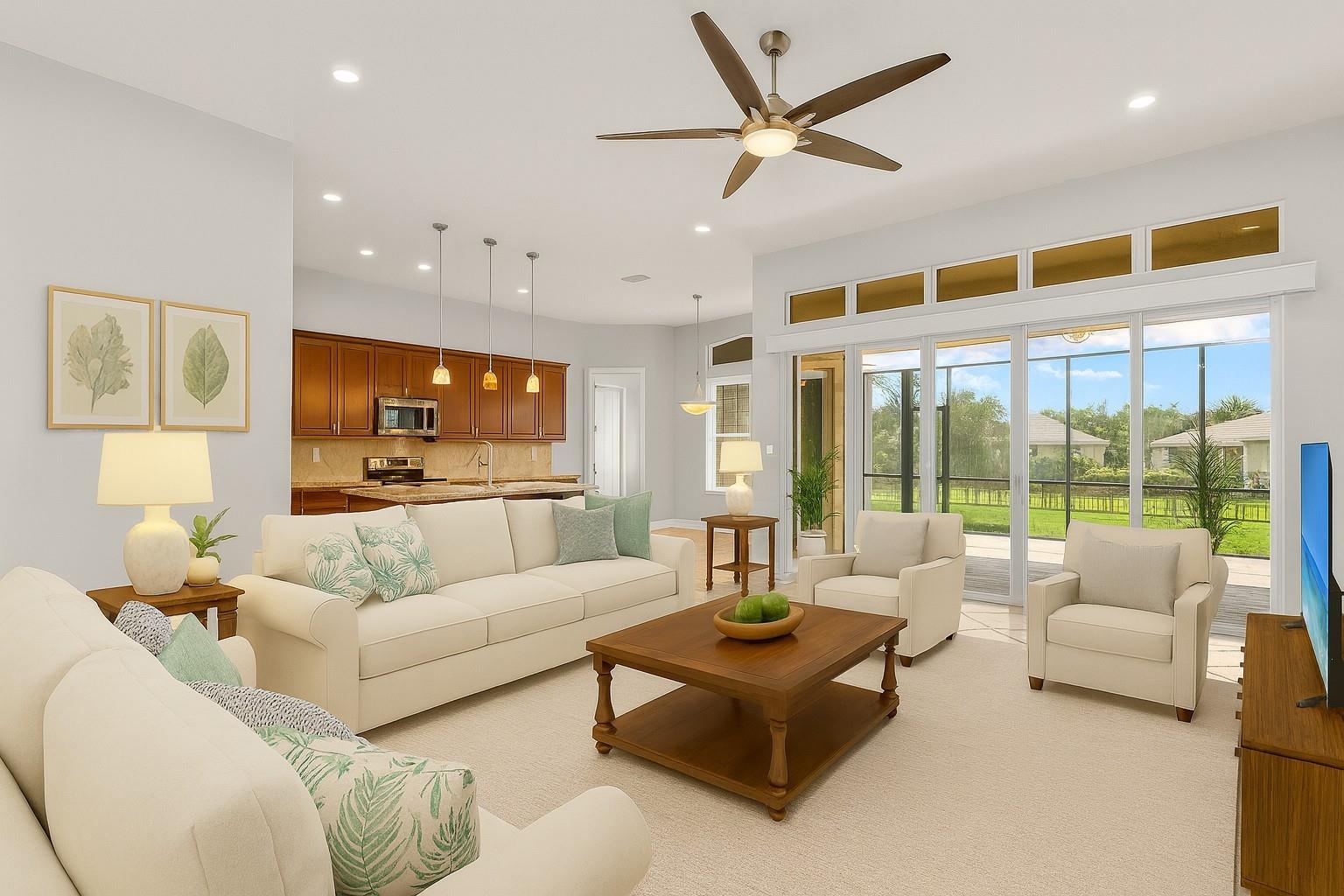 GHO Tacoma stunner model! 4 beds, 3 baths home (the 4th could be used as a home office or man cave) with a 2 car garage on the lake AND cul-de-sac! Tile floors throughout, fenced back yard, kitchen w/island seating, quartz counter tops, wood cabinets, addition on patio 12 foot with a screen, jacuzzi, hurricane windows w/ a bonus doggie door, this house has all the bells and whistles to suit your fancy! The open layout & expansive living area makes it fabulous for entertaining. Peaceful, quiet neighborhood, located in the heart of Vero, VACANT and so easy to show come schedule an appt today. **This listing has been virtually staged
